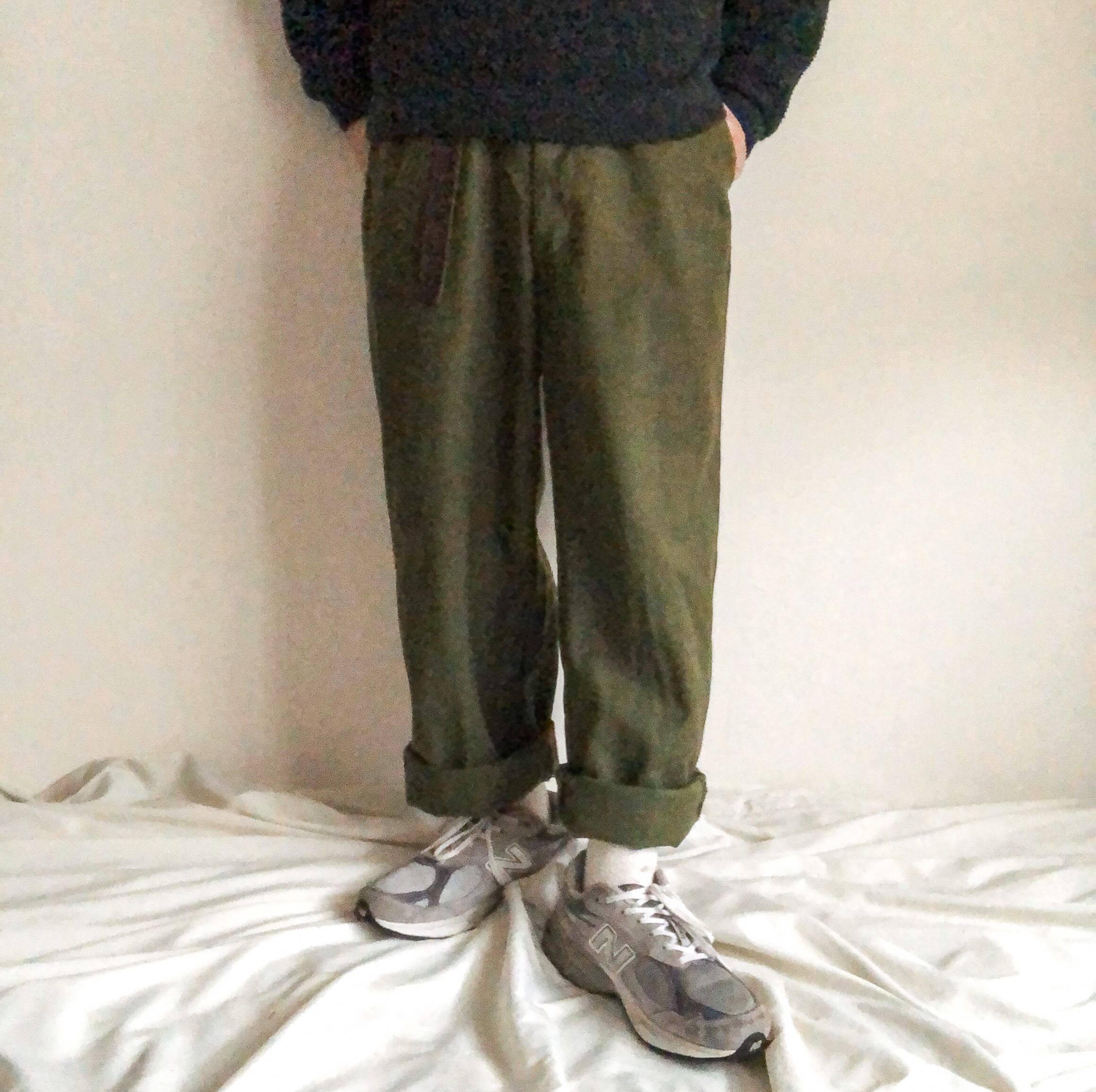 極太のスラックスの様な形で裾までストンと太い無骨なシルエットで動きやすく上に保温性もしっかりと高いのでヘビーローテーションできる、ミリタリーらしい機能性もルックスも兼ね備えた素晴らしいアイテム。