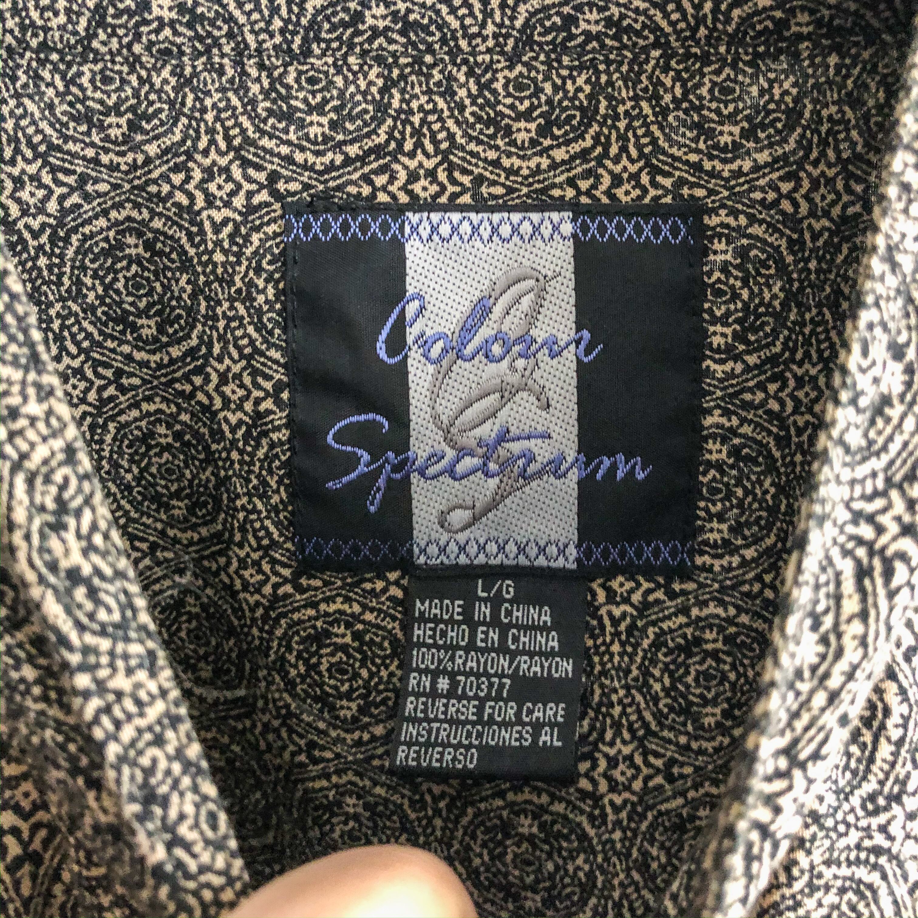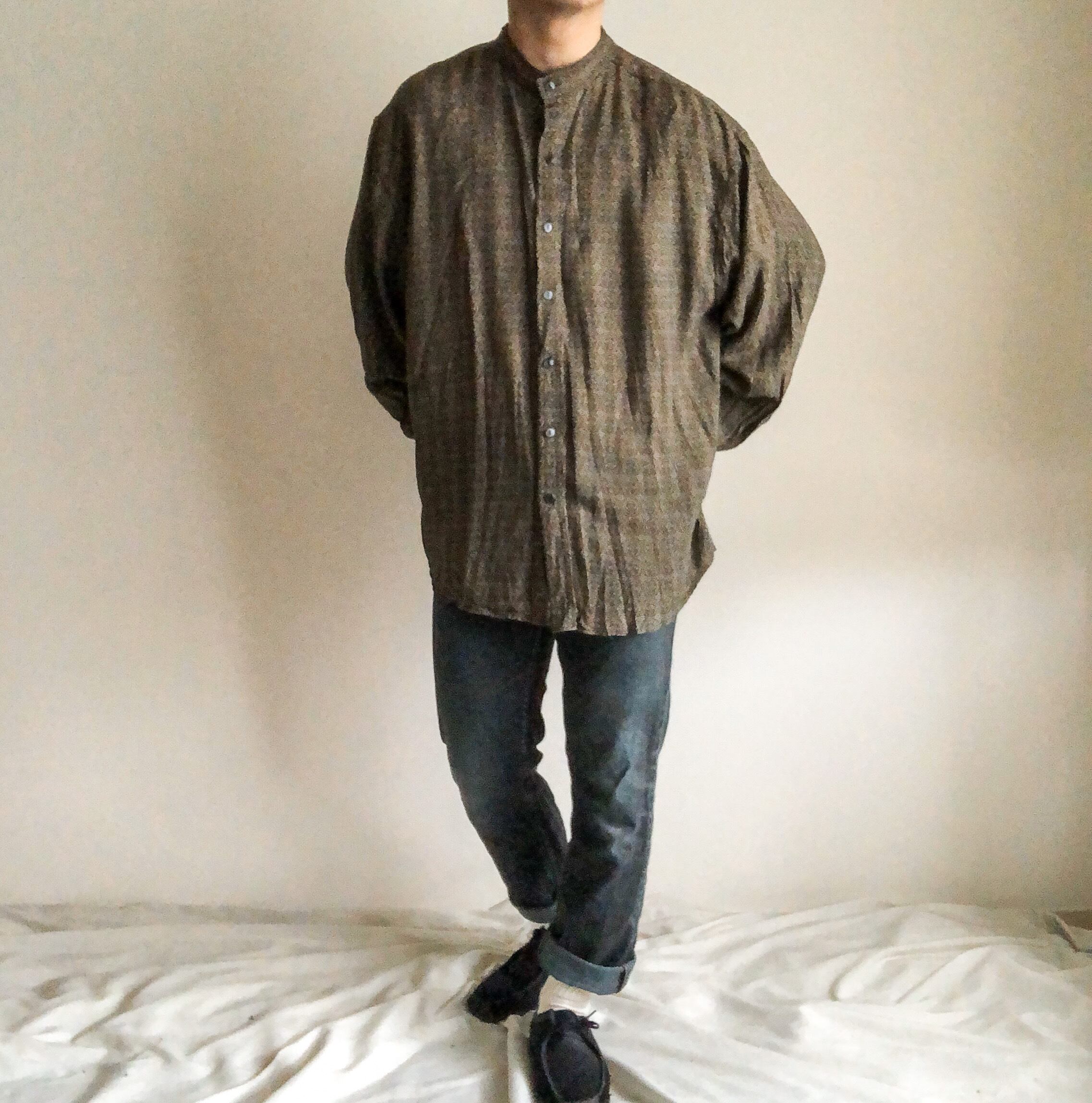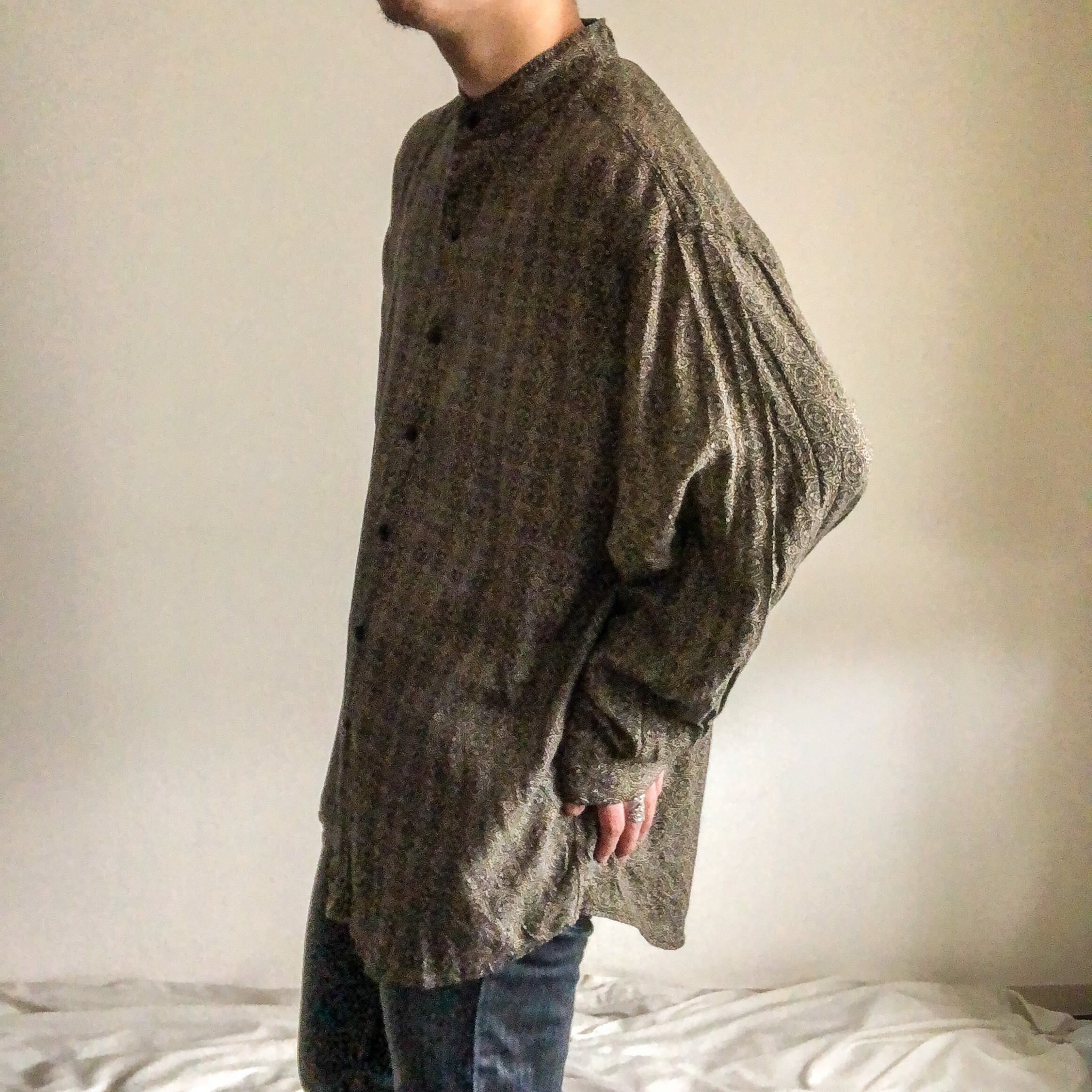 特徴 :古着らしい独特な面白いテキスタイルにビッグサイズによるドレープ感がグッドなレーヨンシャツ。