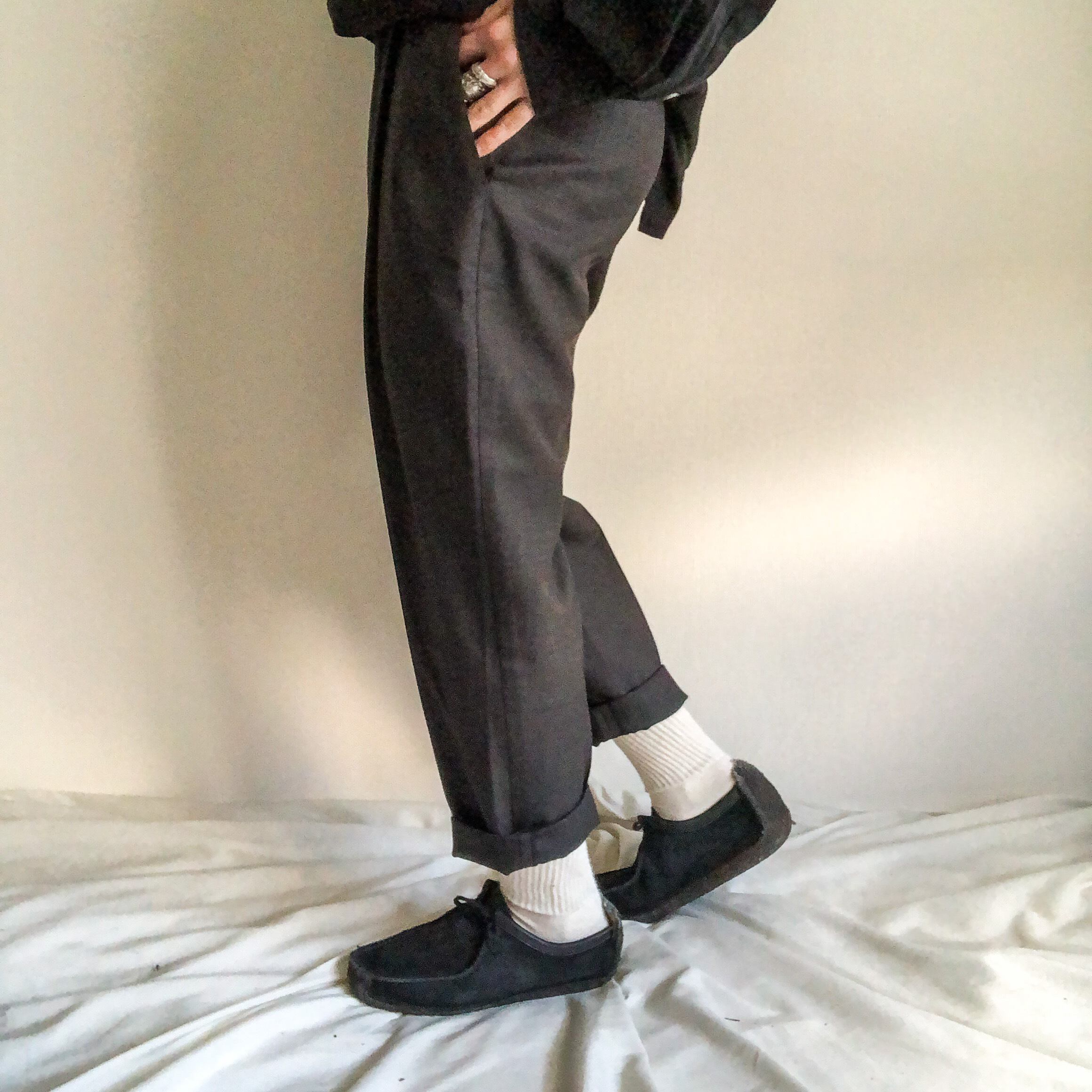 シンプルながらも素晴らしいベルトループのデザインや、裾にかけてテーパードのかかる美しいシルエットは流石といったところ。