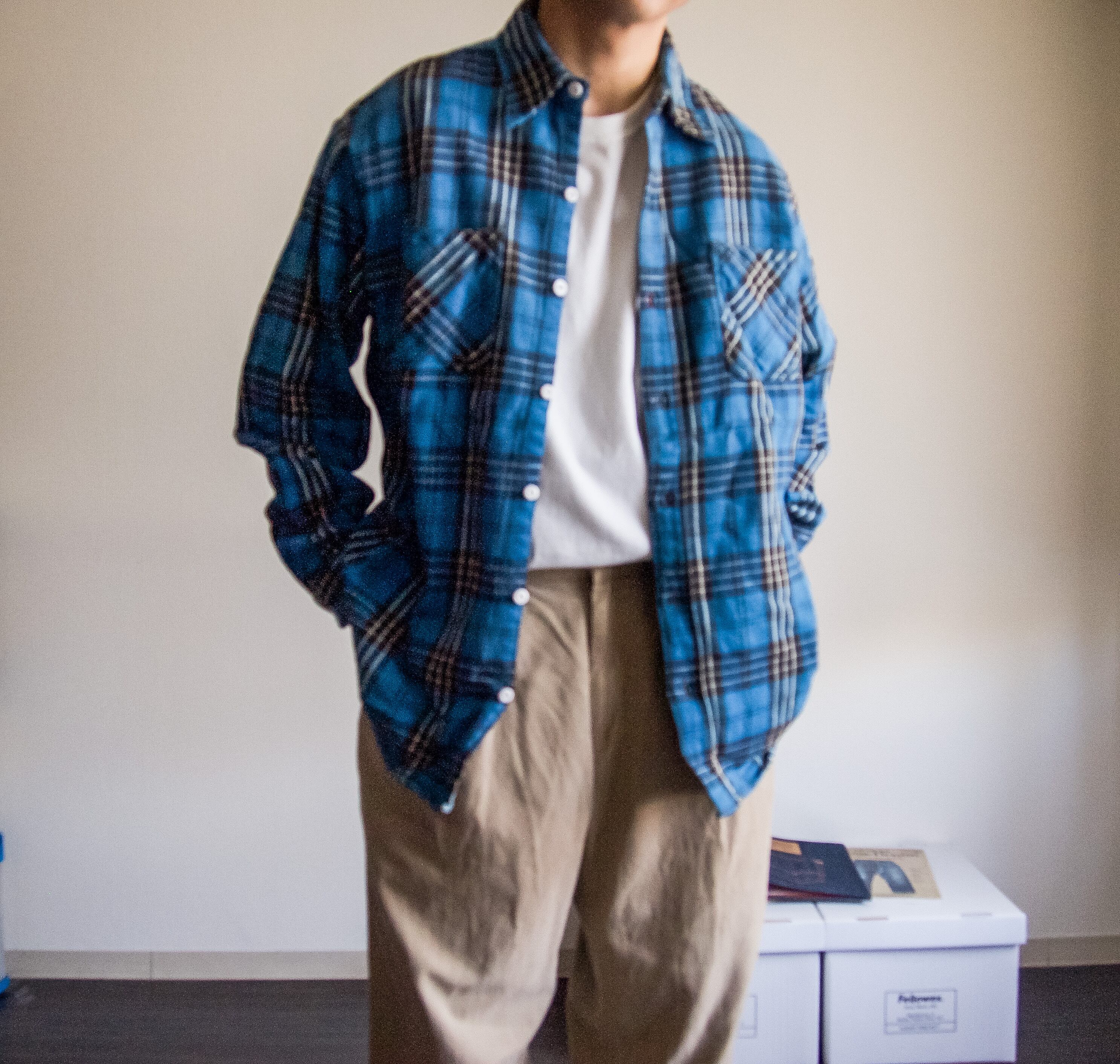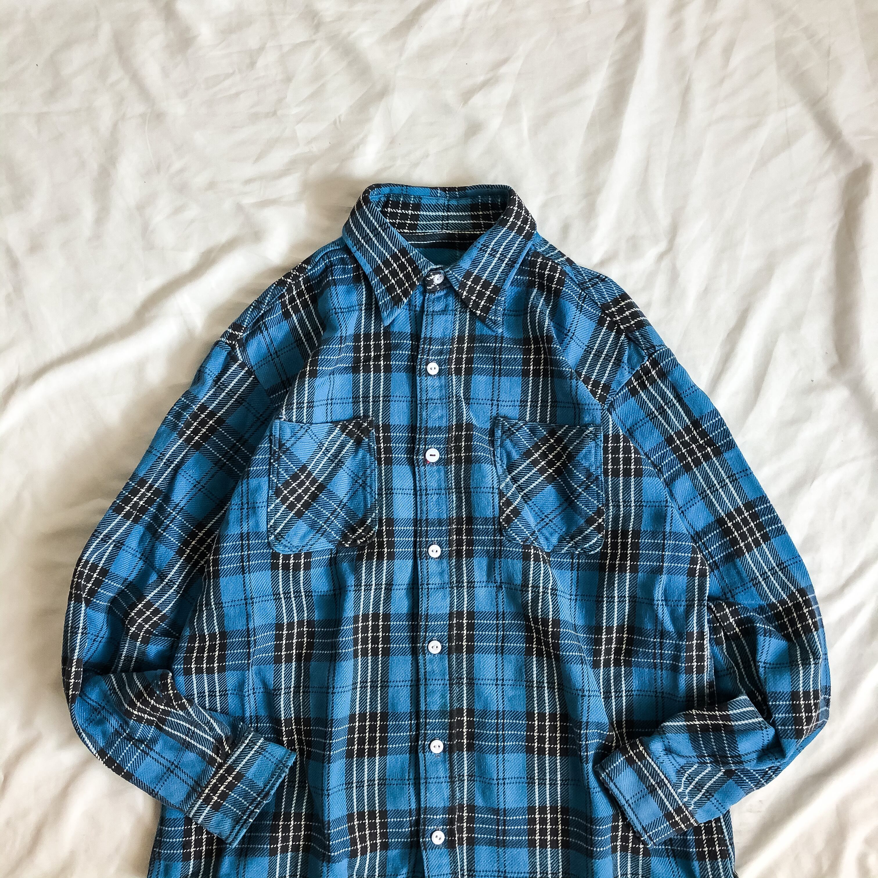 特徴 :ブルーベースのチェック柄がグッドなヴィンテージフランネル。