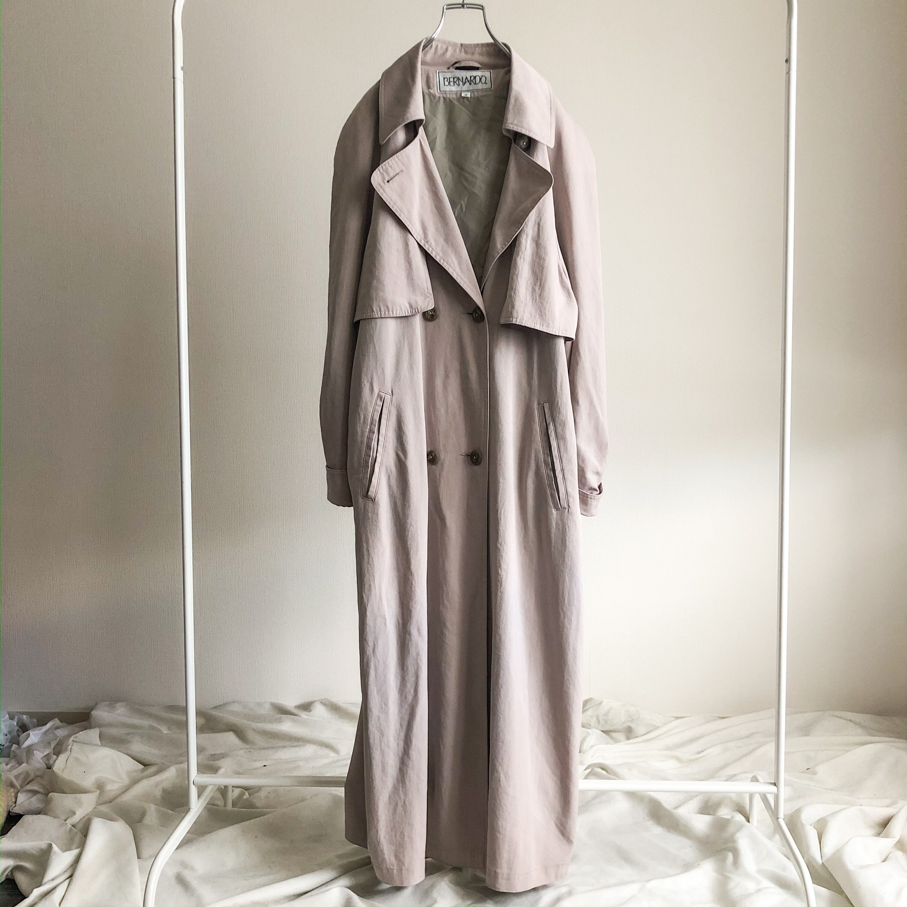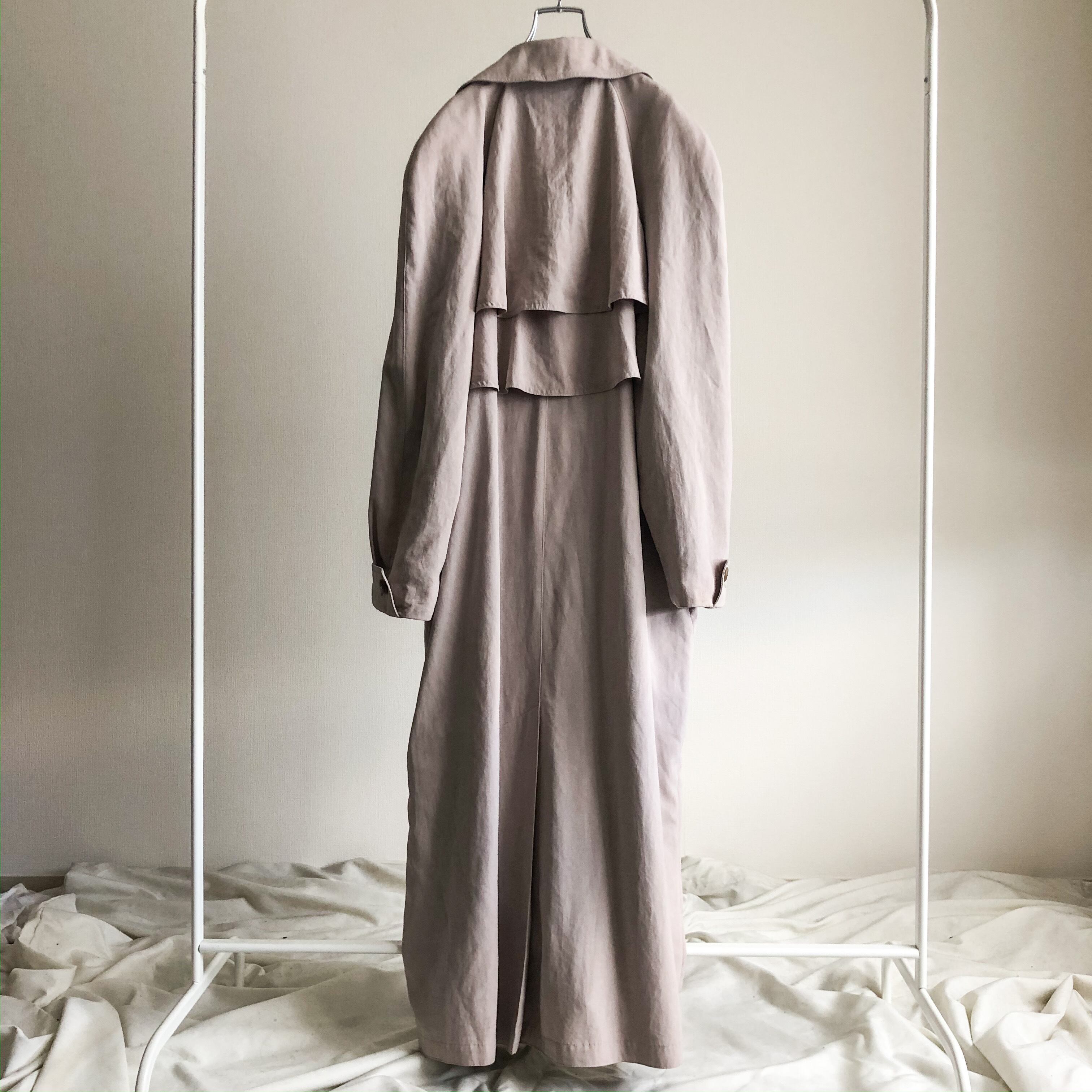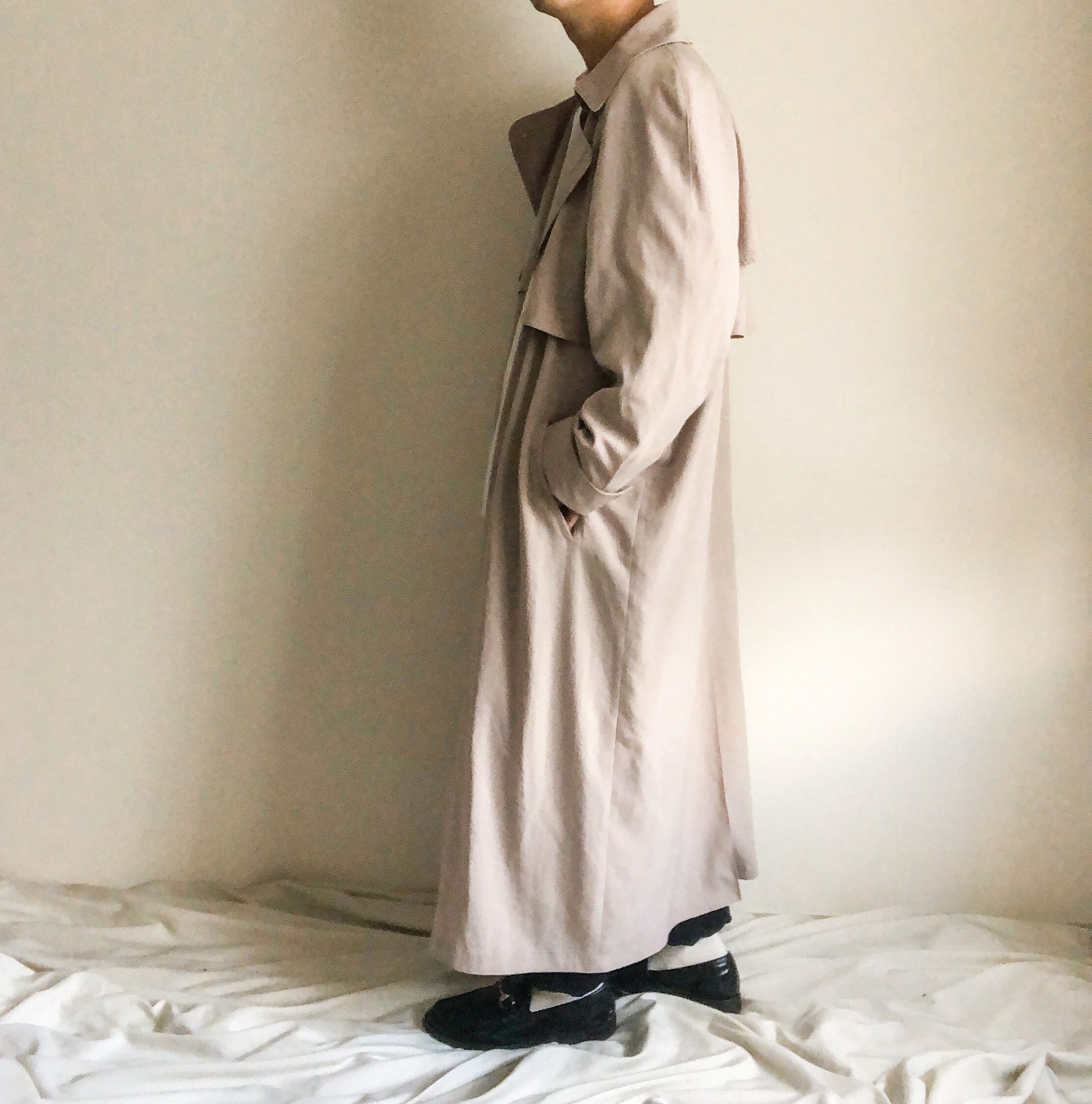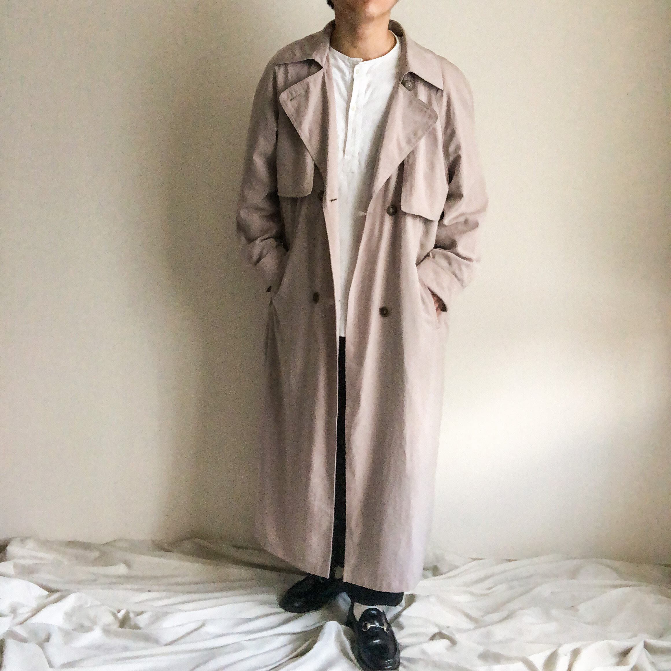 特徴 :柔らかなライトベージュカラーにスーパーロング丈がグッドなトレンチコート。