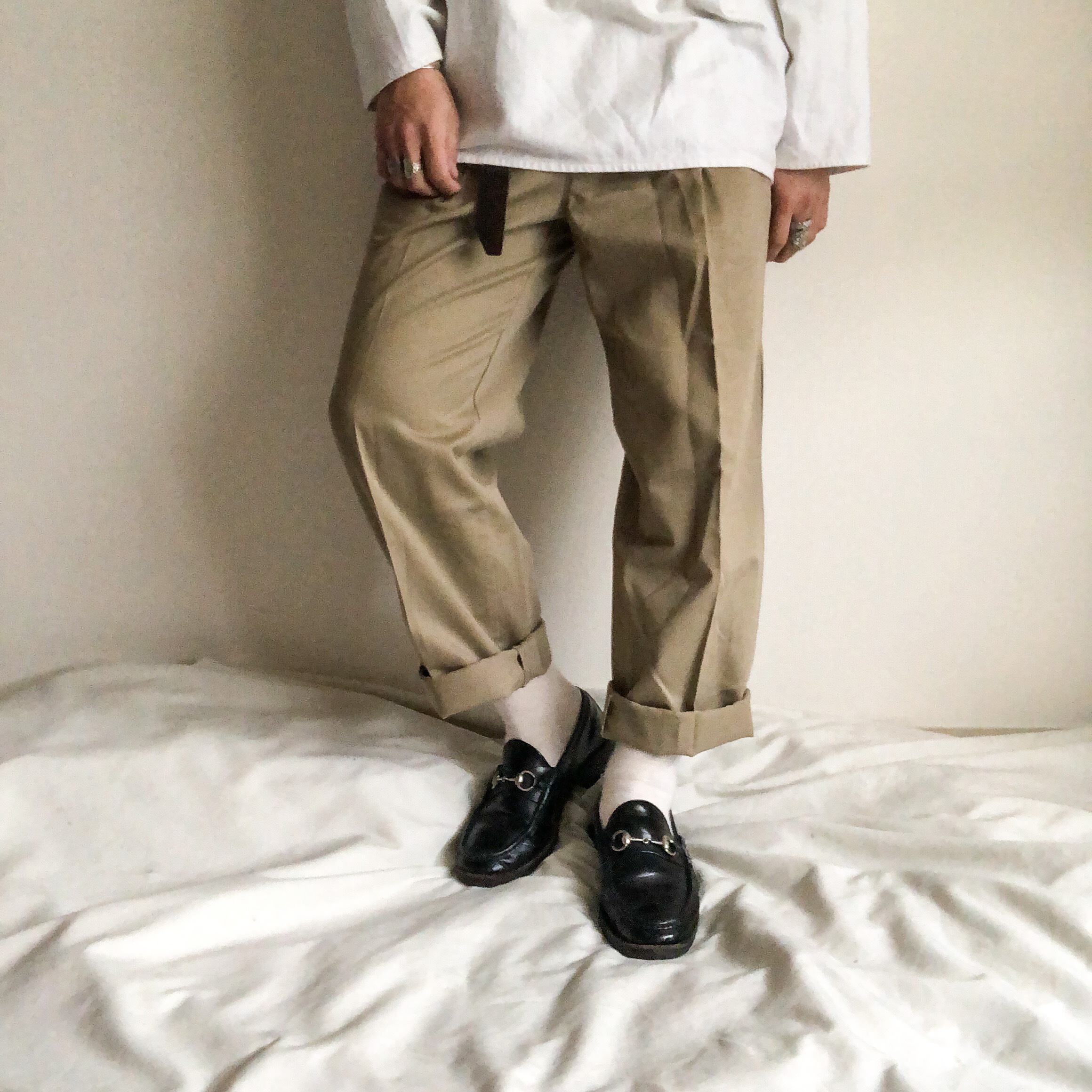 特徴 :今年の春個人的に推したい90年代頃のツータック入りのコットンパンツ。