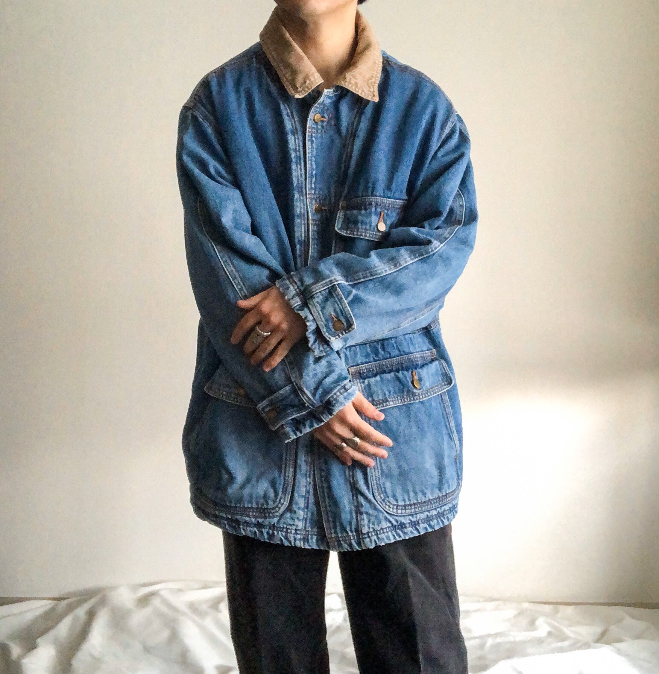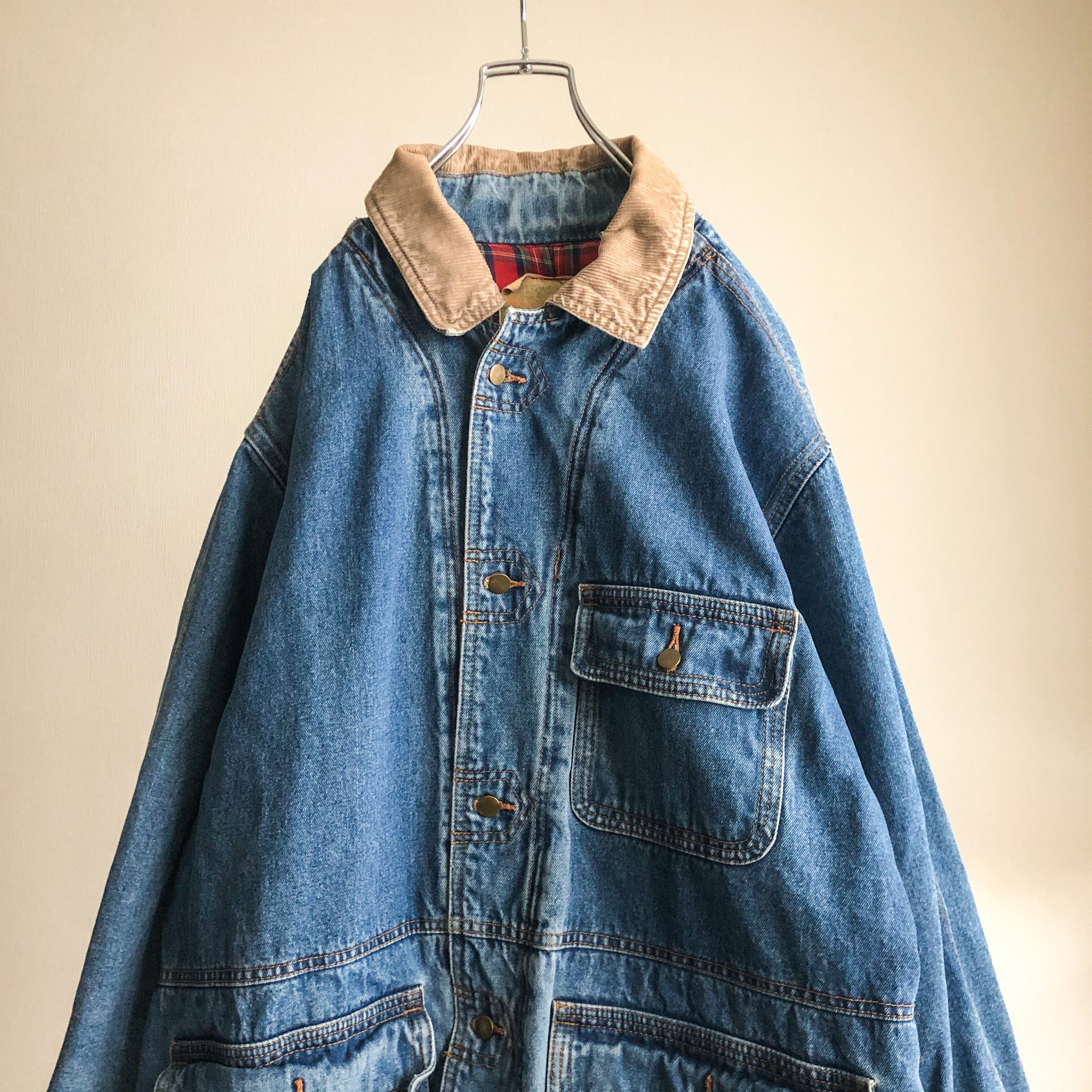 1990's~ corduroy collor 3pocket denim jacket