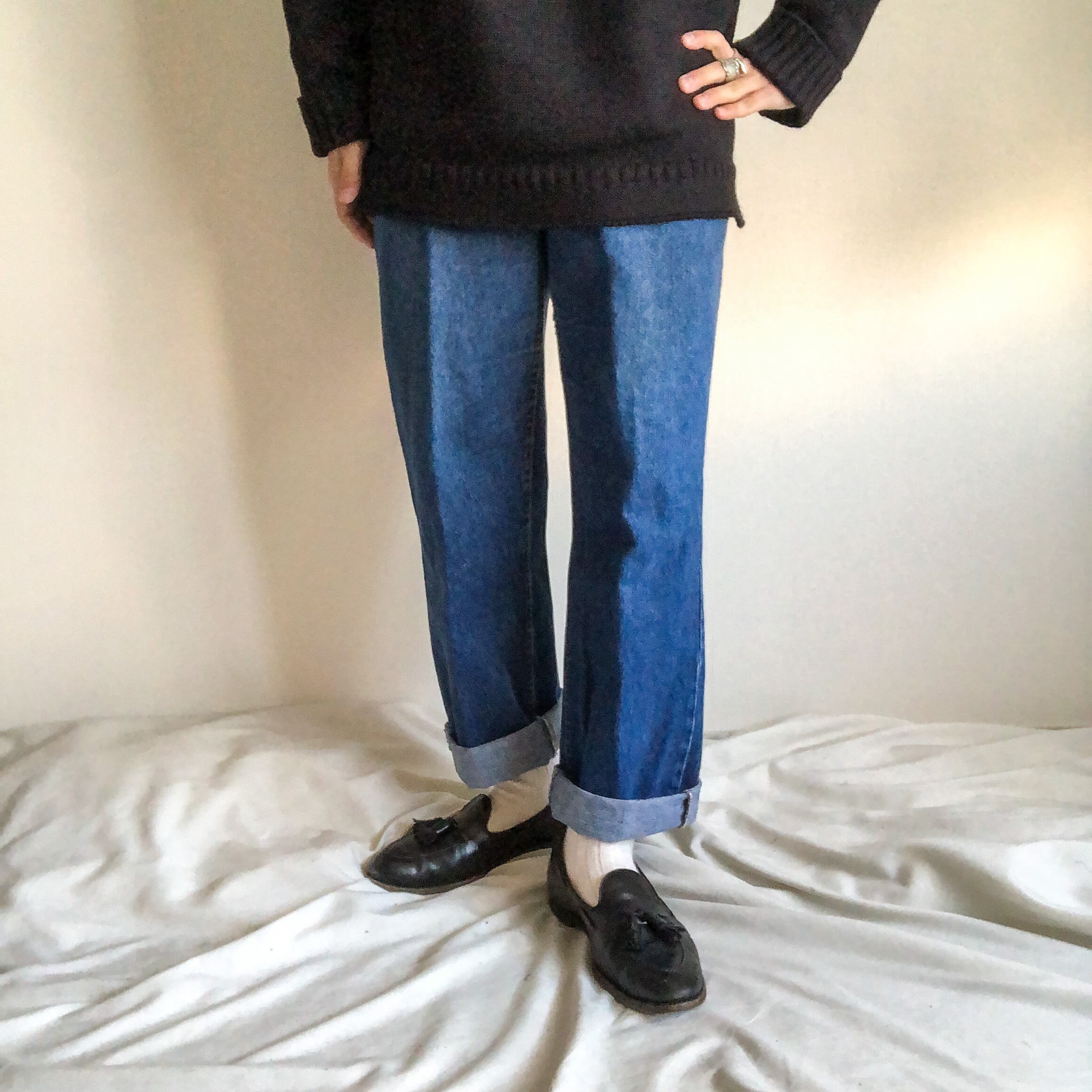 特徴 :程よく色落ちした雰囲気よい70s~頃のLeeのヴィンテージデニムパンツ。