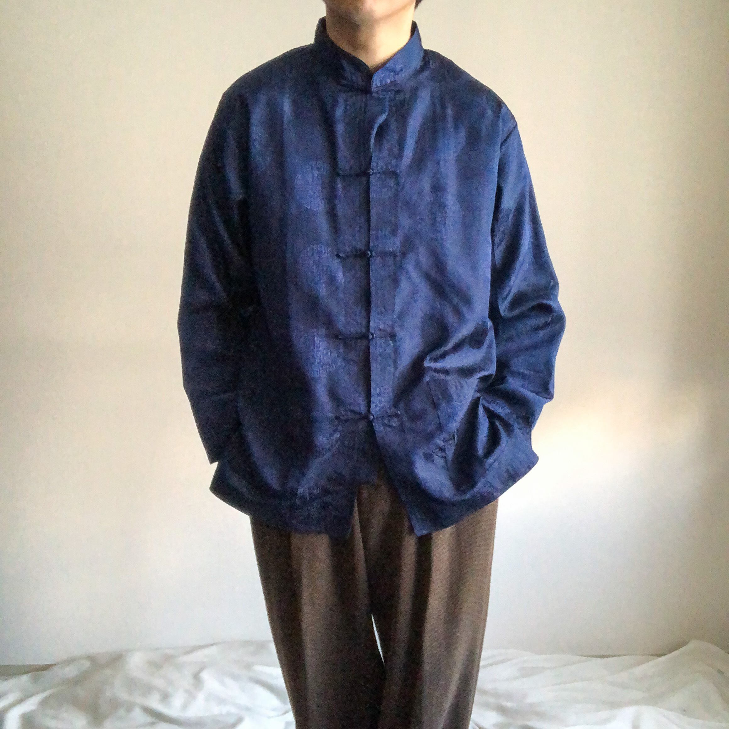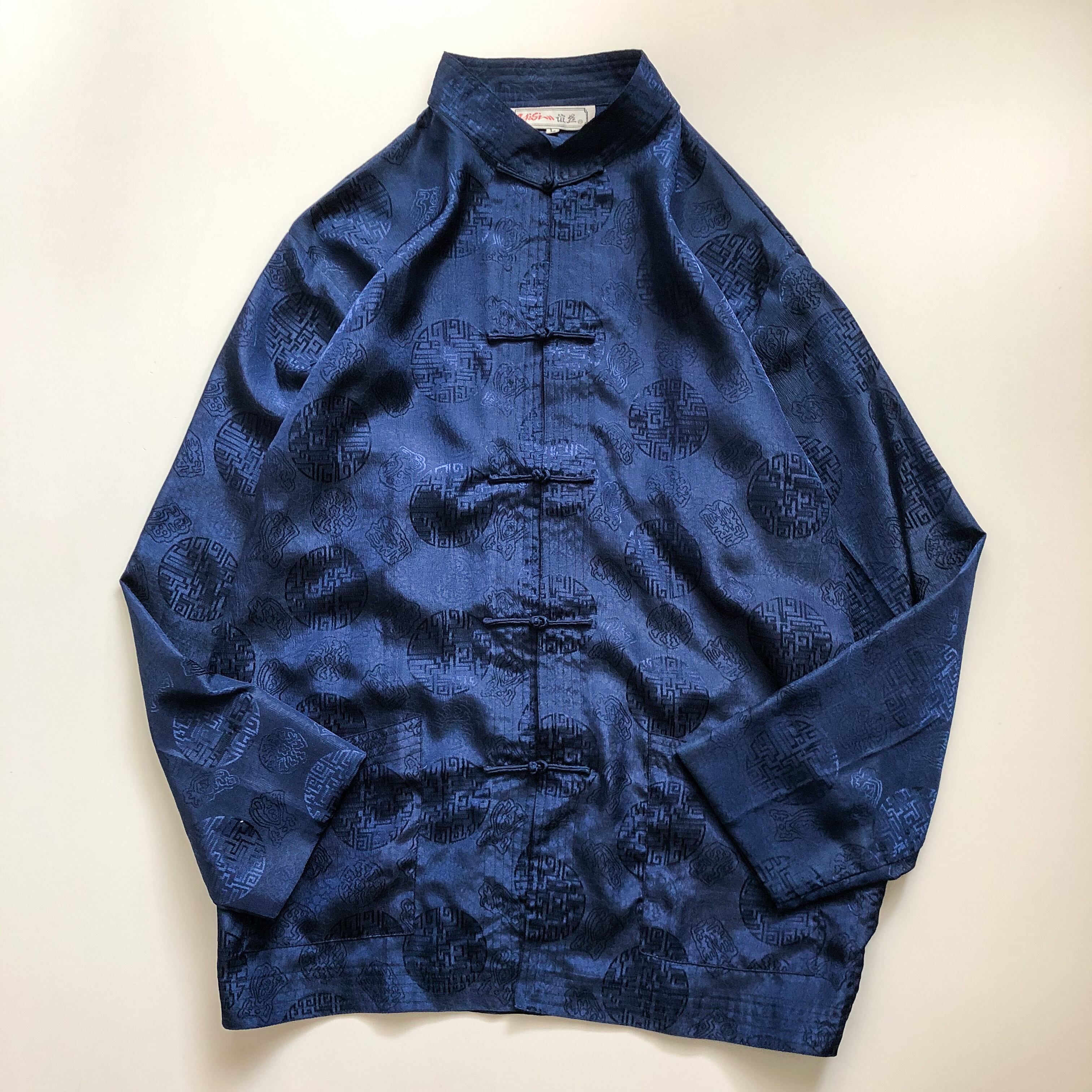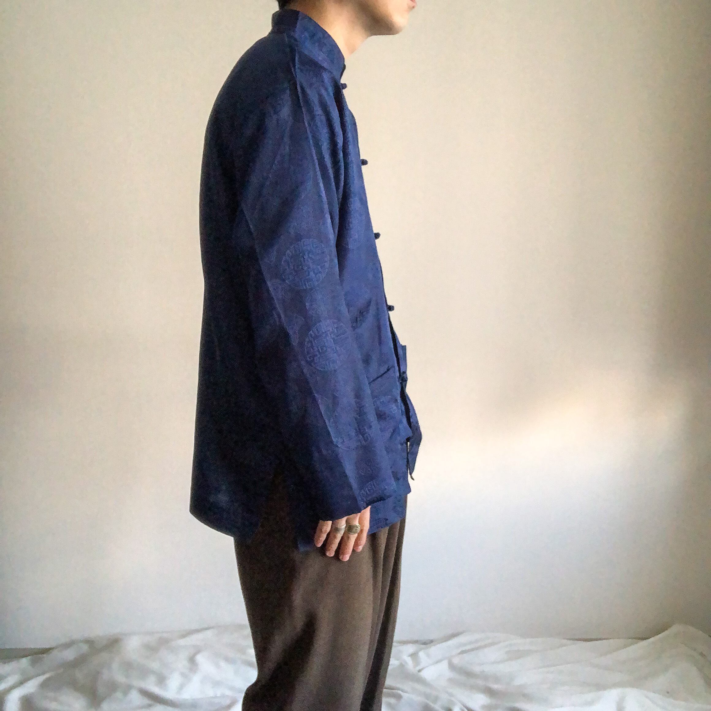 特徴 :ネイビーカラーにチャイナらしい総柄のテキスタイルが素晴らしいチャイナジャケット。