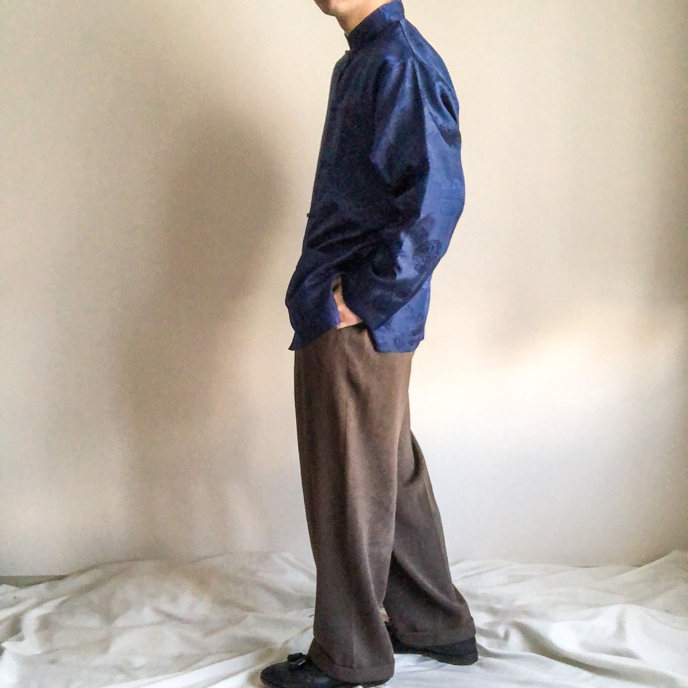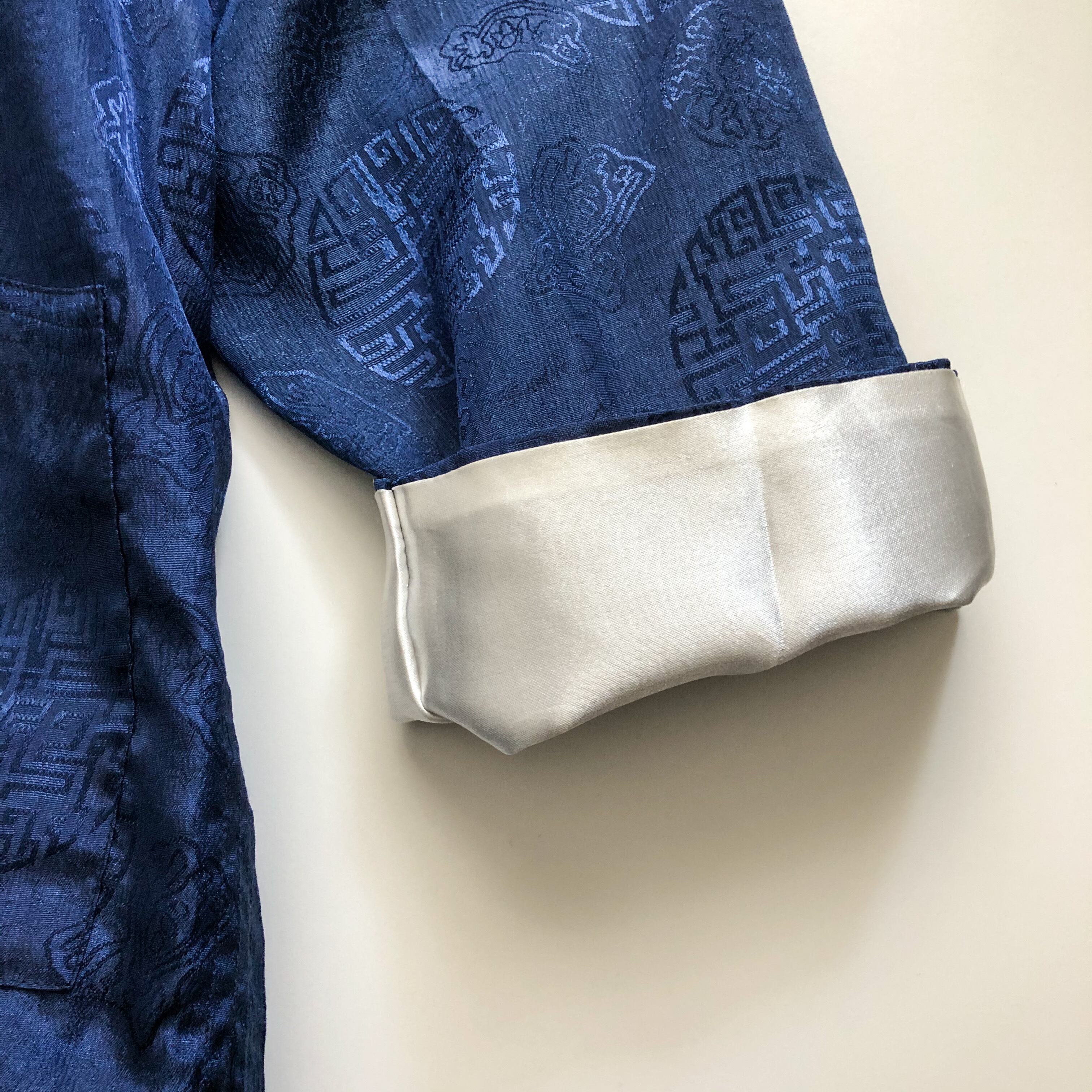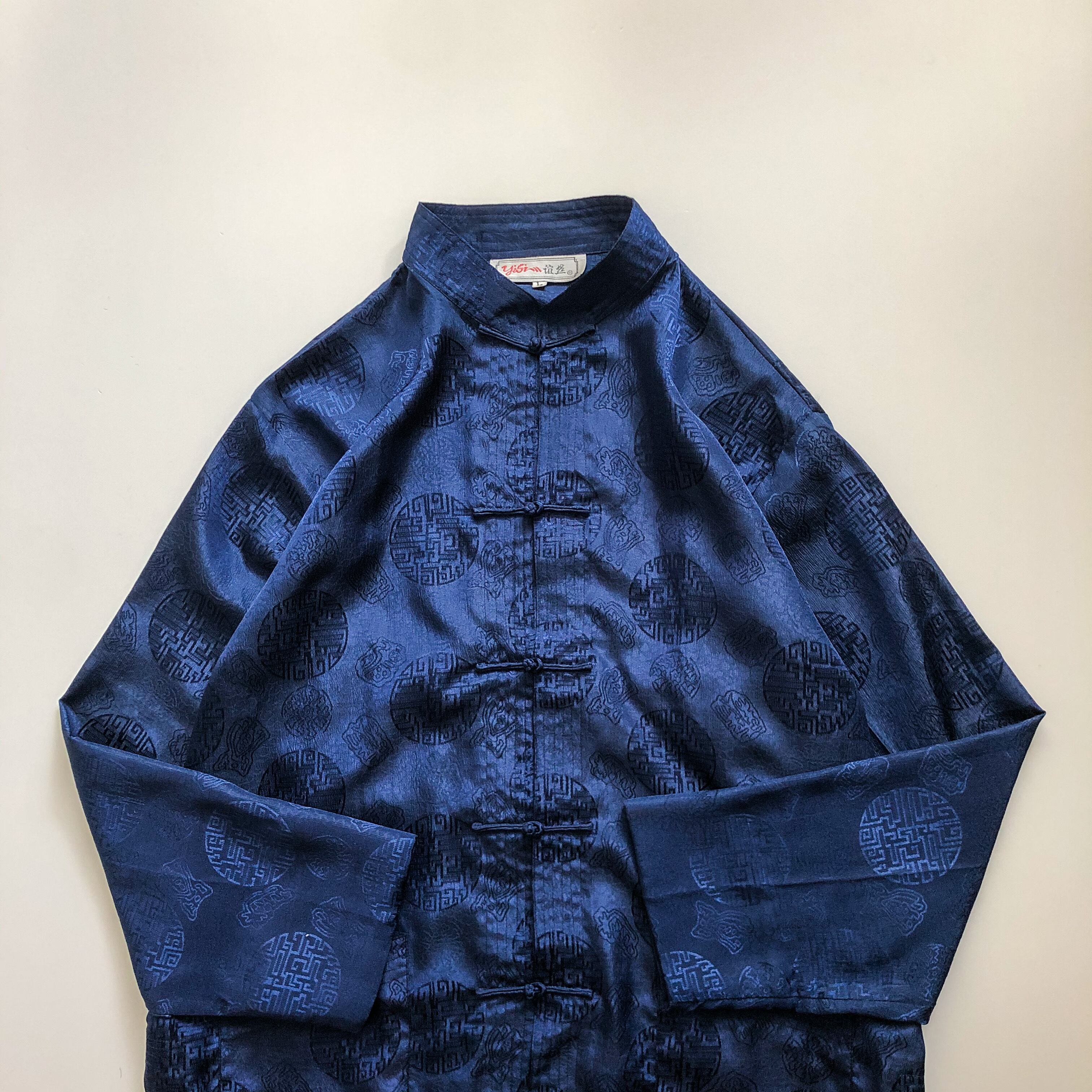 特徴 :ネイビーカラーにチャイナらしい総柄のテキスタイルが素晴らしいチャイナジャケット。