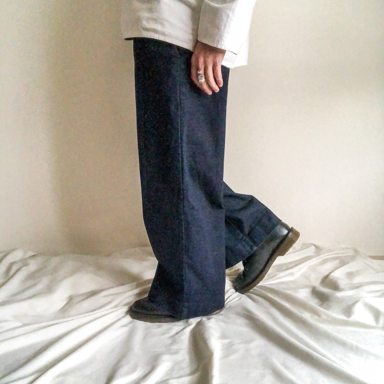 色も濃いのでヴィンテージのマリンパンツのようなルックスで履いていただけます。