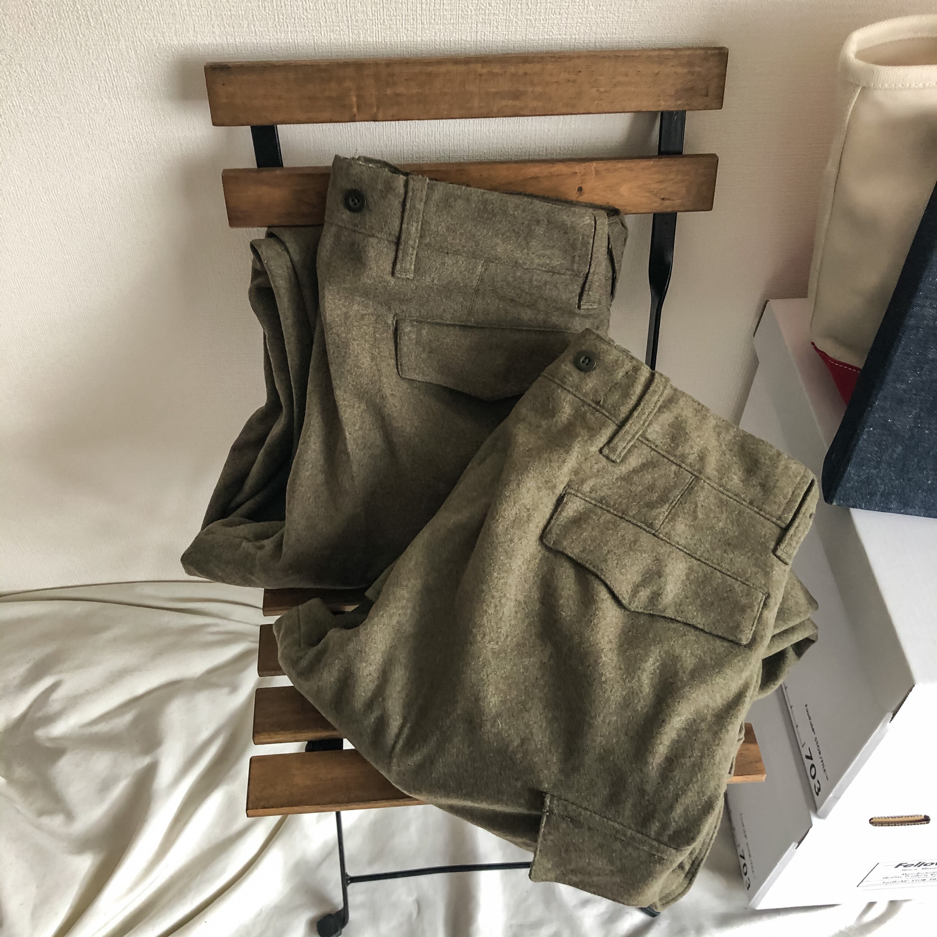 特徴 :ヴィンテージ市場にあまり出てこない希少なドイツ軍K.BEGEMANNウールパンツ。