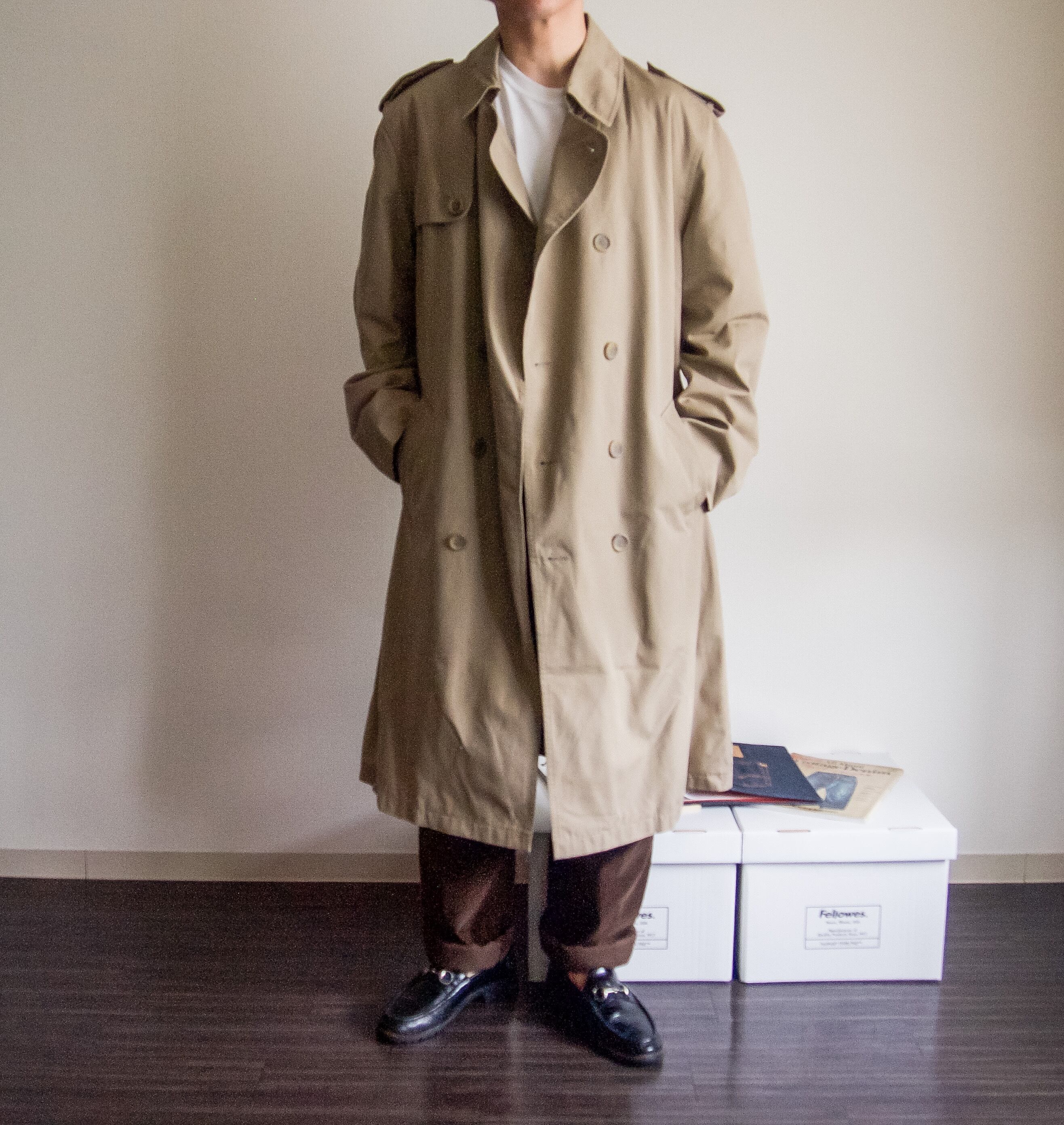 1980's~1990's "Oleg Cassini" beige long trench coat