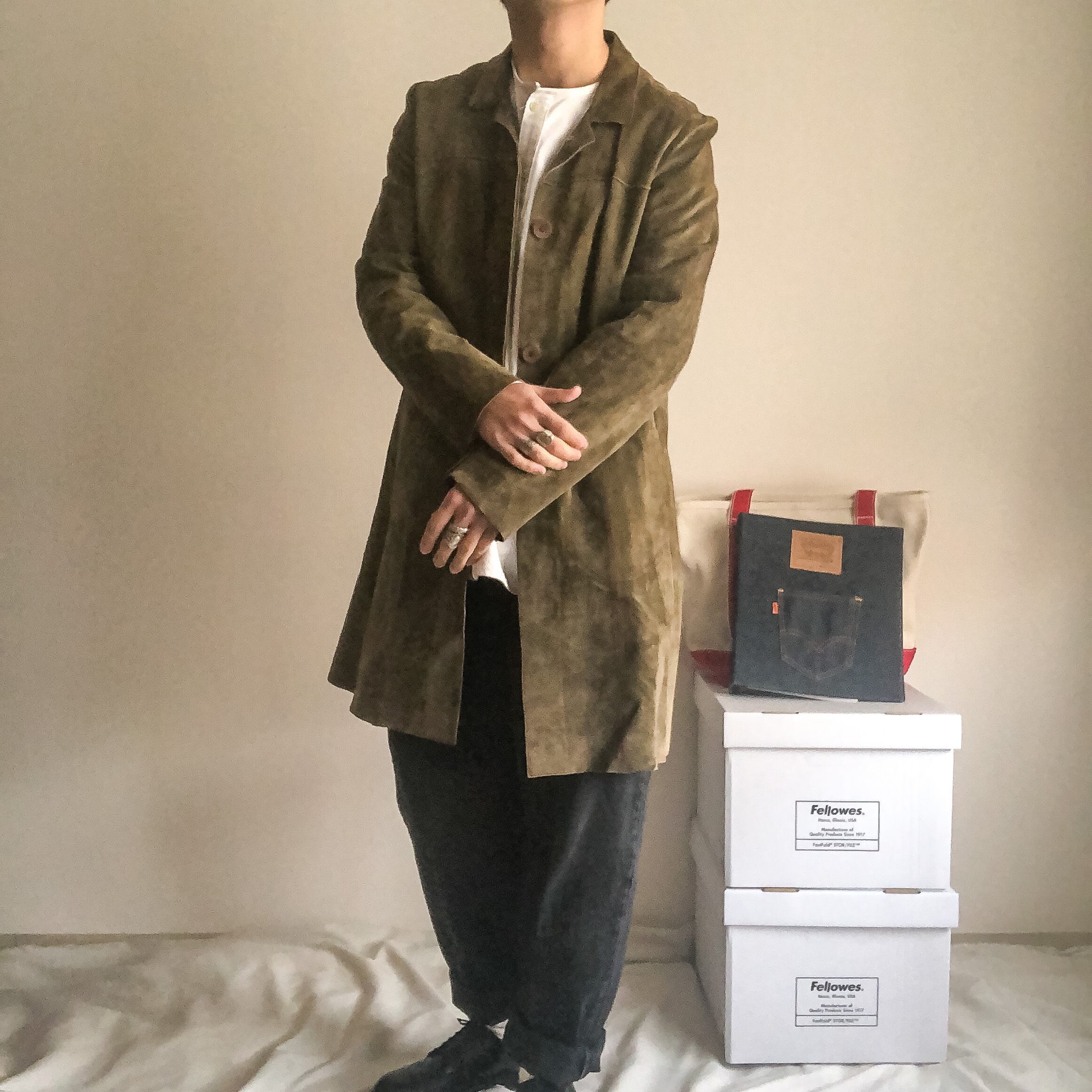 特徴 :70sライクな雰囲気のあるブラウンのスエードレザーコート。