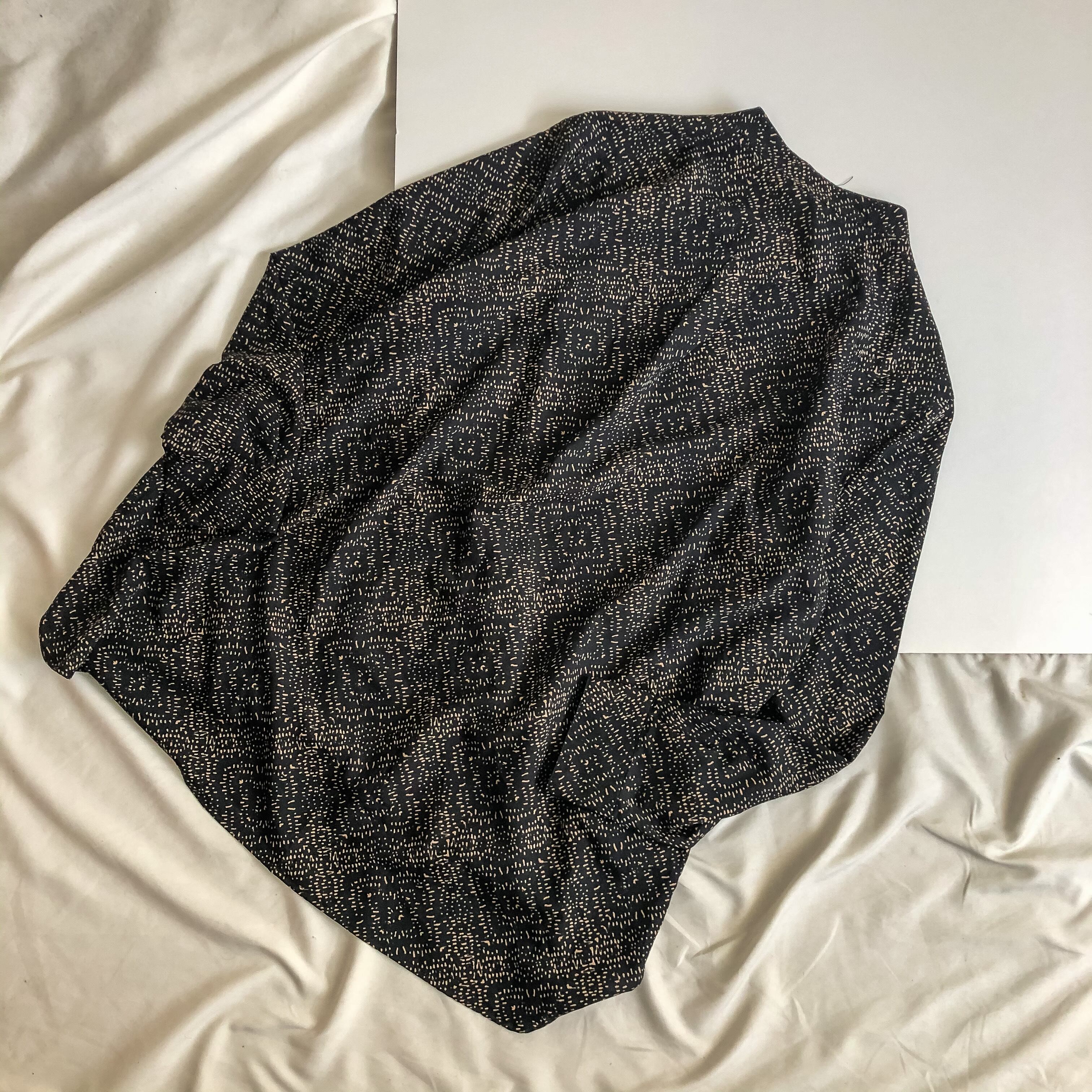 "LAUREN" Ralph Lauren black patterned allover band collor shirt