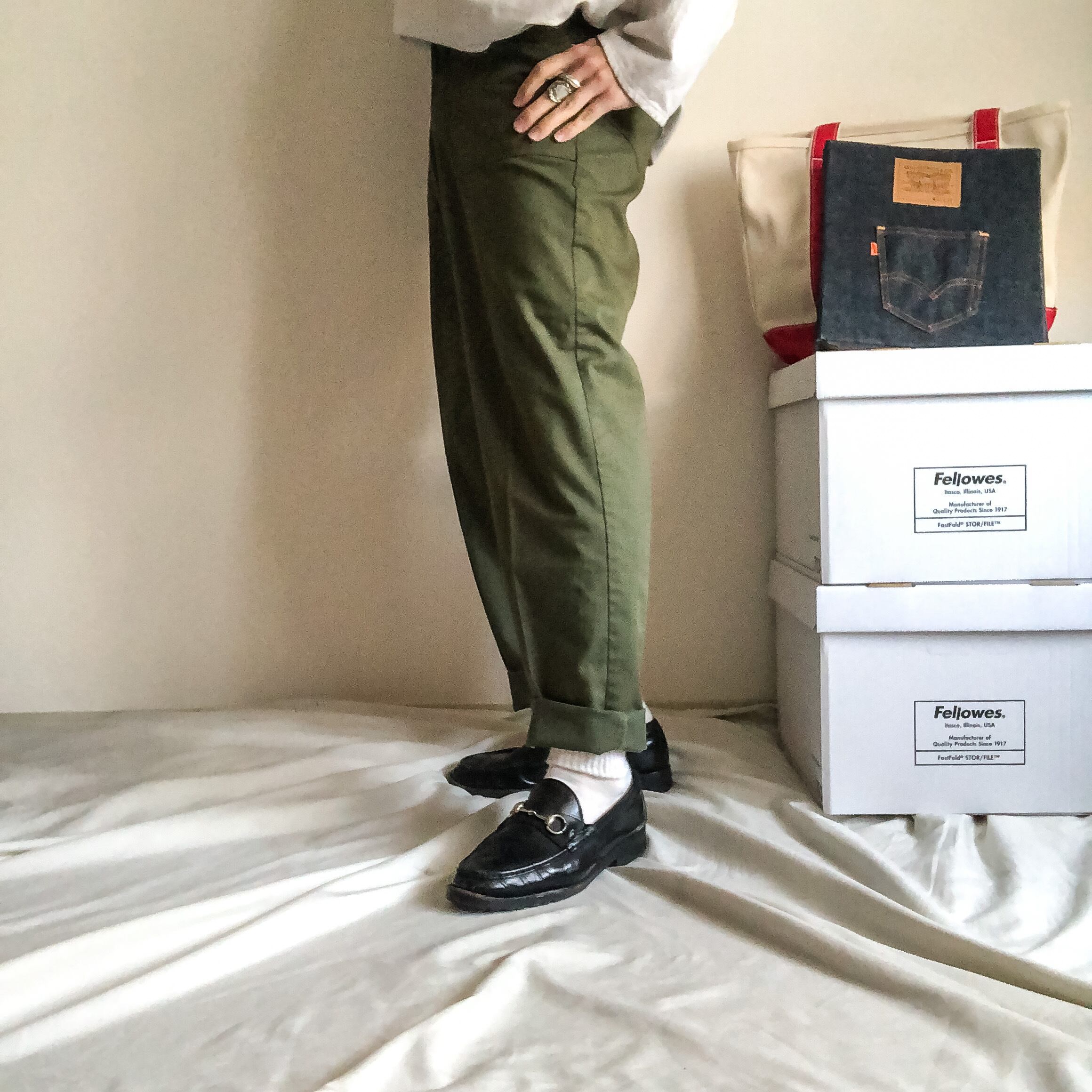 定番アイテムですがアメリカでは数が激減してきており、ベイカーパンツも市場価値が上がってきています。早めに抑えておきたいアイテムですね。