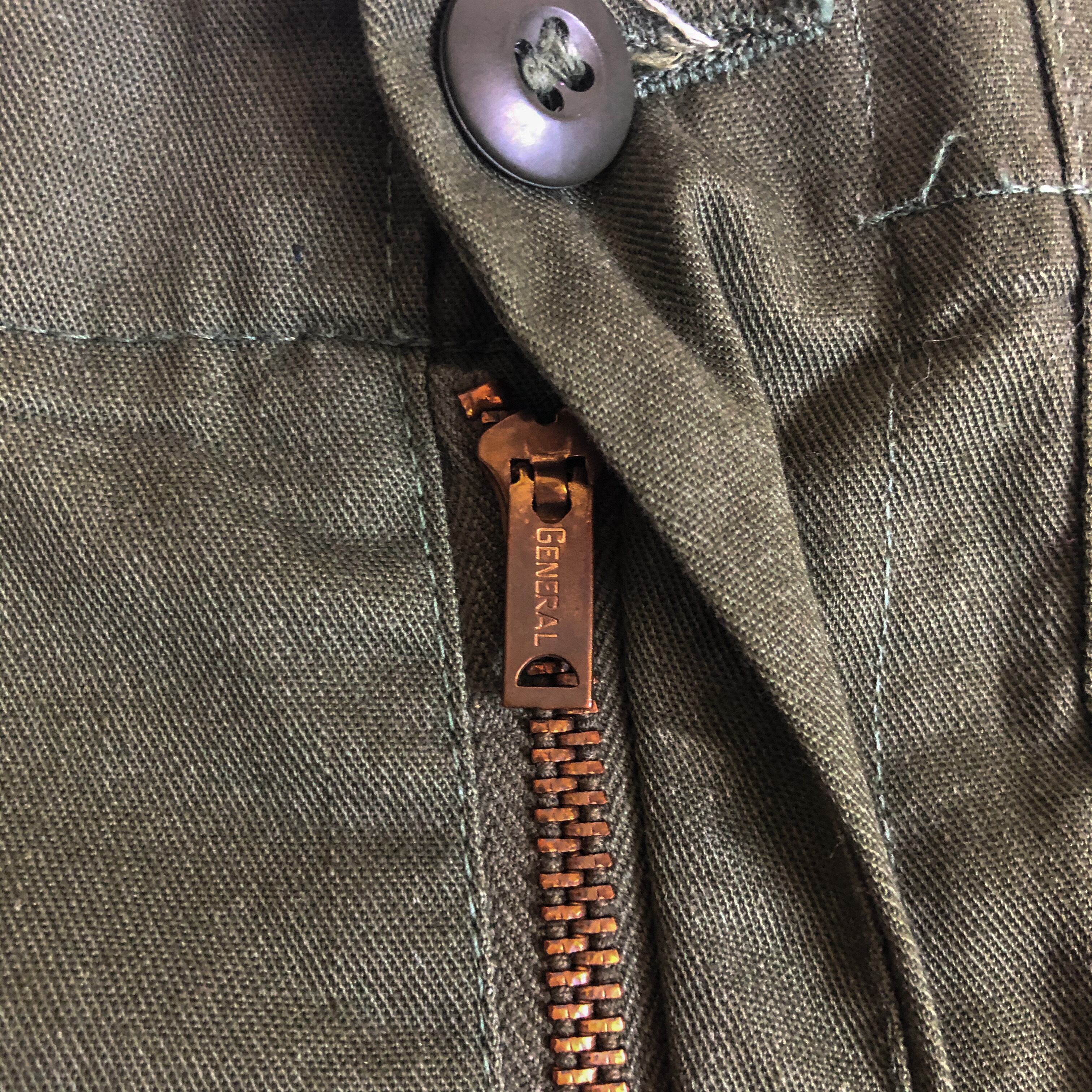 古いオールコットンの物に比べて、こちらはセンタープレスが入り少し裾にかけてテーパードのかかるシルエットも魅力でしょう。