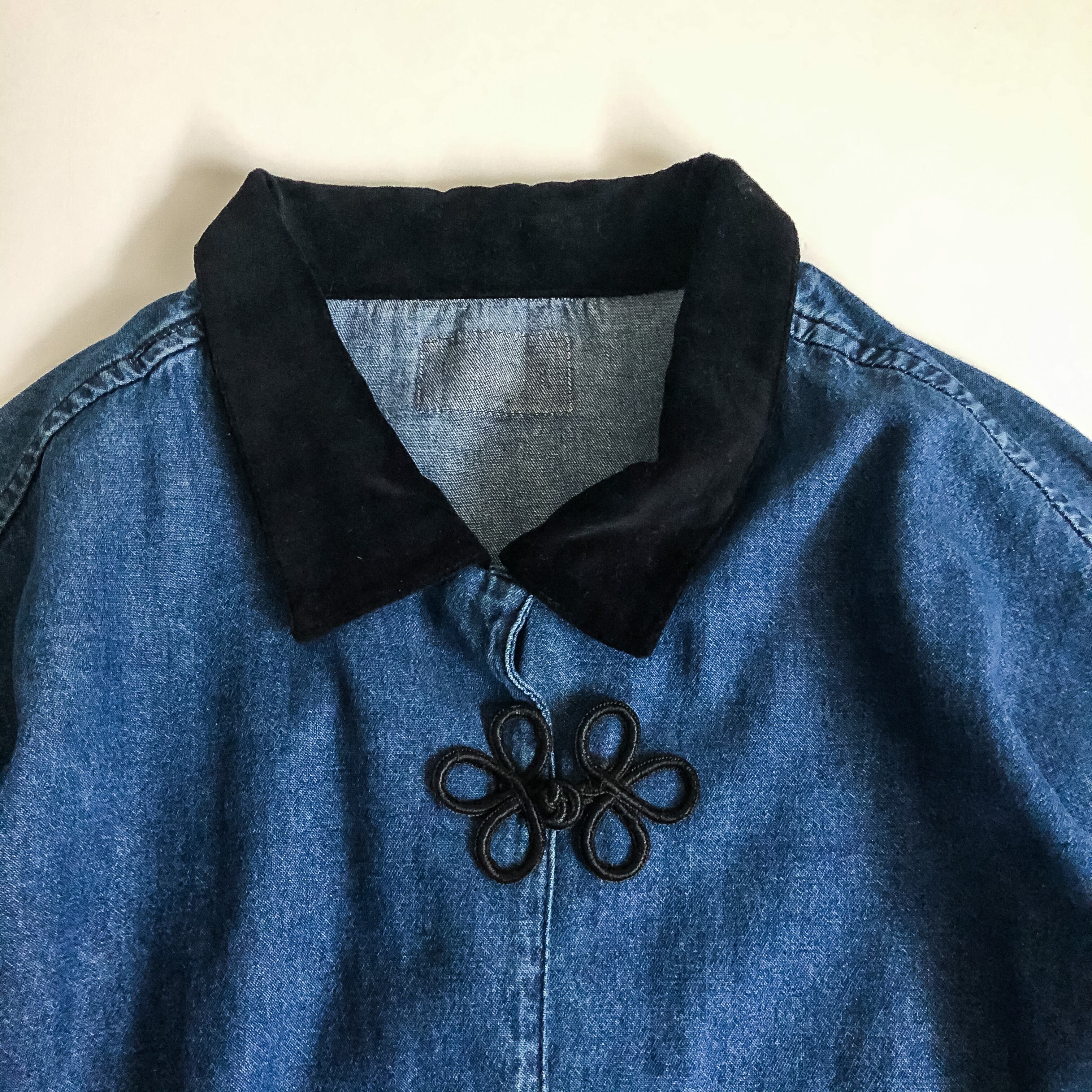 特徴 :襟や袖口はベルベット生地に切り替わったチャイナジャケットの中でもレアなデザインのチャイナジャケットです。
