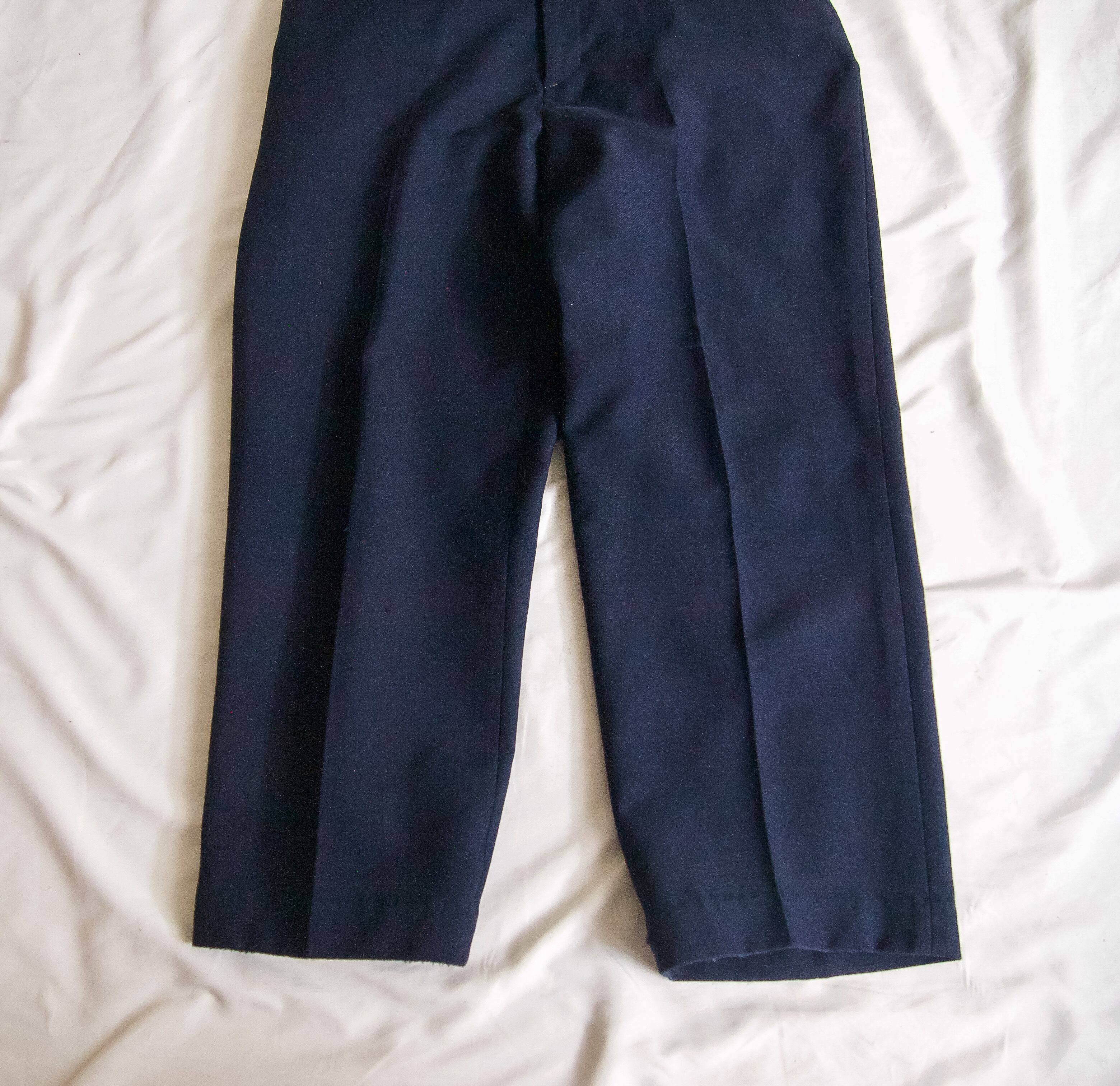 シンプルな濃いネイビーに、これからの時期にはもってこいなクロップド丈。
