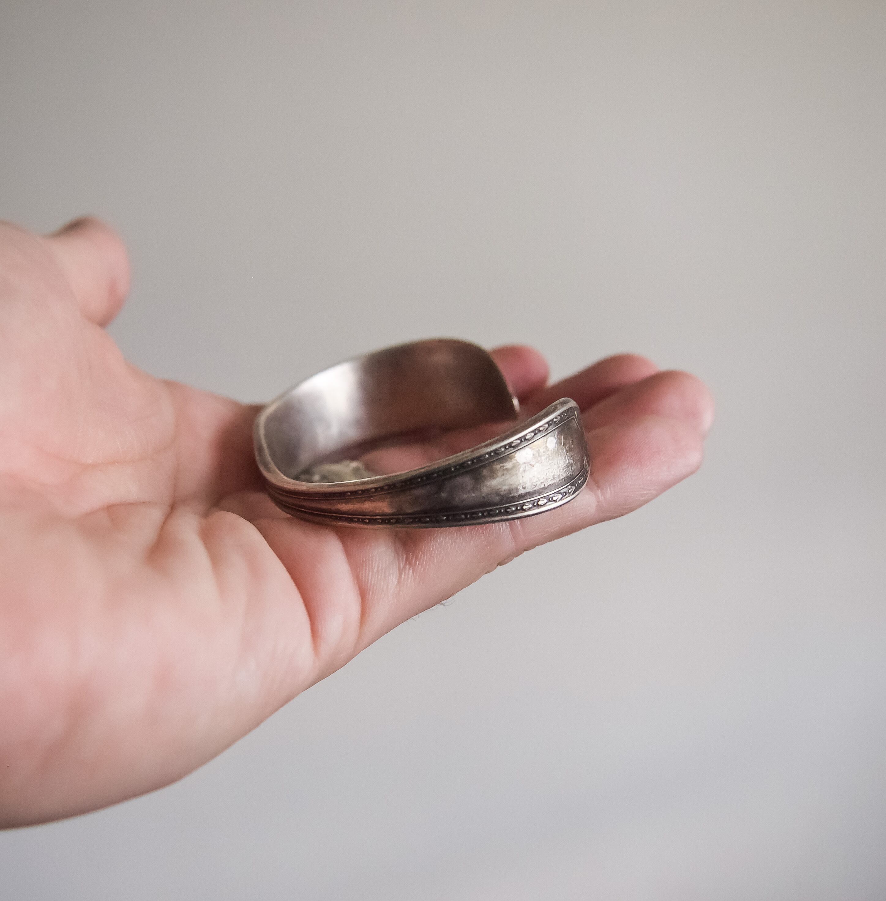 古着だからこそのくすみや錆、キズが良い雰囲気を醸し出してくれている存在感のあるまさに一点物のバターナイフバングル。