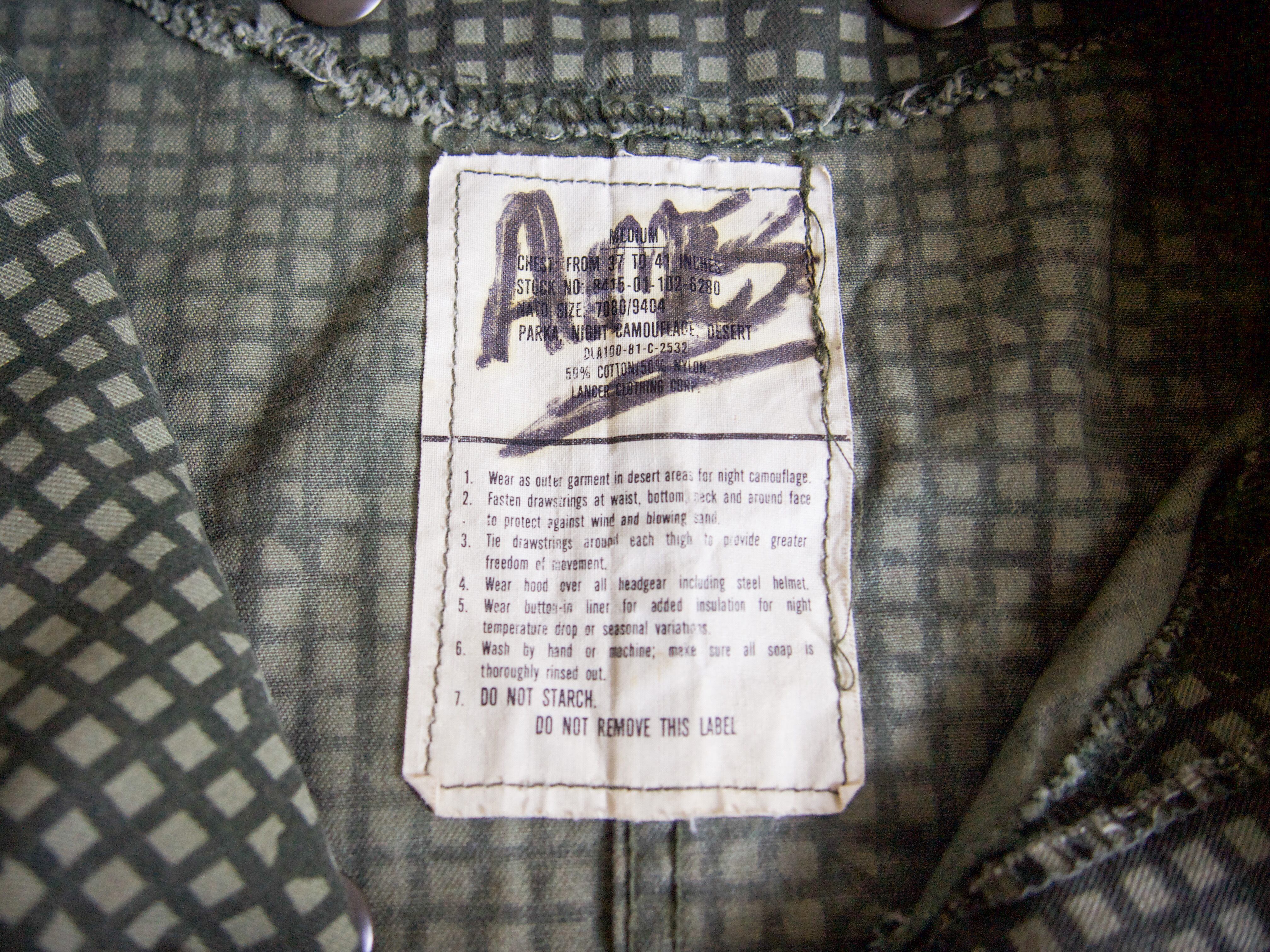特徴 :1981年製のUS ARMYのナイトカモパーカー。