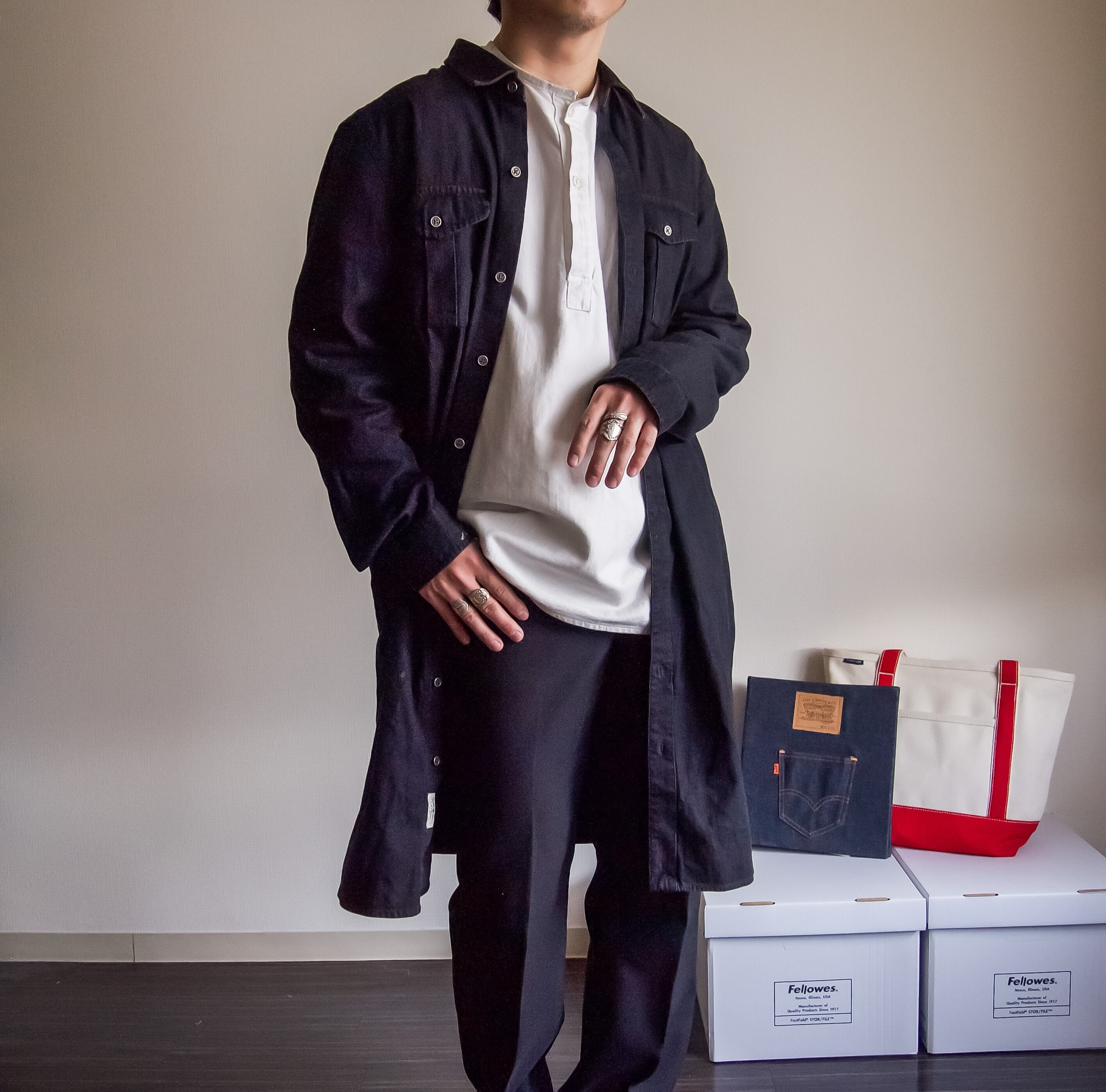特徴 :かなり着丈の長いシャツデザインのラルフローレンのロングコート。
