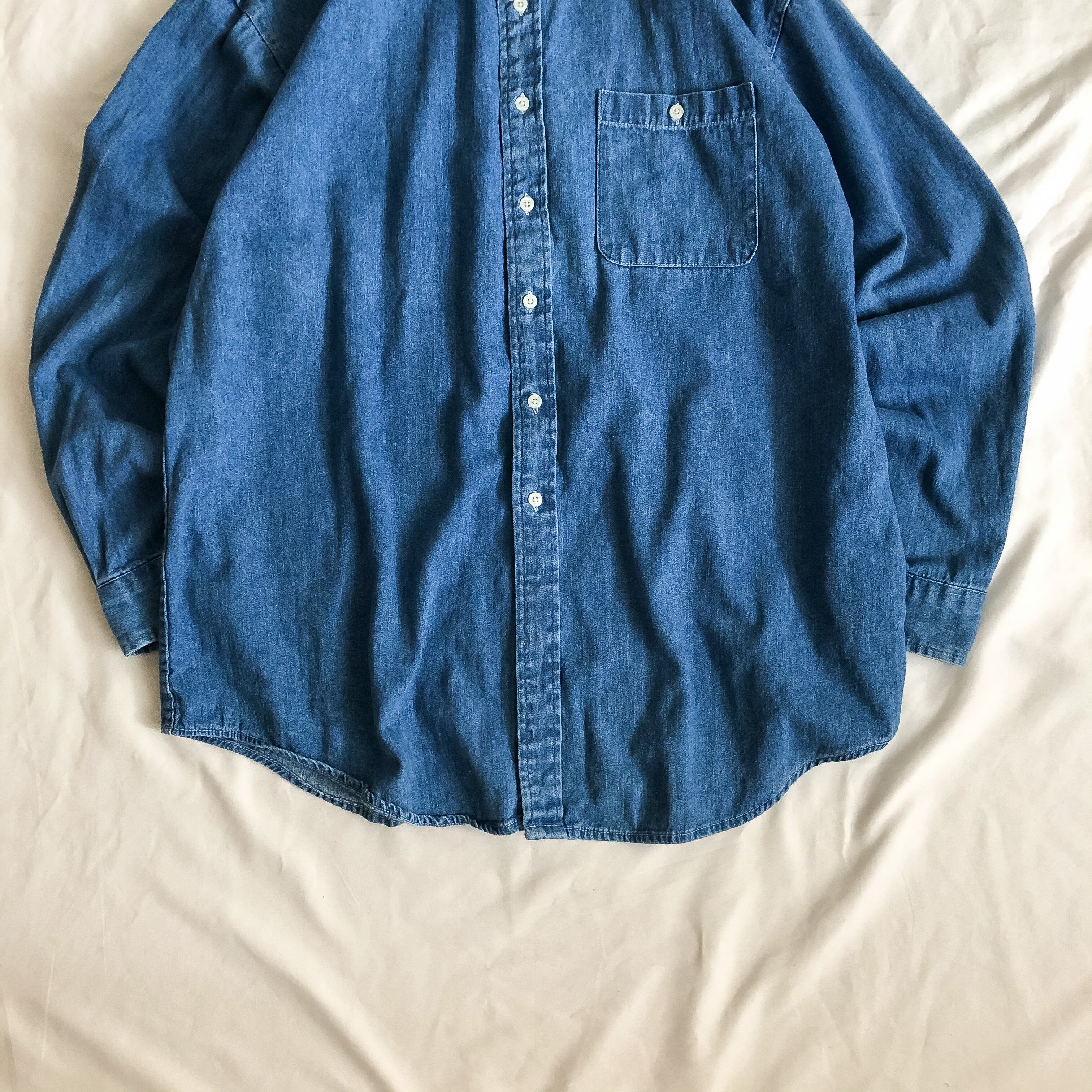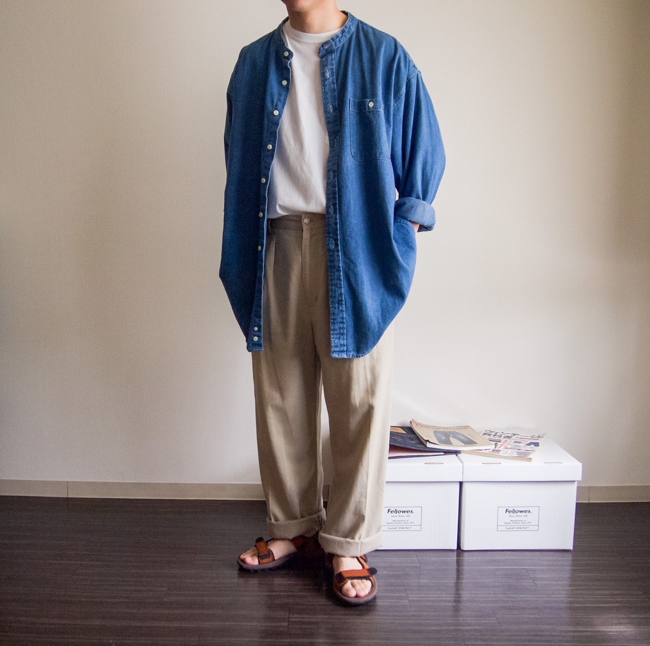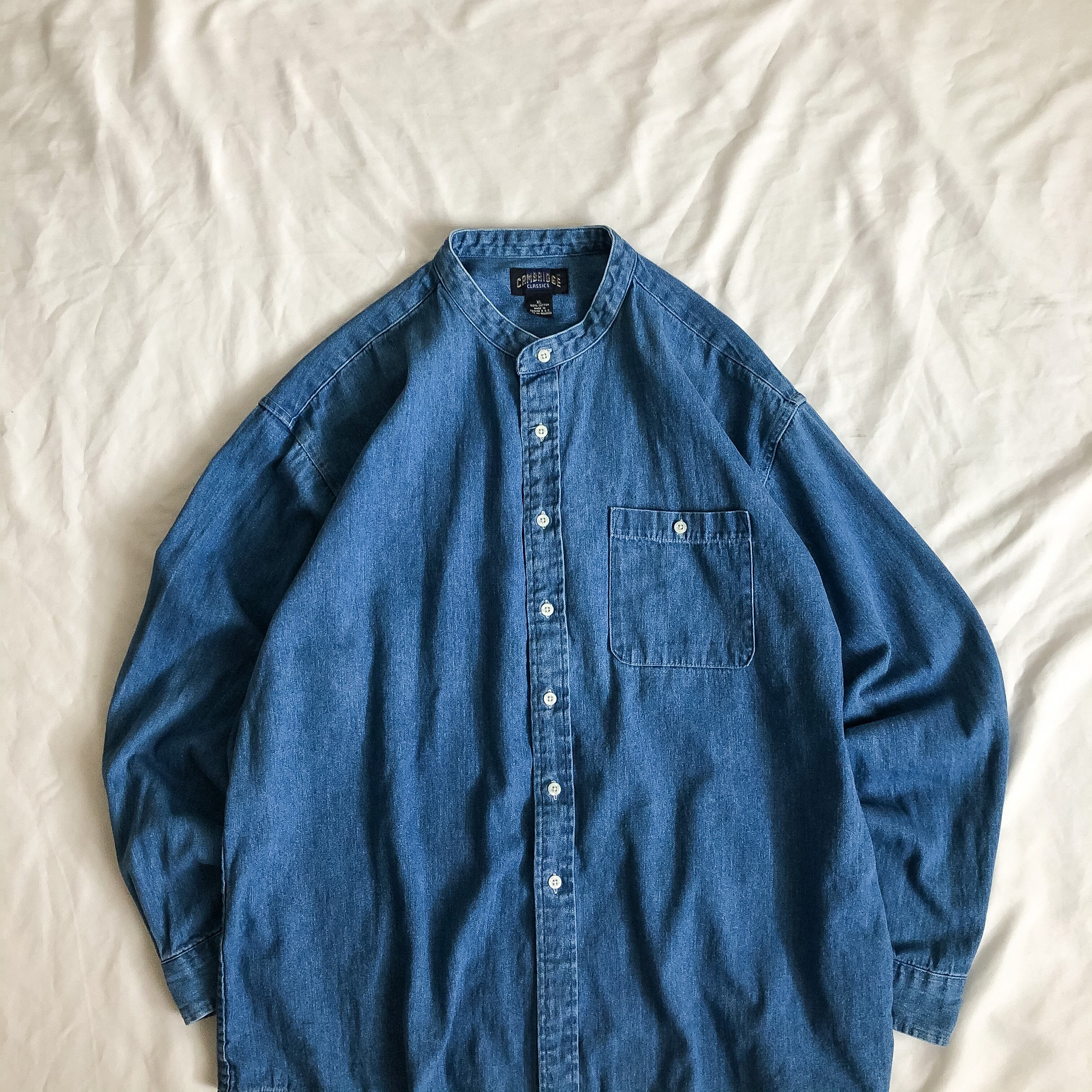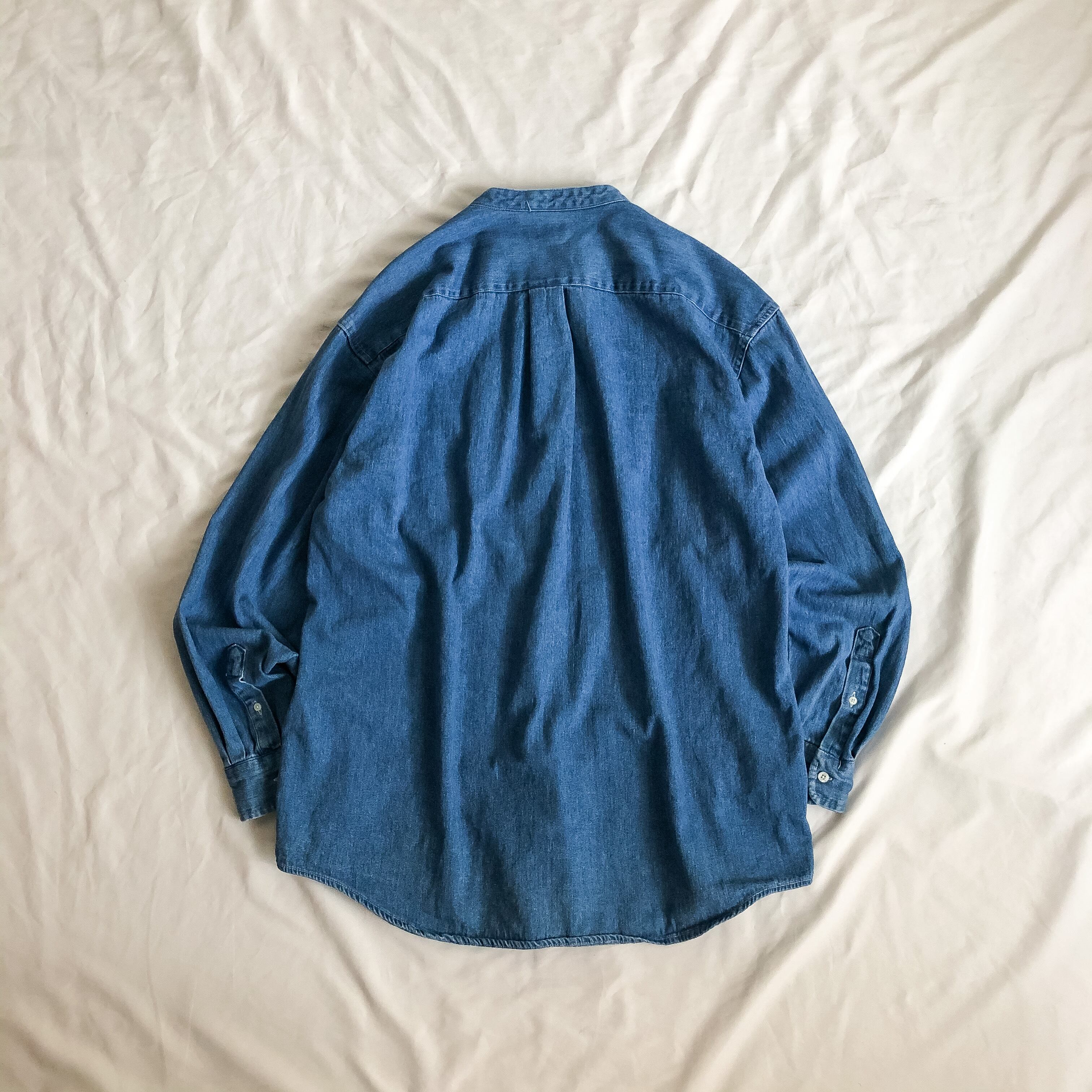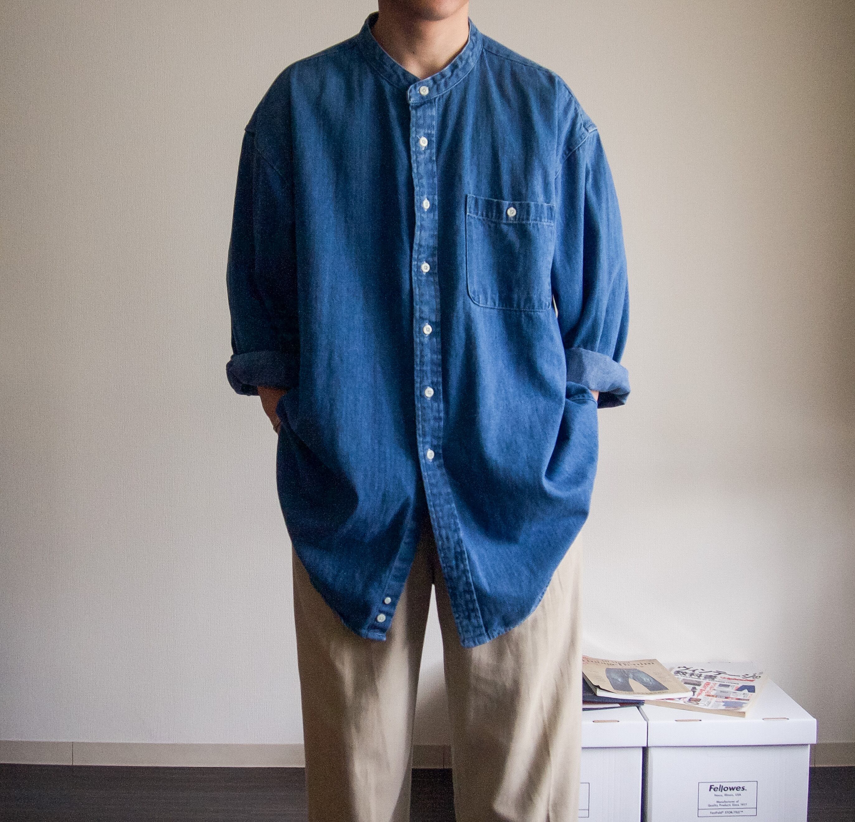 特徴 :XL表記のビッグサイズにデニム素材のバンドカラーがグッドな一着です。