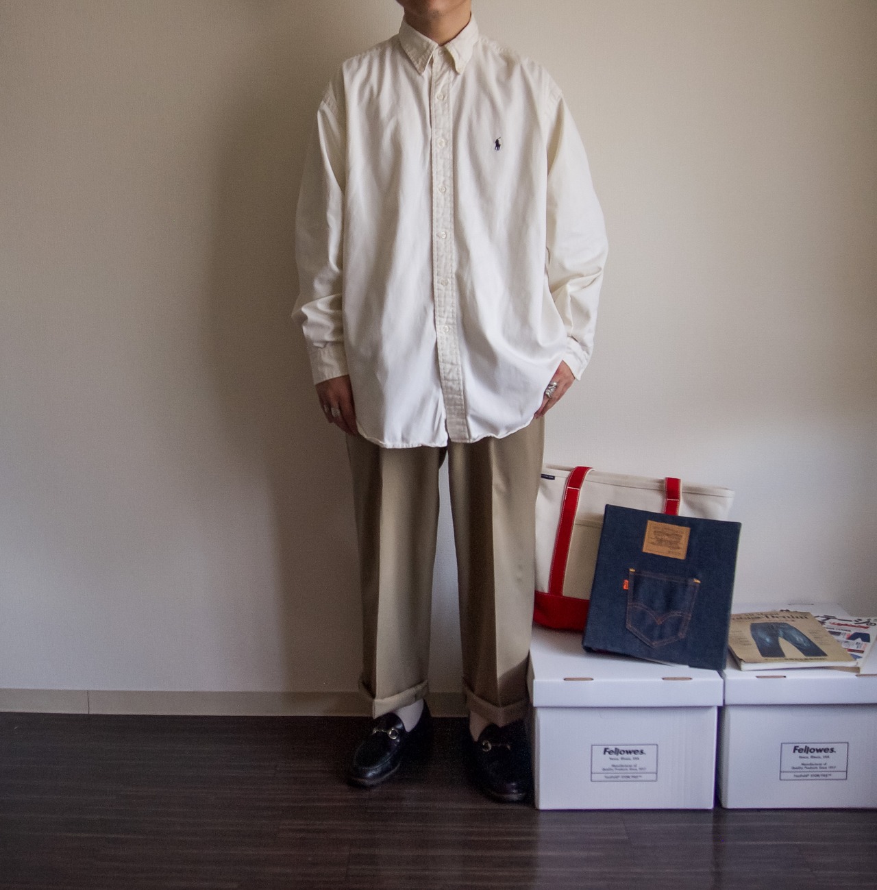 定番中の定番ですが、ビッグサイズでしっかりとボタンダウンってところが良いですね。