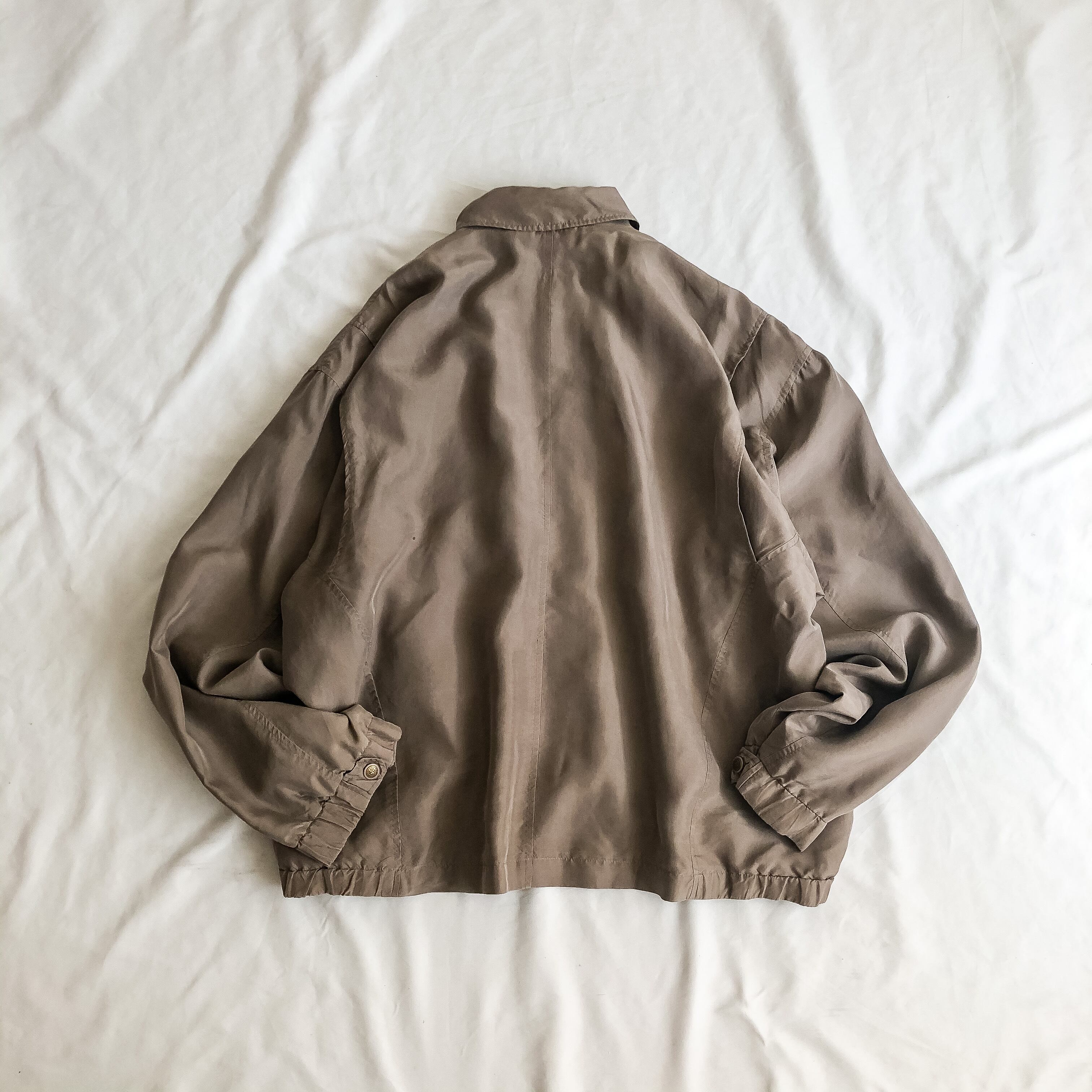特徴 :MA-1のような形が多いシルクブルゾンですが、少し珍しいドリズラージャケットに近いような形のシルクブルゾン。