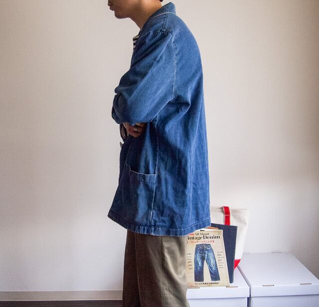 特徴 :シンプルなワンボタンのデニムテーラードジャケット。