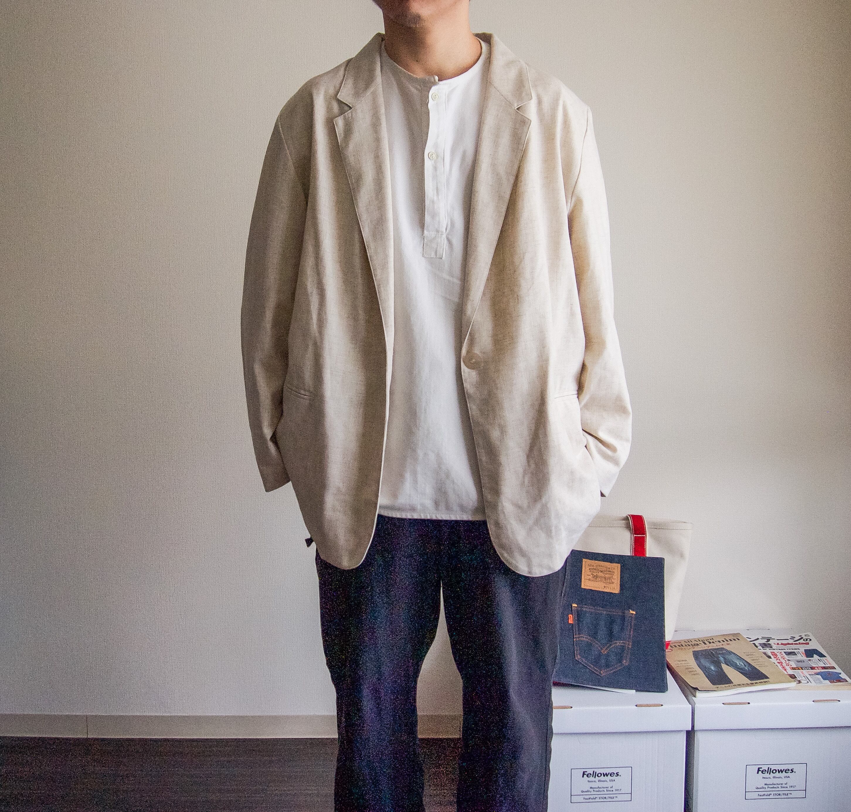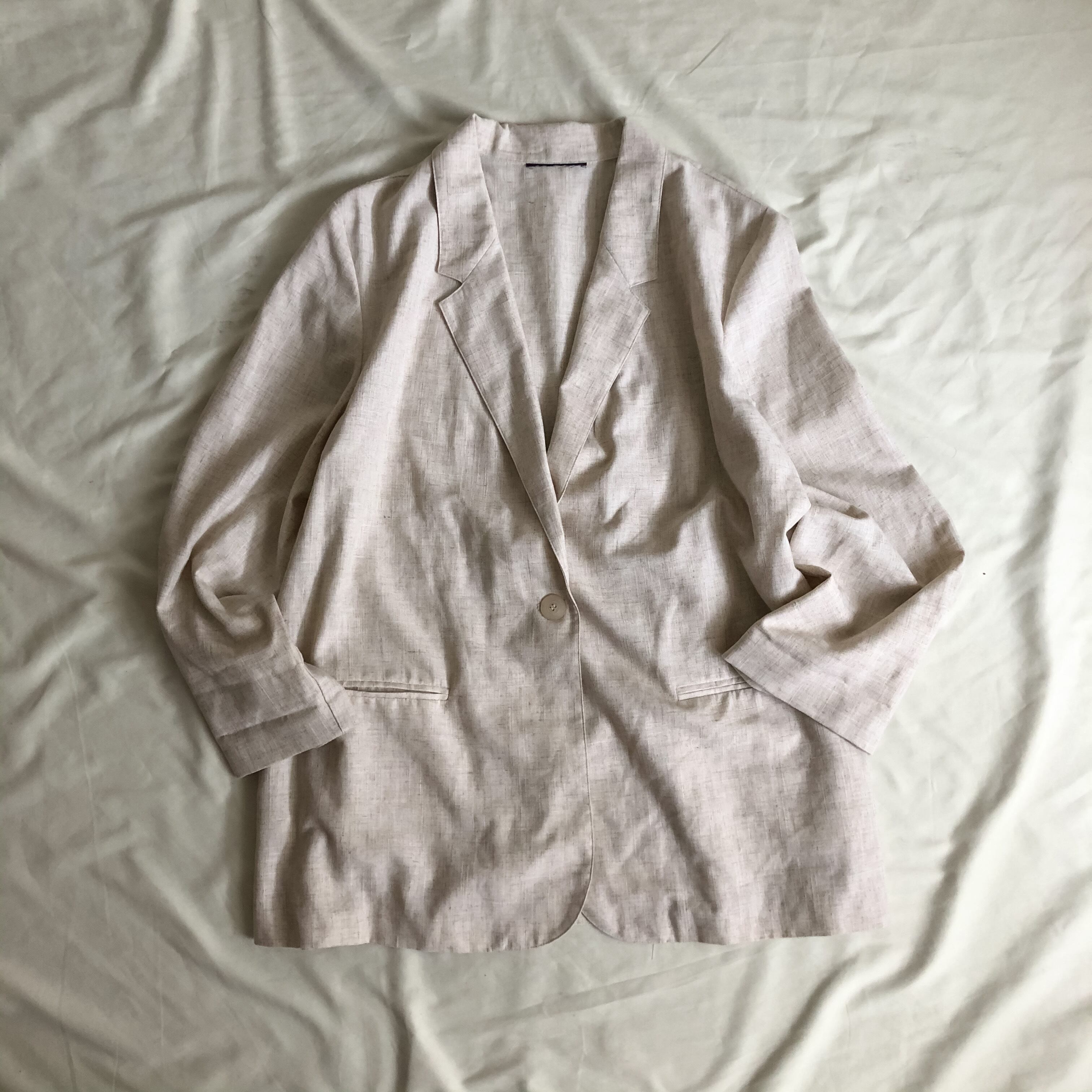特徴 :ナチュラルな雰囲気の生成りカラーにビッグなシルエットがクールな90s頃のテーラードジャケット。