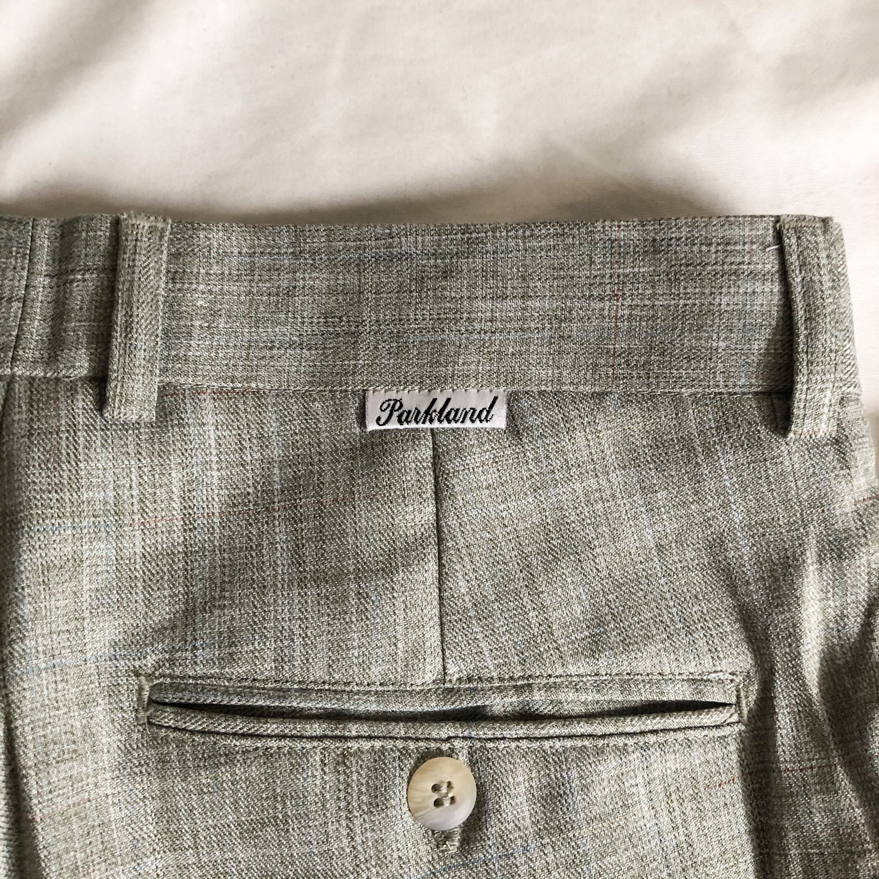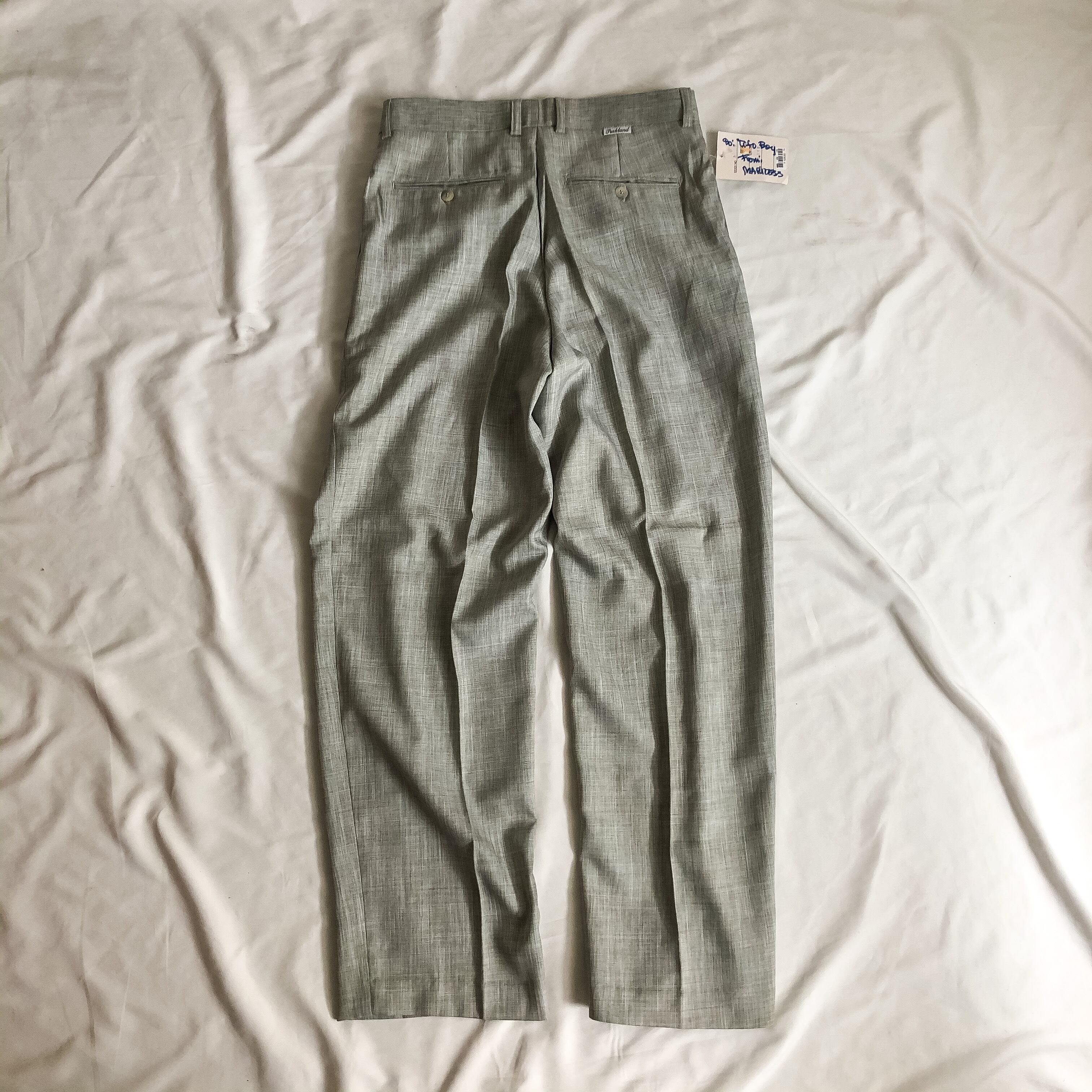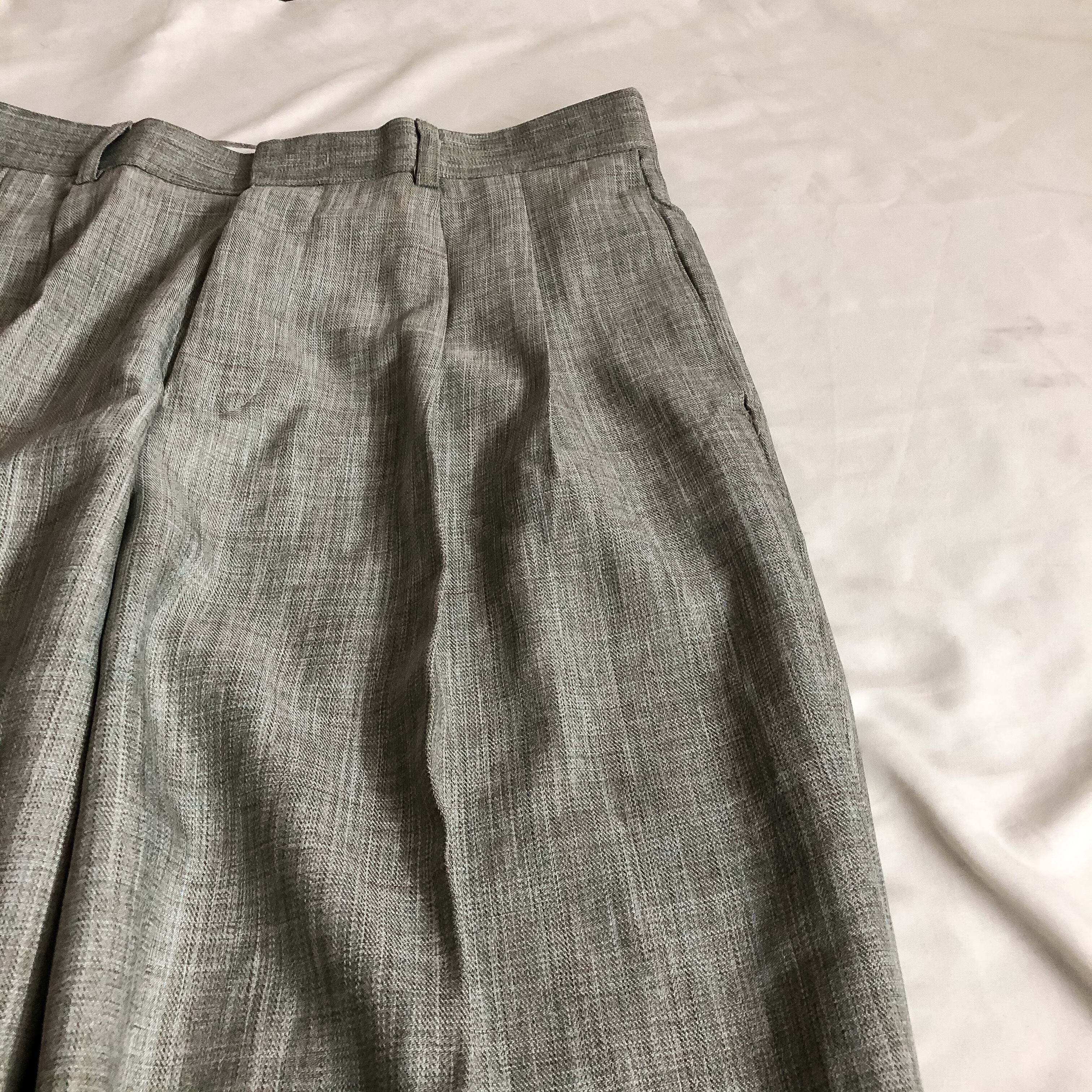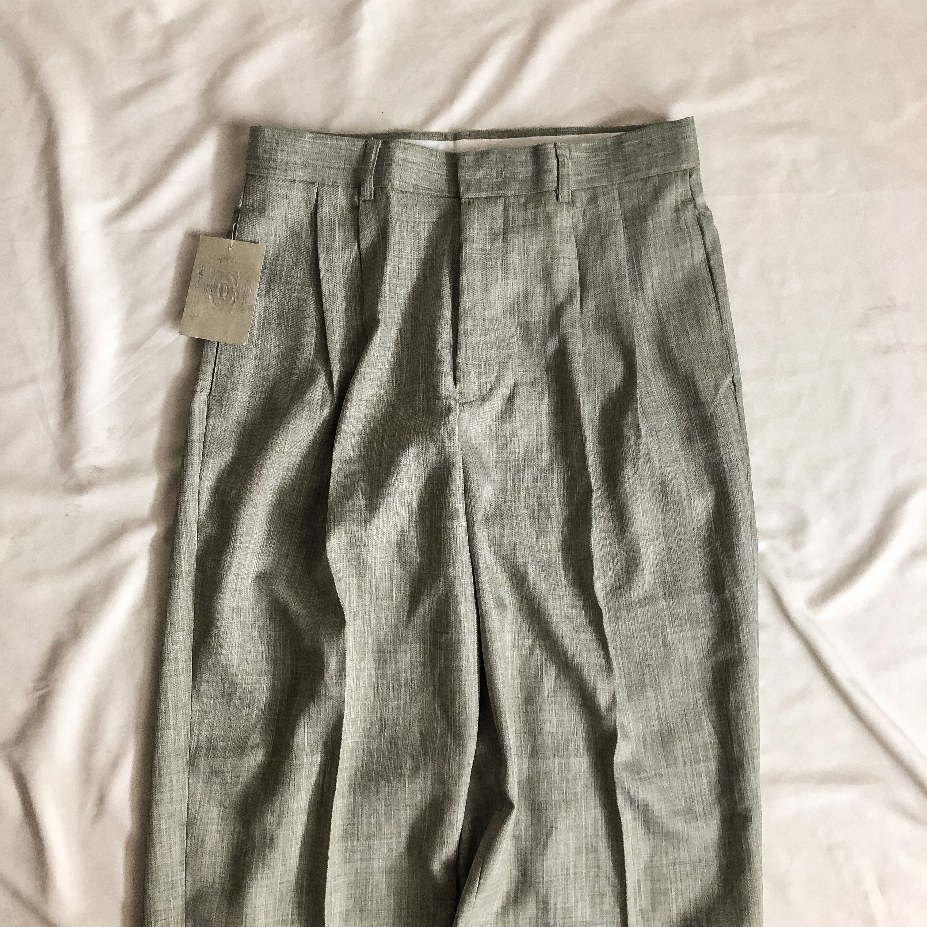特徴 :ベージュ、グレーや生成りが混ざったような独特な表情がクールなスラックスパンツ。