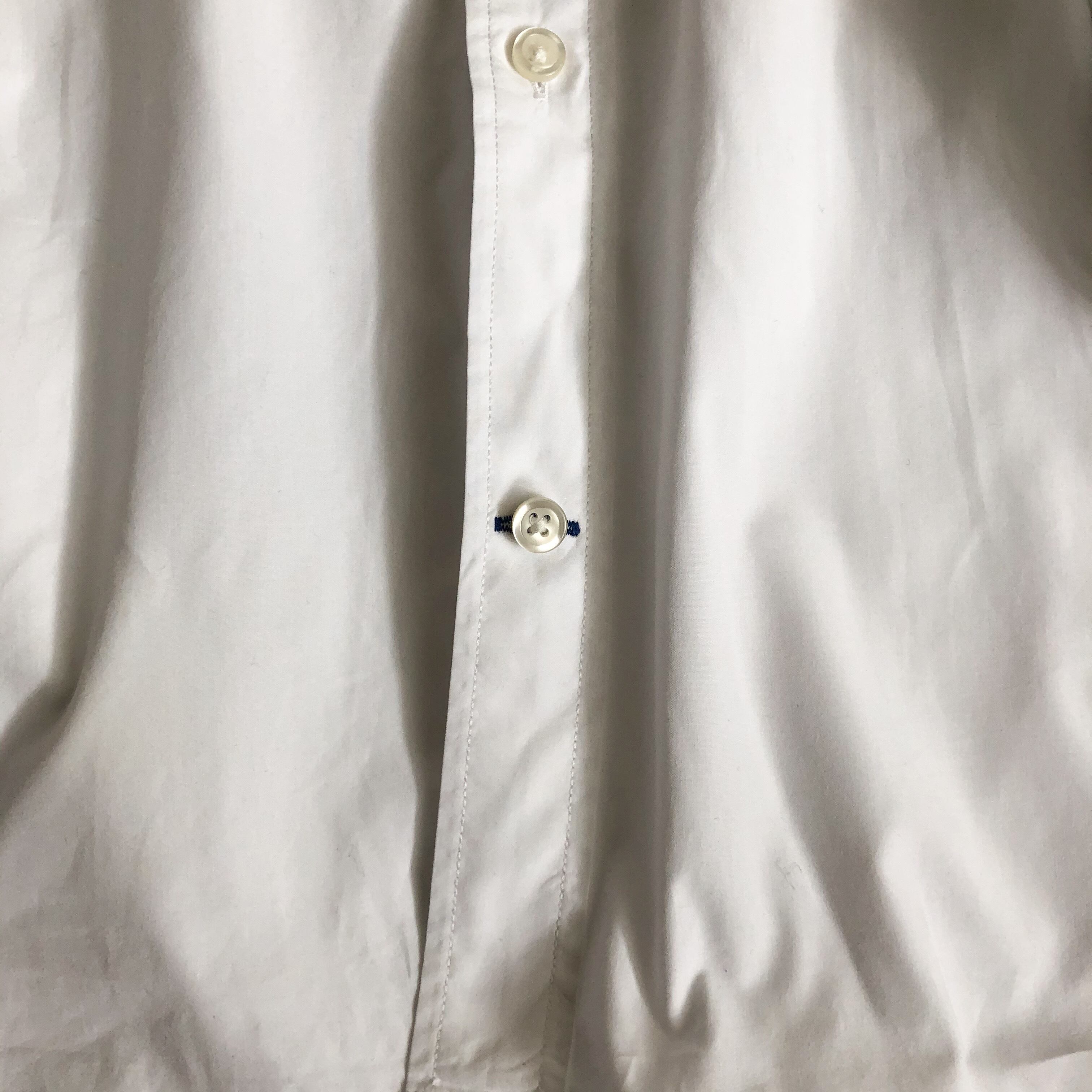 しっかりとボタンダウンで丸みのあるポケットや一番下のボタンホールにブルーのステッチが使われていたりとGAPらしい細部に拘ったディテール。