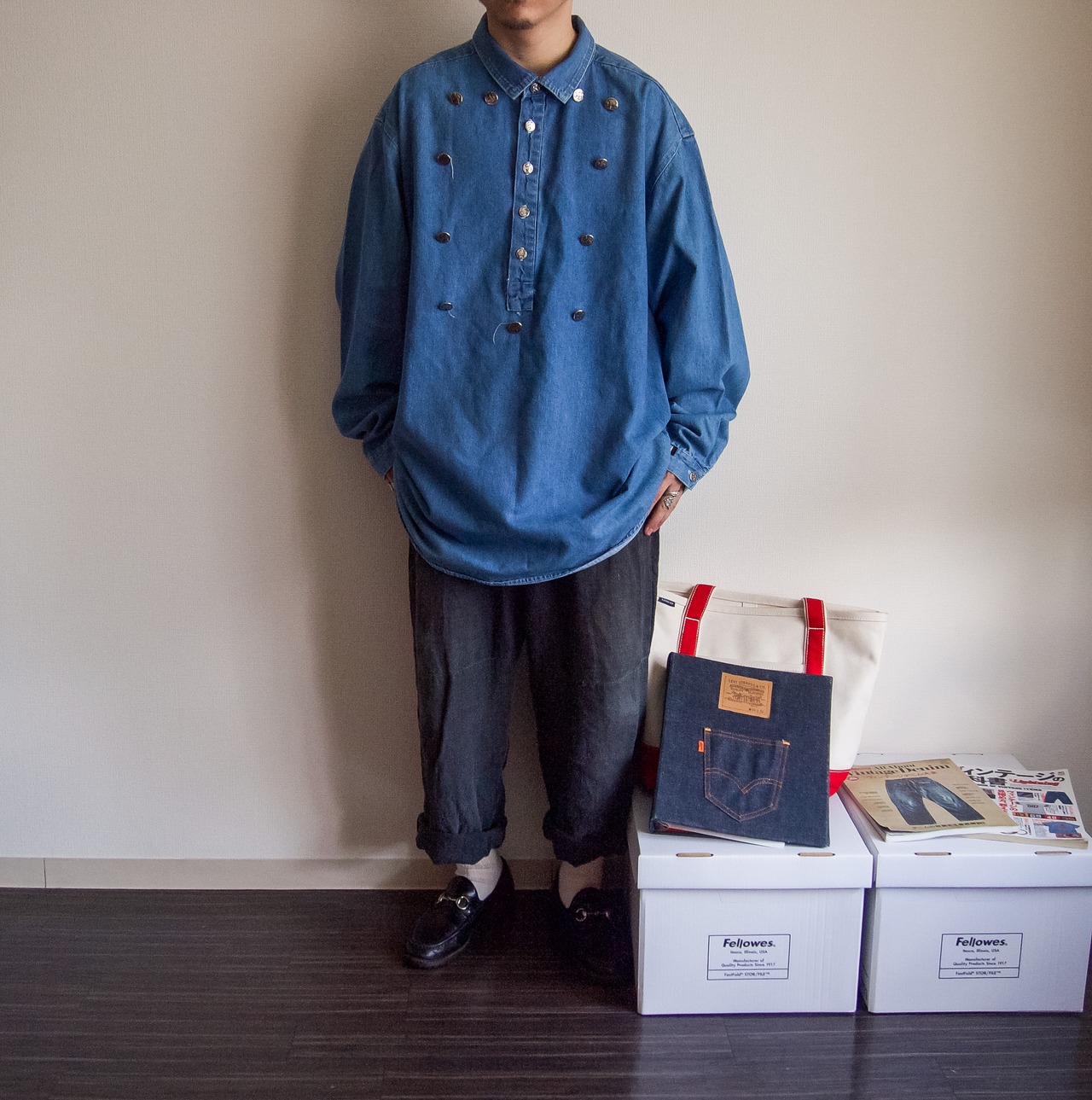 動物の刻印の入ったシルバーのボタンや、ビッグサイズでプルオーバーなどサイジングやディテールも素晴らしい。