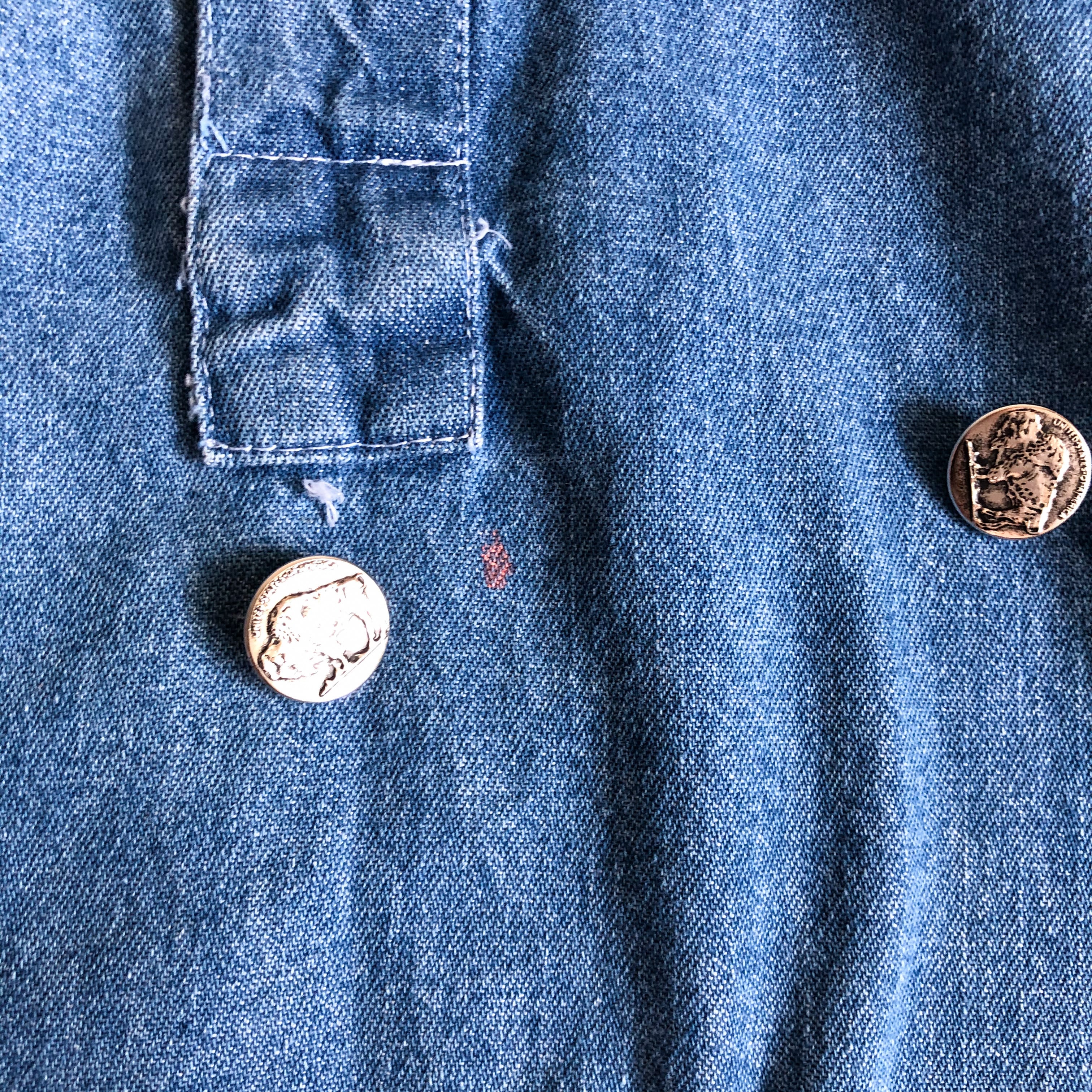 特徴 :本来胸に大きな当て布があしらわれていたデザインですが前立てが欠損しており、ボタンだけ残ったデザインが逆に洒落てますね。