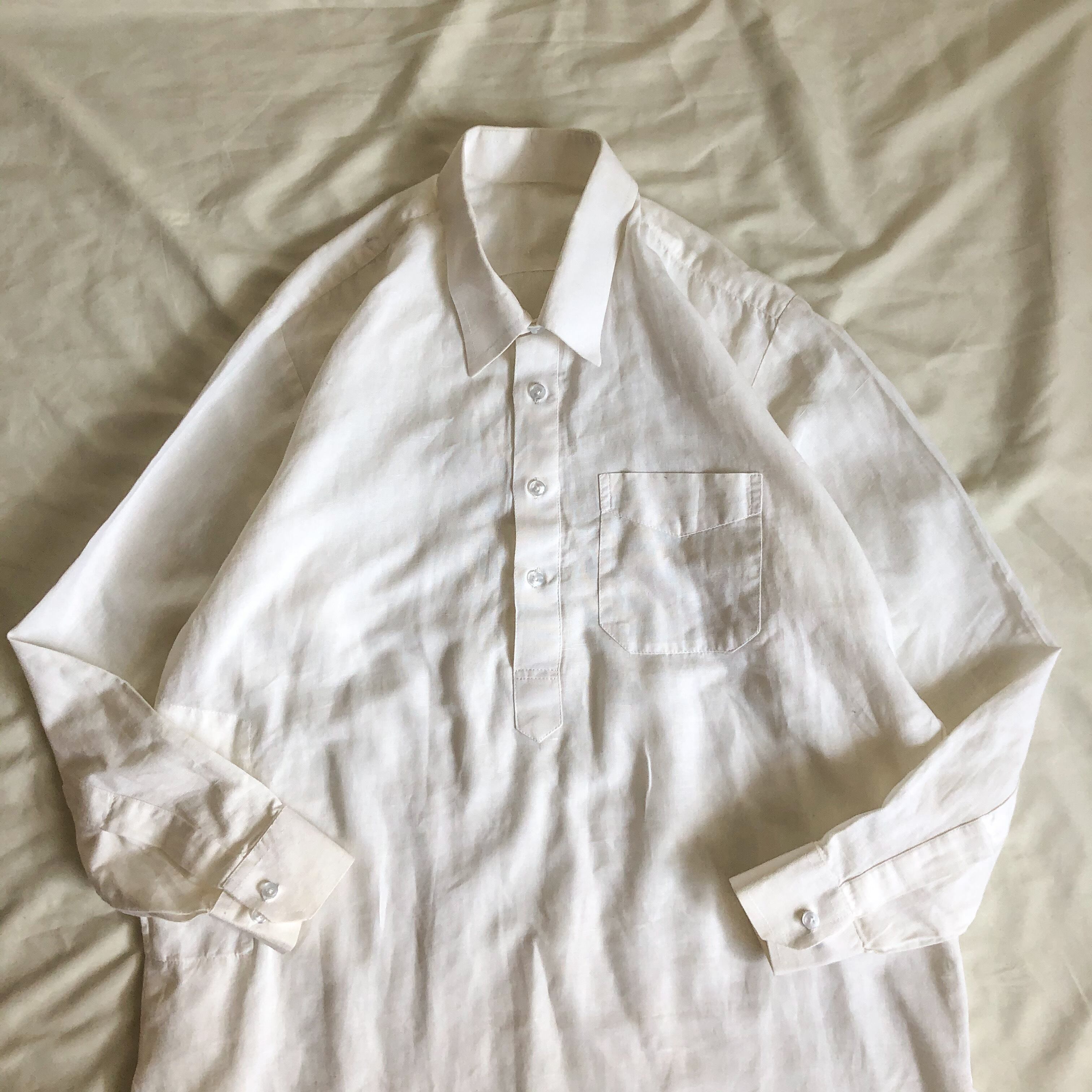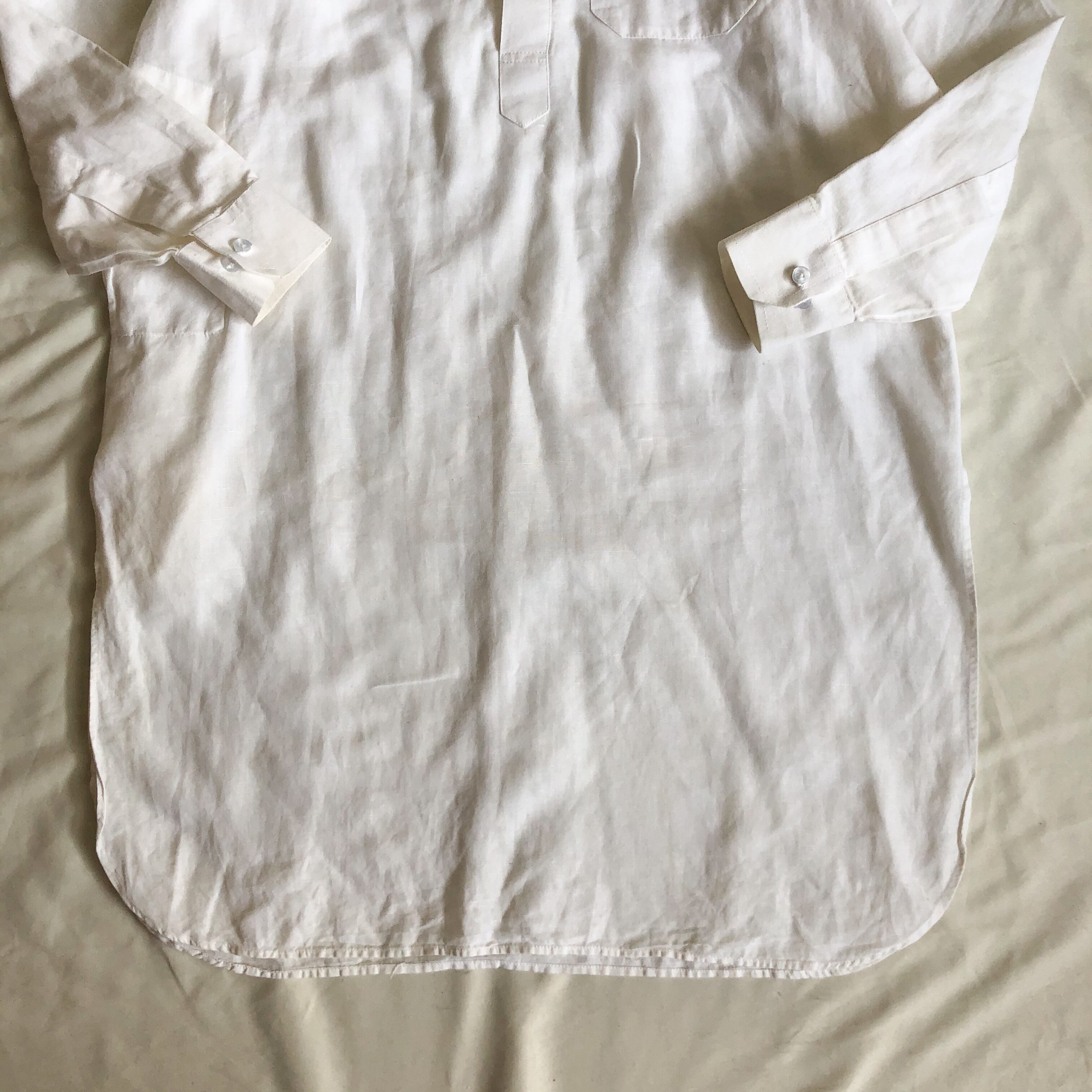 プルオーバーで着丈の長いこのディテールがグランパシャツの一番の魅力ですね。