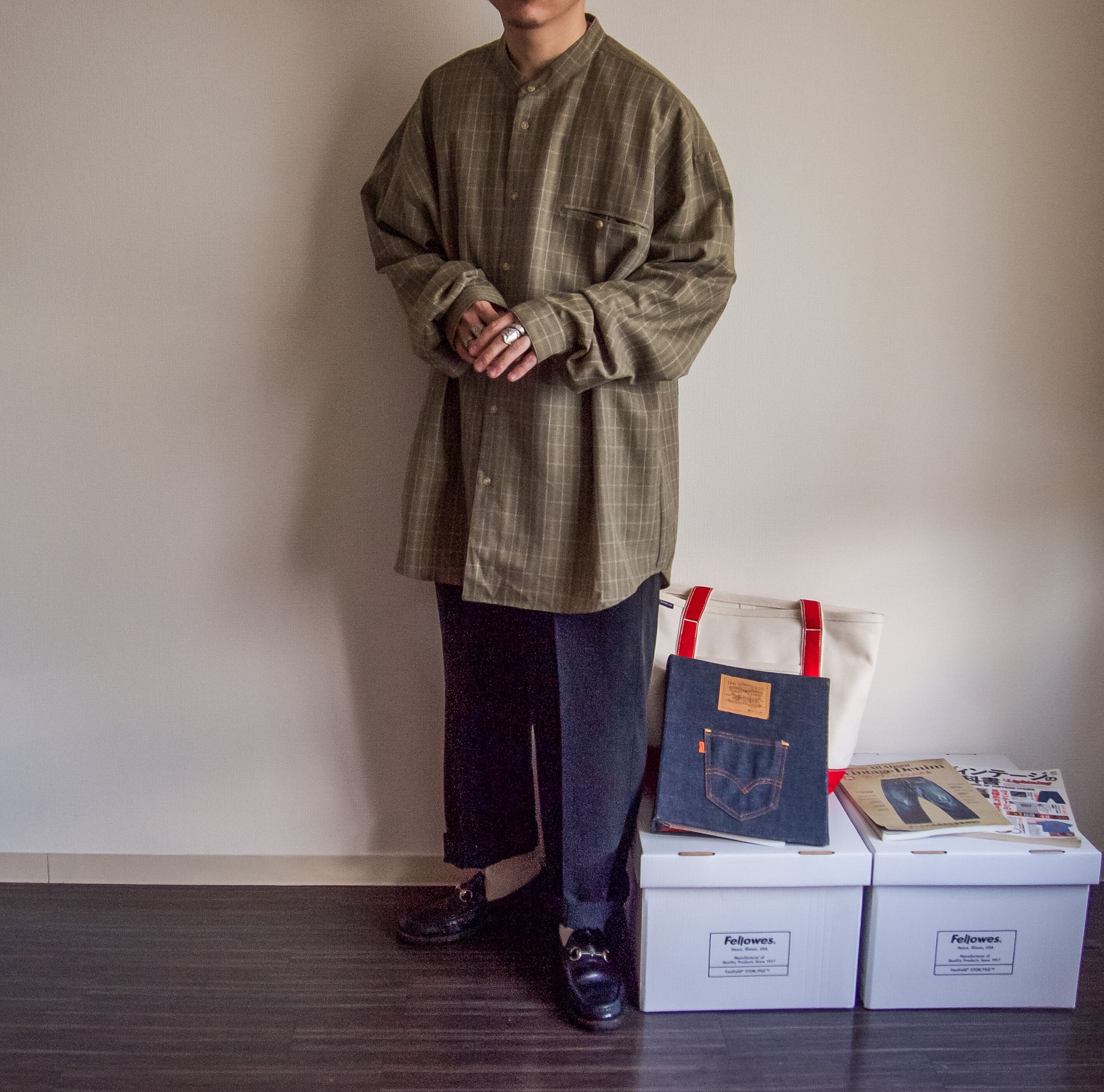特徴 :ユーロメイドのシャツでありそうなグリーン系のチェック柄がgoodな90s頃の一着。