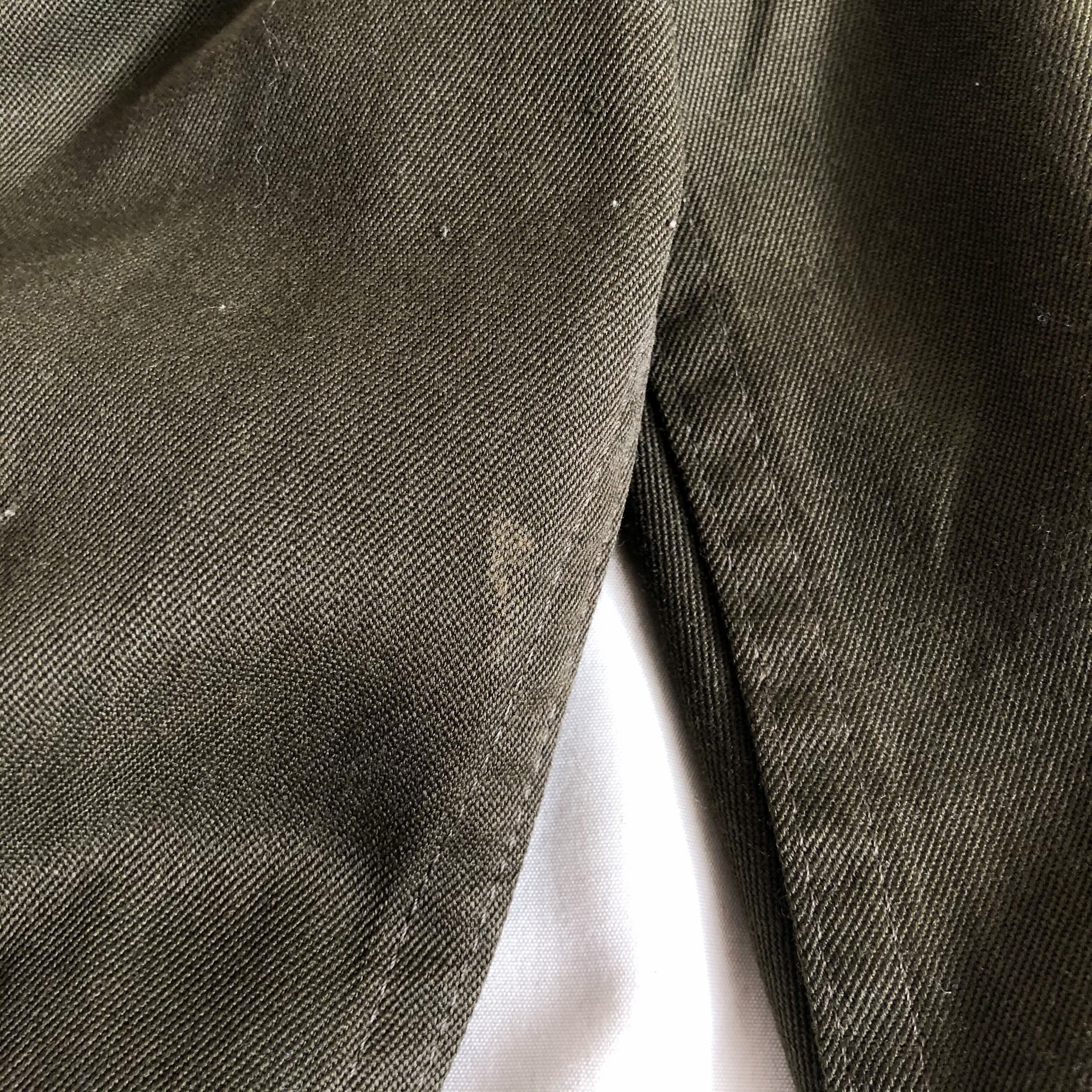 他のミリタリーではほとんど見ないレーヨン×ポリエステルの素材感に少し落ち感のある独特な表情が素晴らしい。