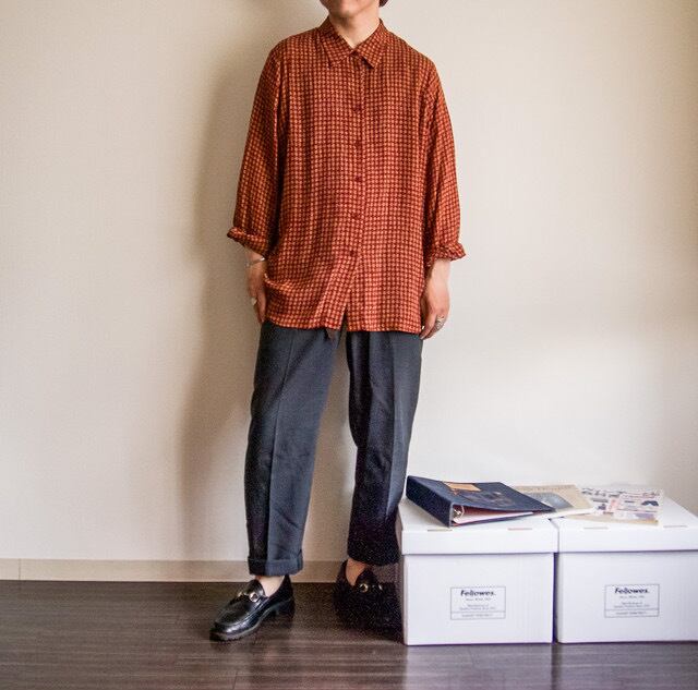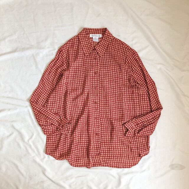 特徴 :遠くから見ると千鳥格子柄のような古着ならではな面白いテキスタイルがgoodなJONES NEWYORKの総柄シャツ。