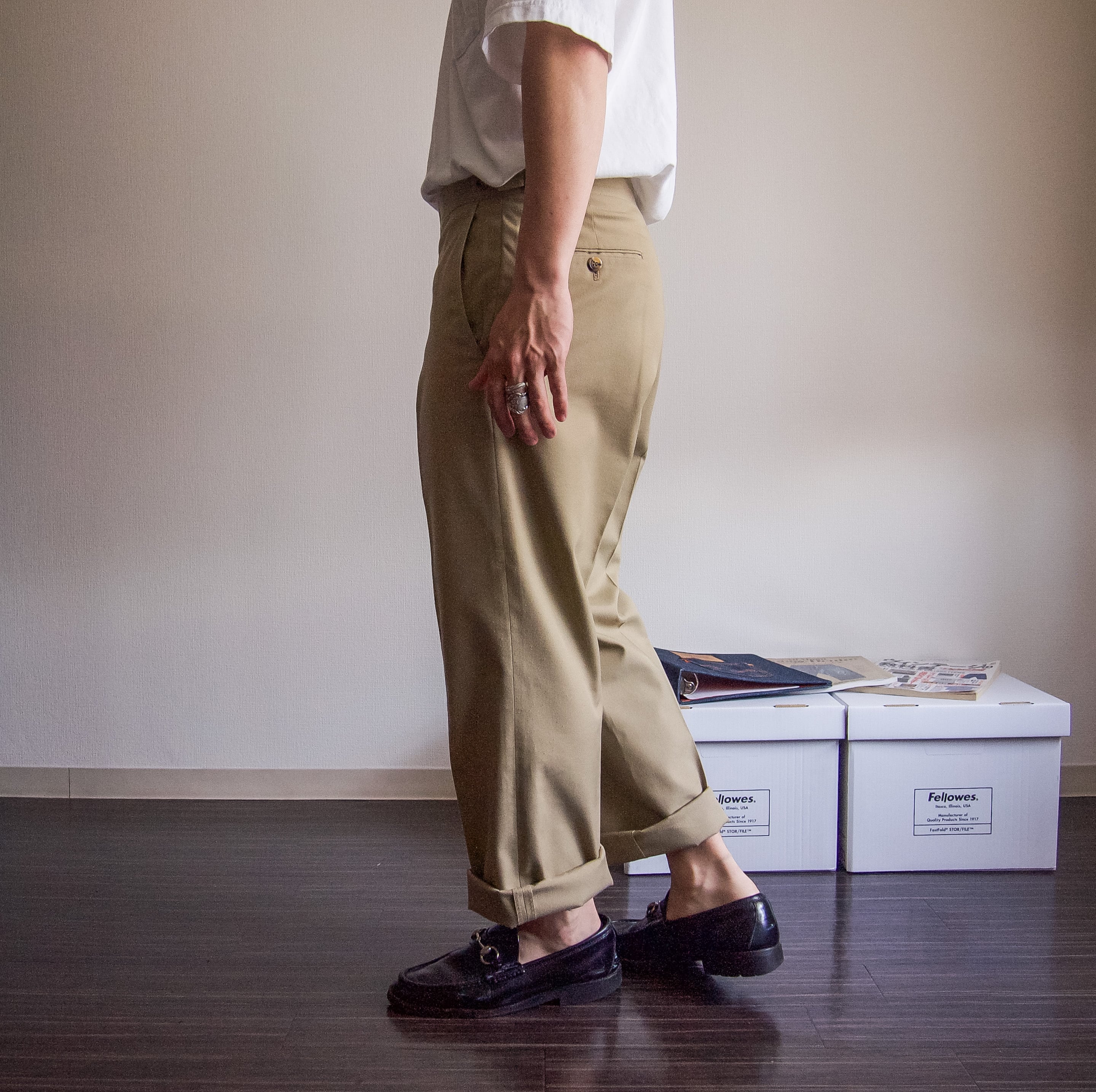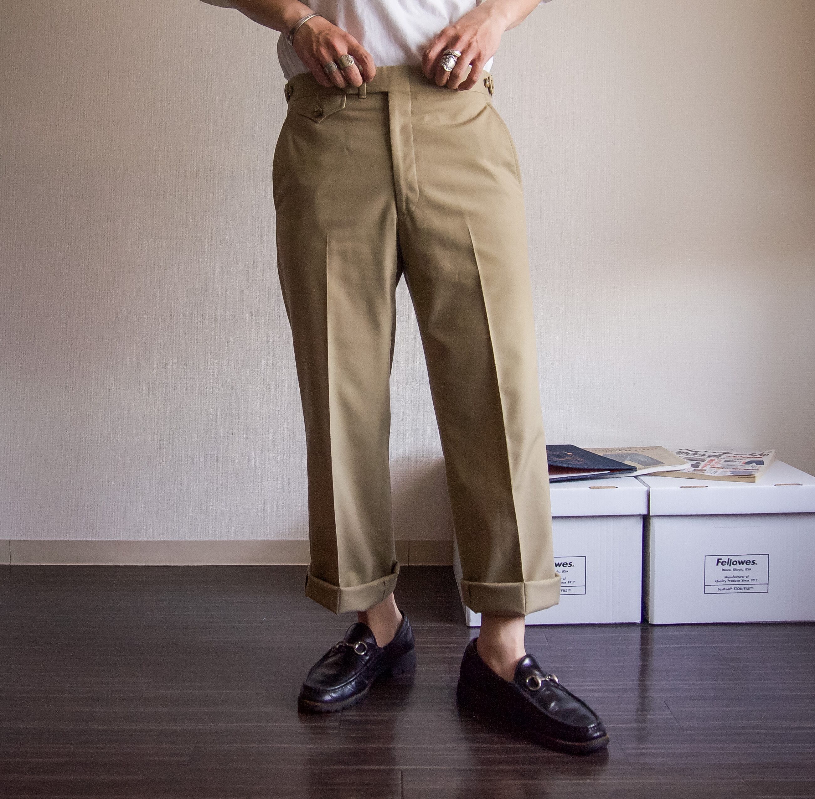特徴 :定番なベージュカラーにセンタープレスの入る1980's頃のスラックスパンツ。
