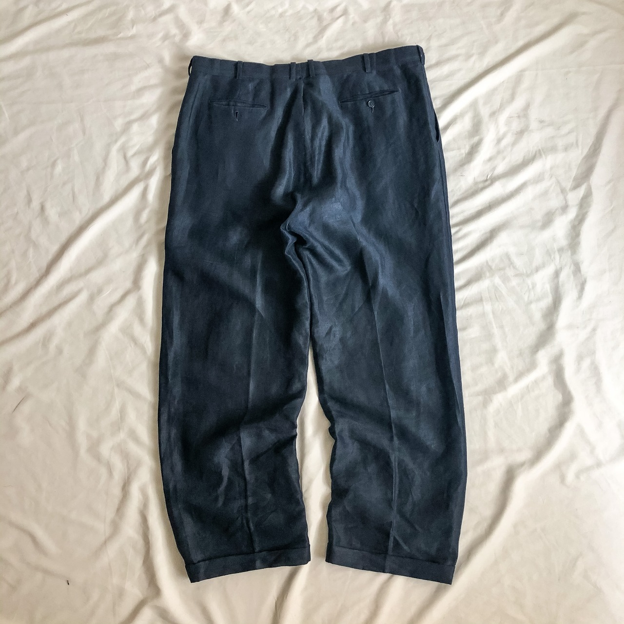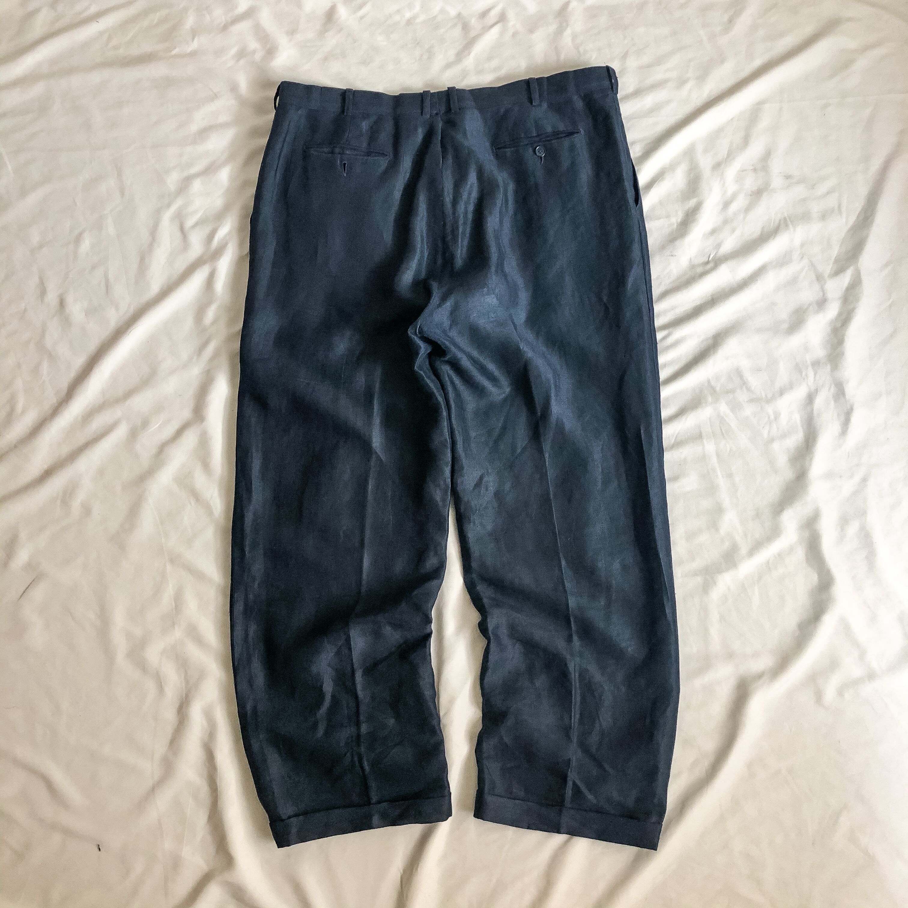 1980's~ "NEIMAN MARCUS" bigsize navy slacks type linen pants made in Italy