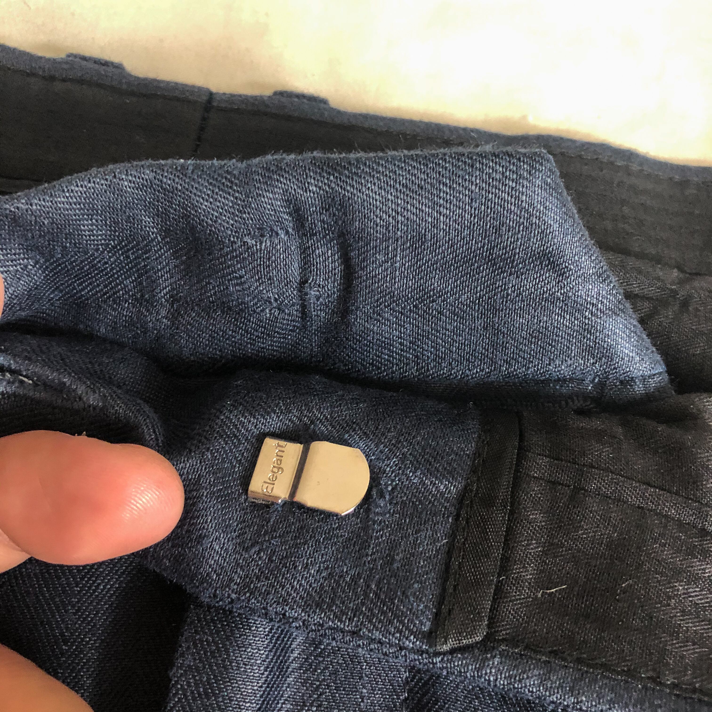 特徴 :ネイビーカラーに、よく見るとヘリンボーン織りになったデザインがクールな1980's頃のリネンパンツ。