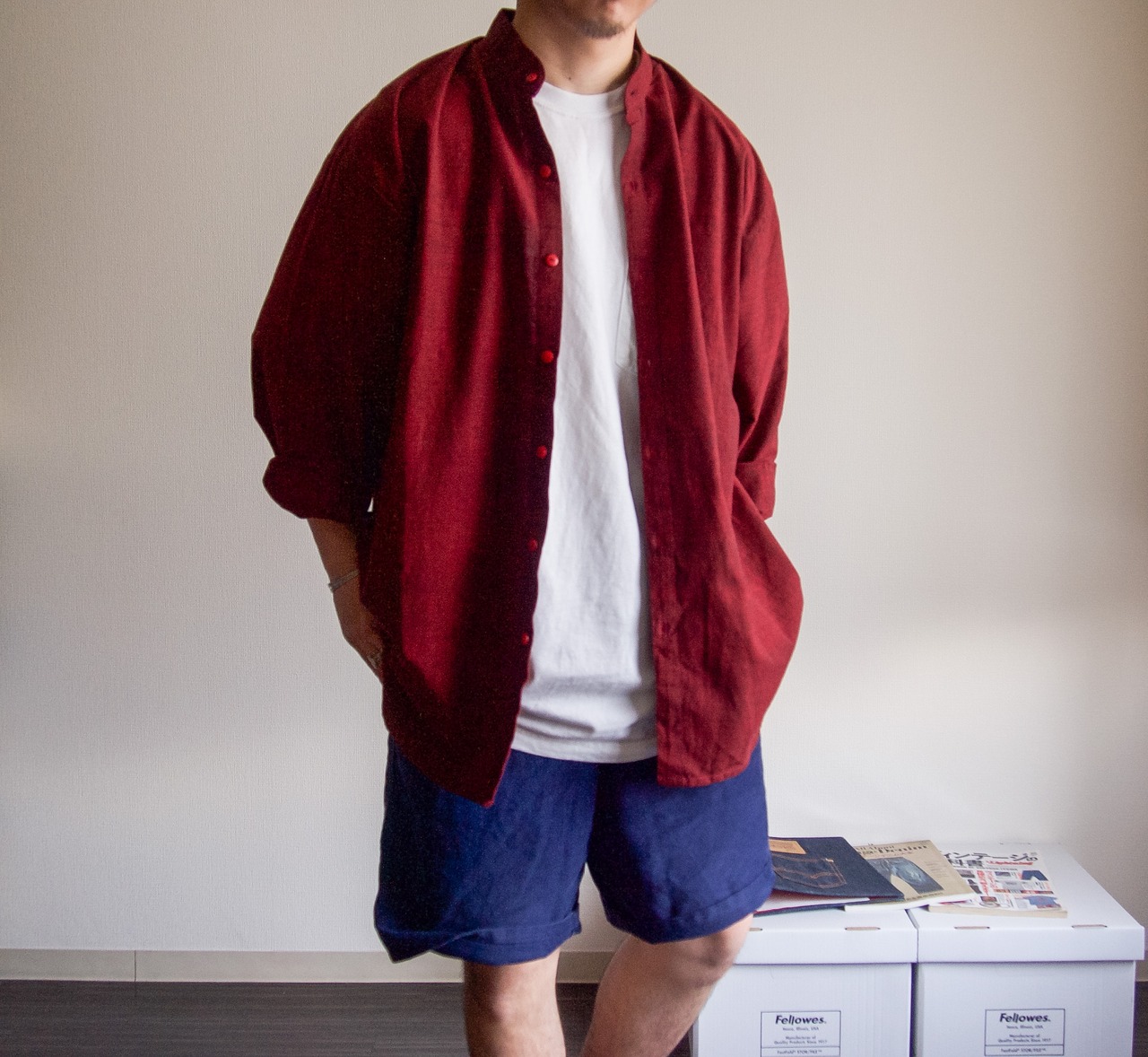 特徴 :意外と見かけないレッドカラーのバンドカラーシャツ。