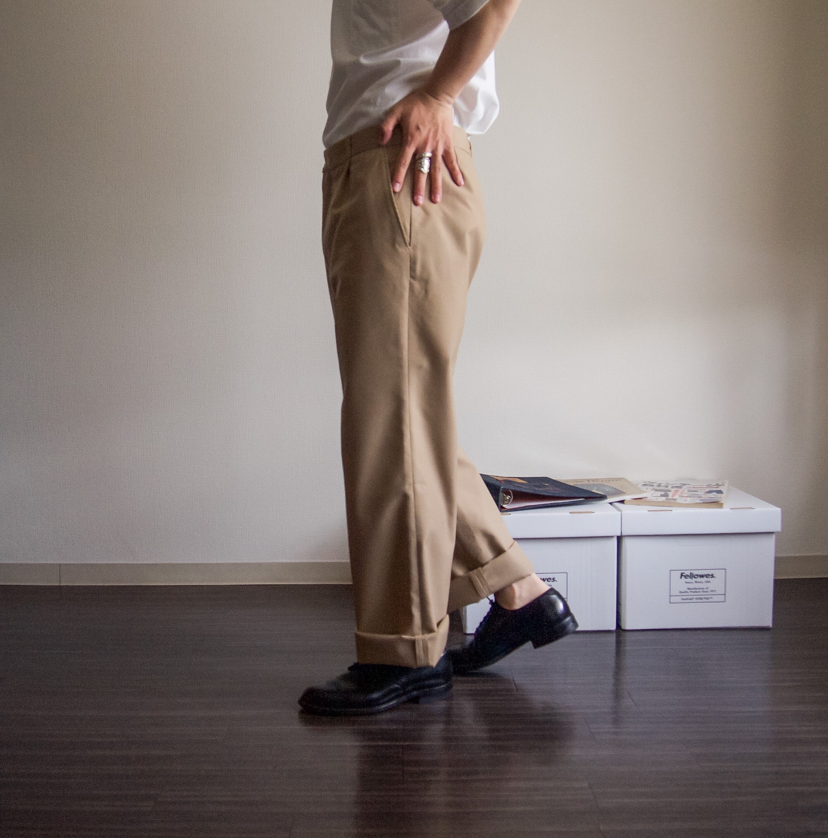 ワンタックで程よい太さがあり、スラックスとして絶妙なシルエットに仕上がった非常に雰囲気のある1本でしょう。