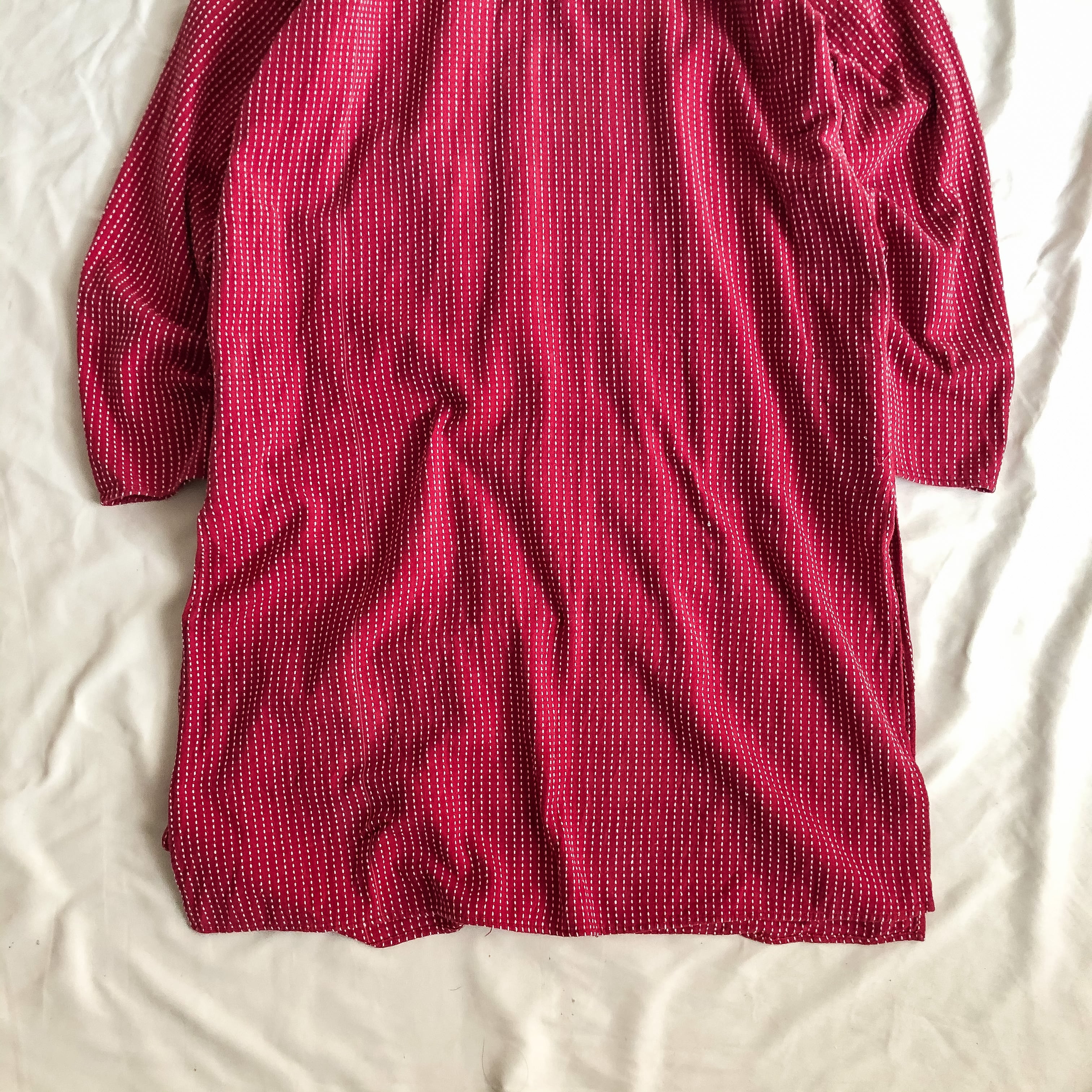 特徴 :ユーロらしい独特なレッドカラーにホワイトのステッチが全面に入る珍しいデザインのグランパシャツ。