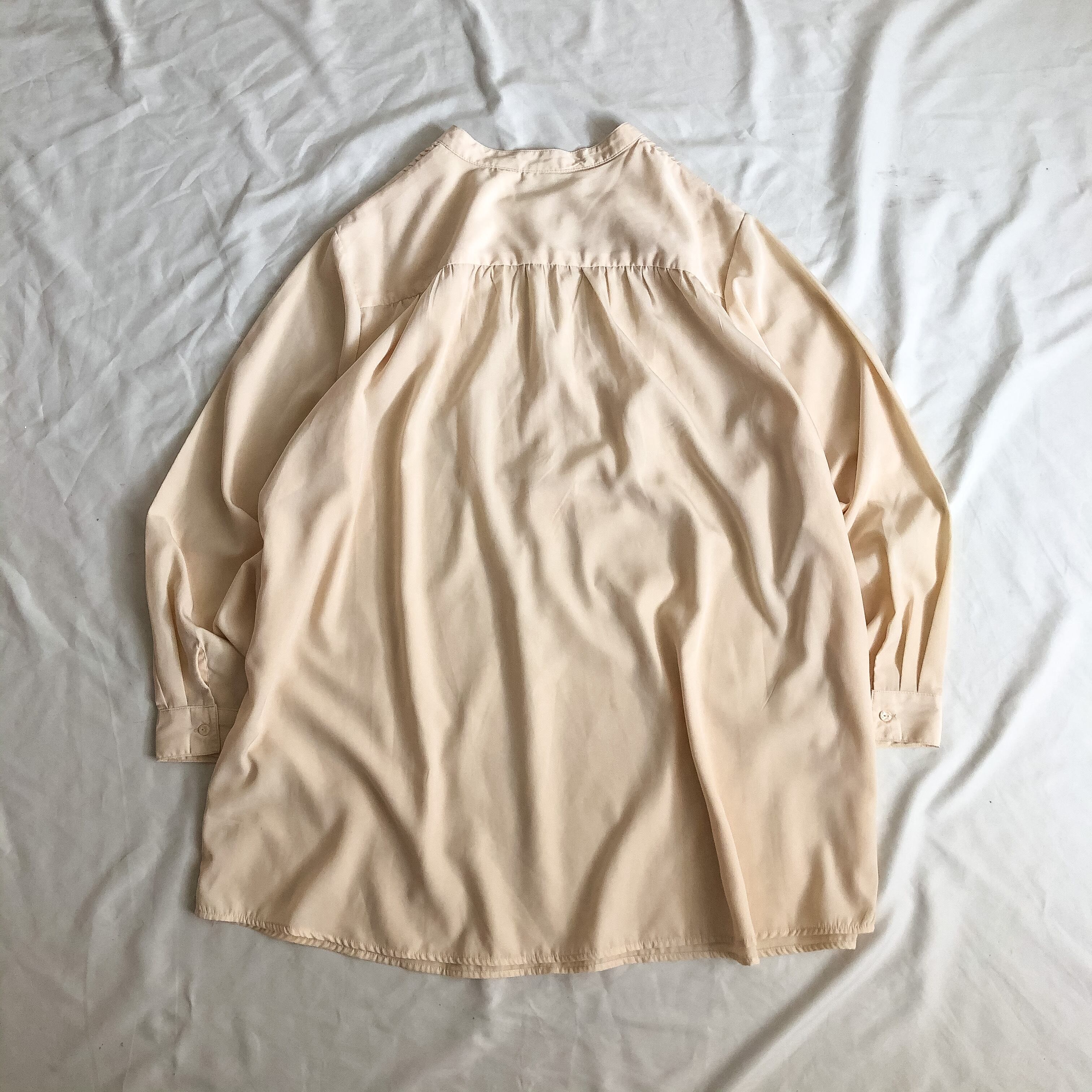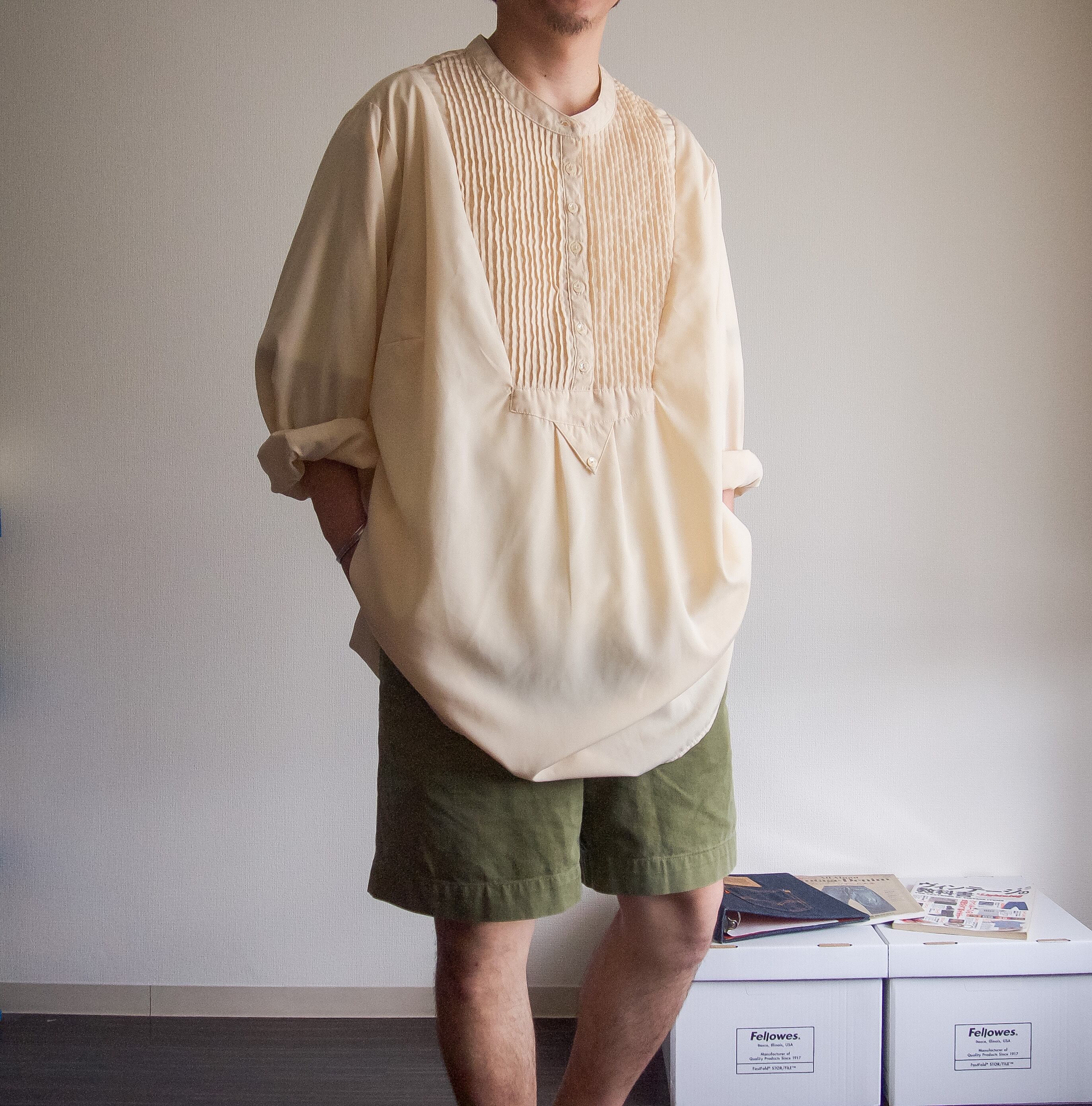1990's~ ivory band collor pin tuck dress shirt