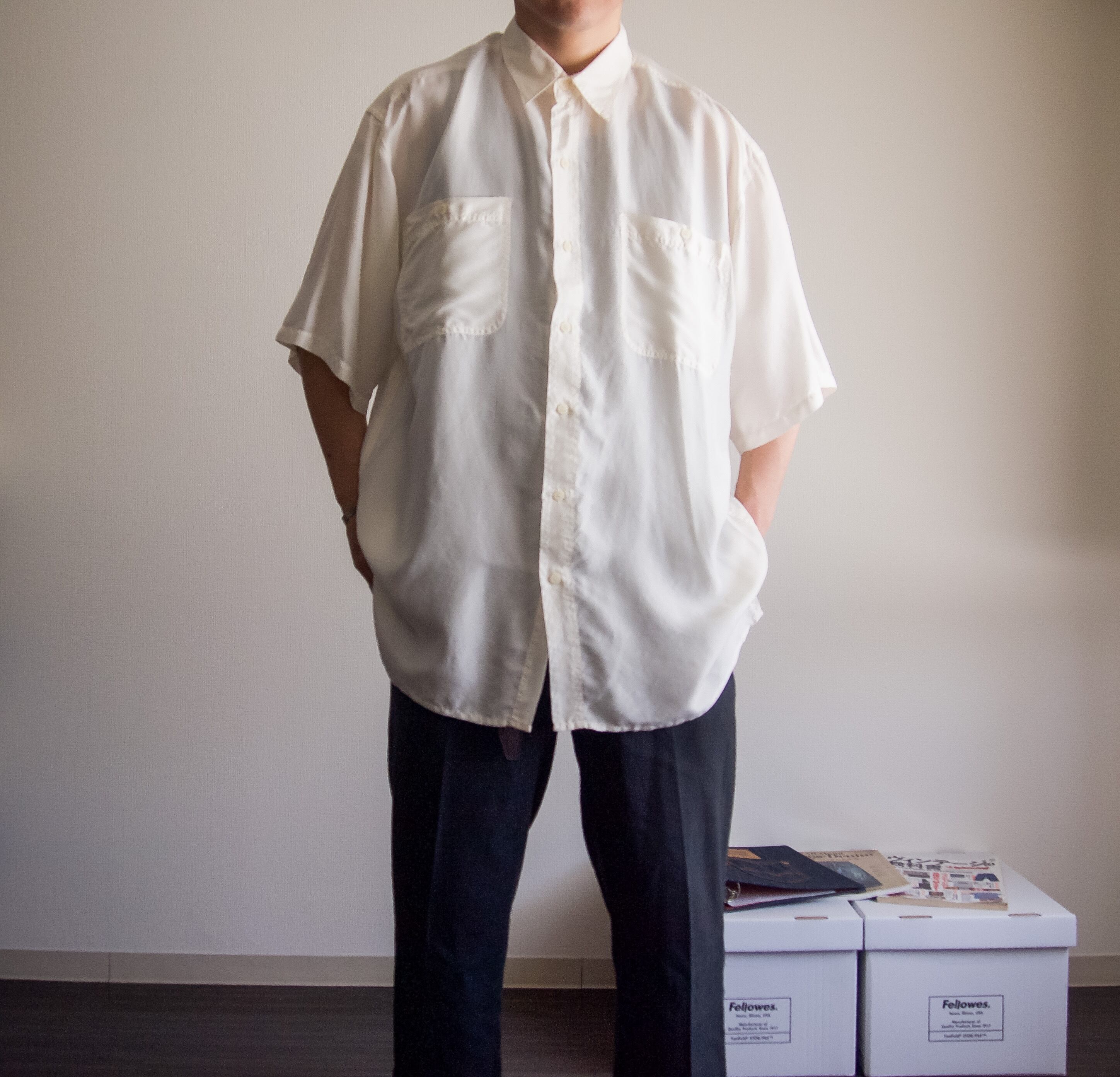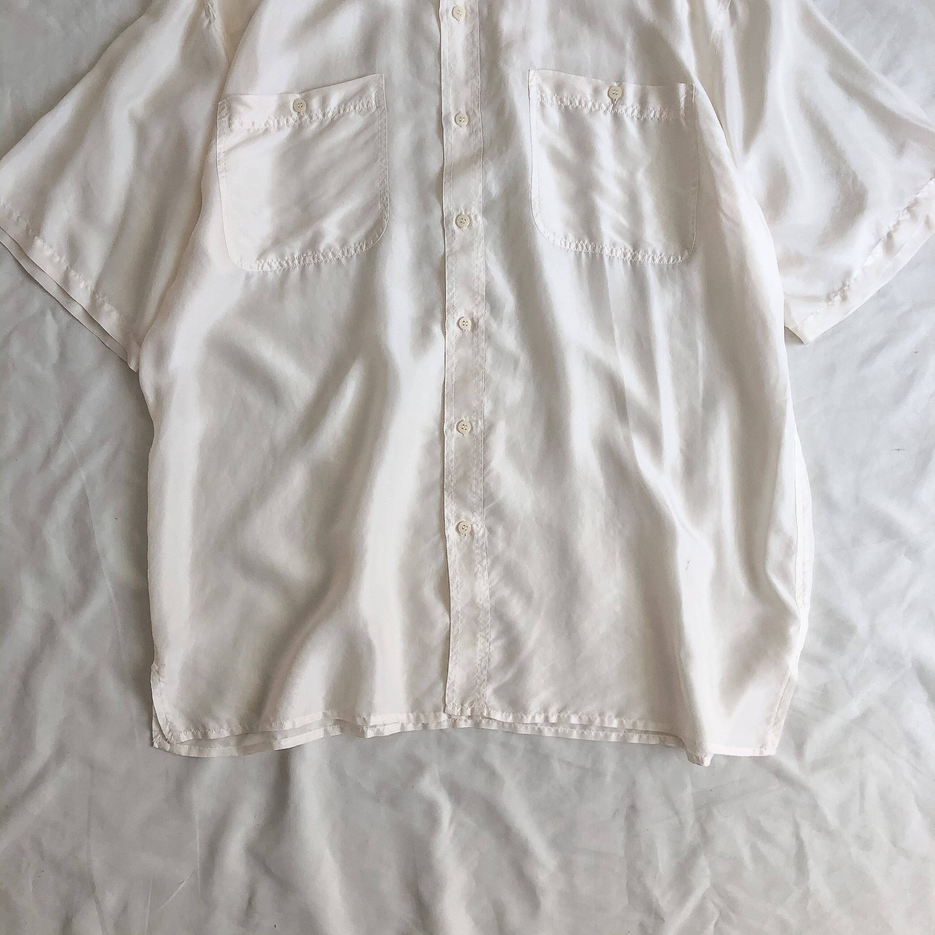 1990's~ "OLEG CASSINI" bigsize white silk shirt
