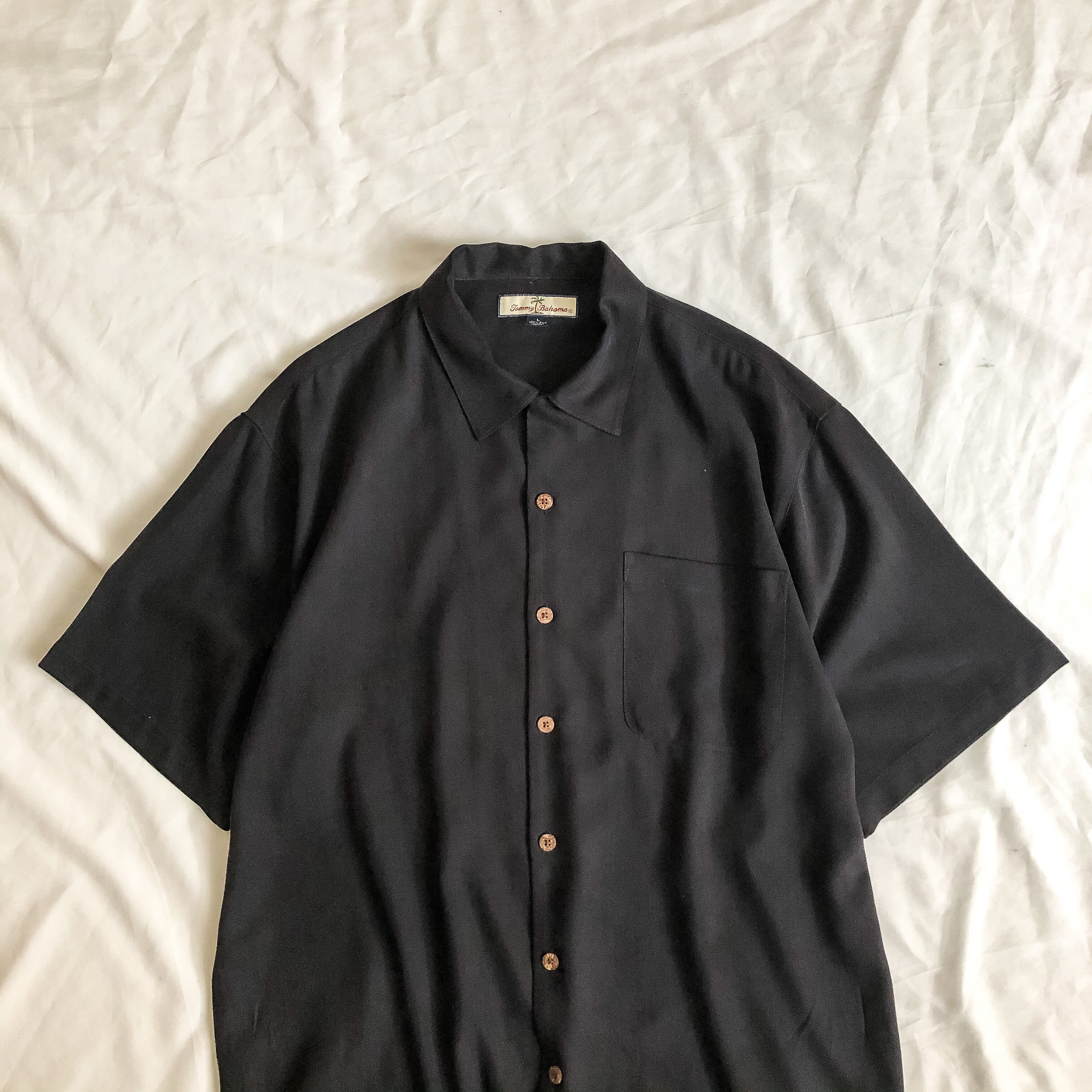 特徴 :よく見るとストライプ状にヘリンボーン織りのようになったさりげないデザインがクールなシルクシャツ。