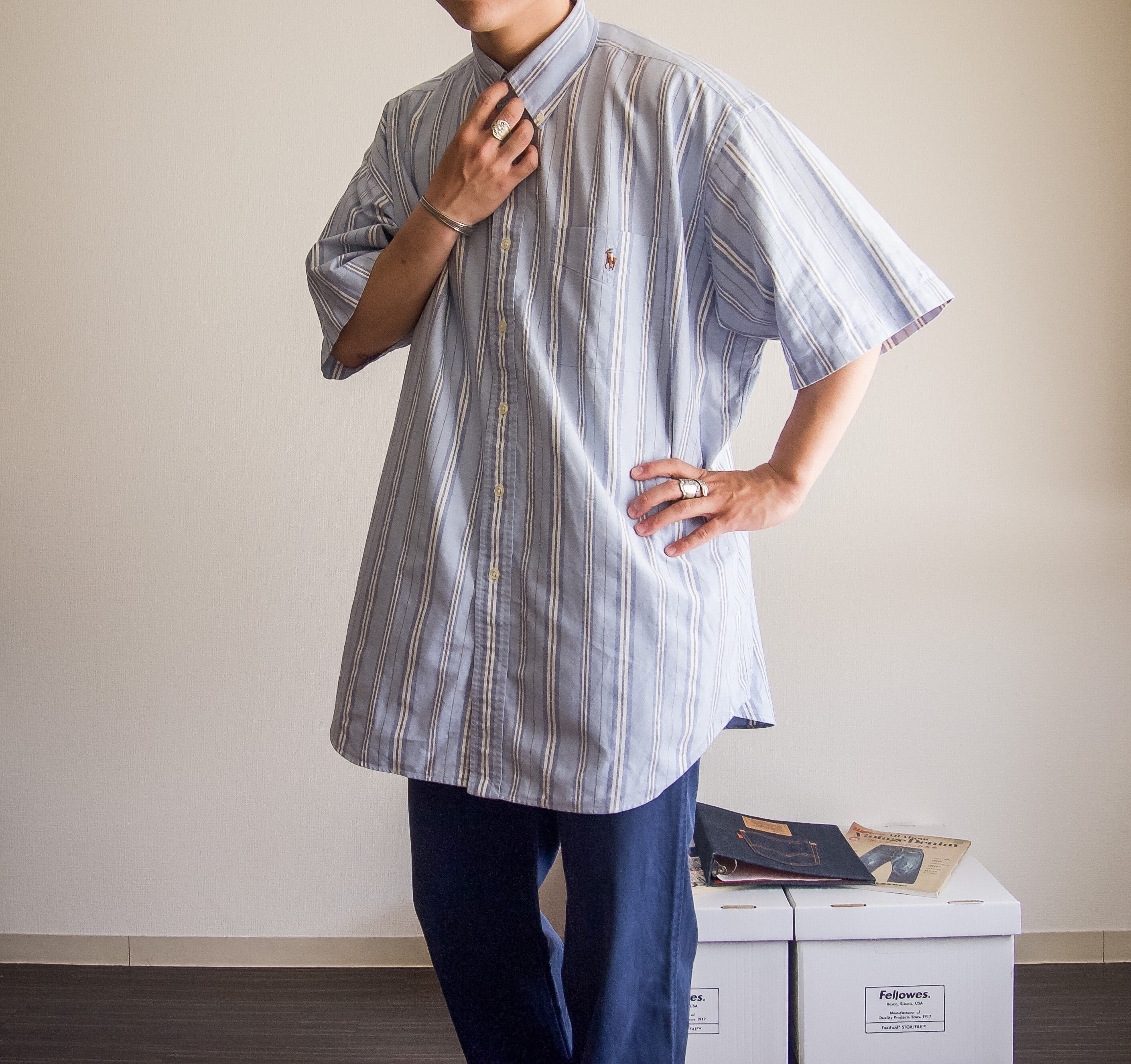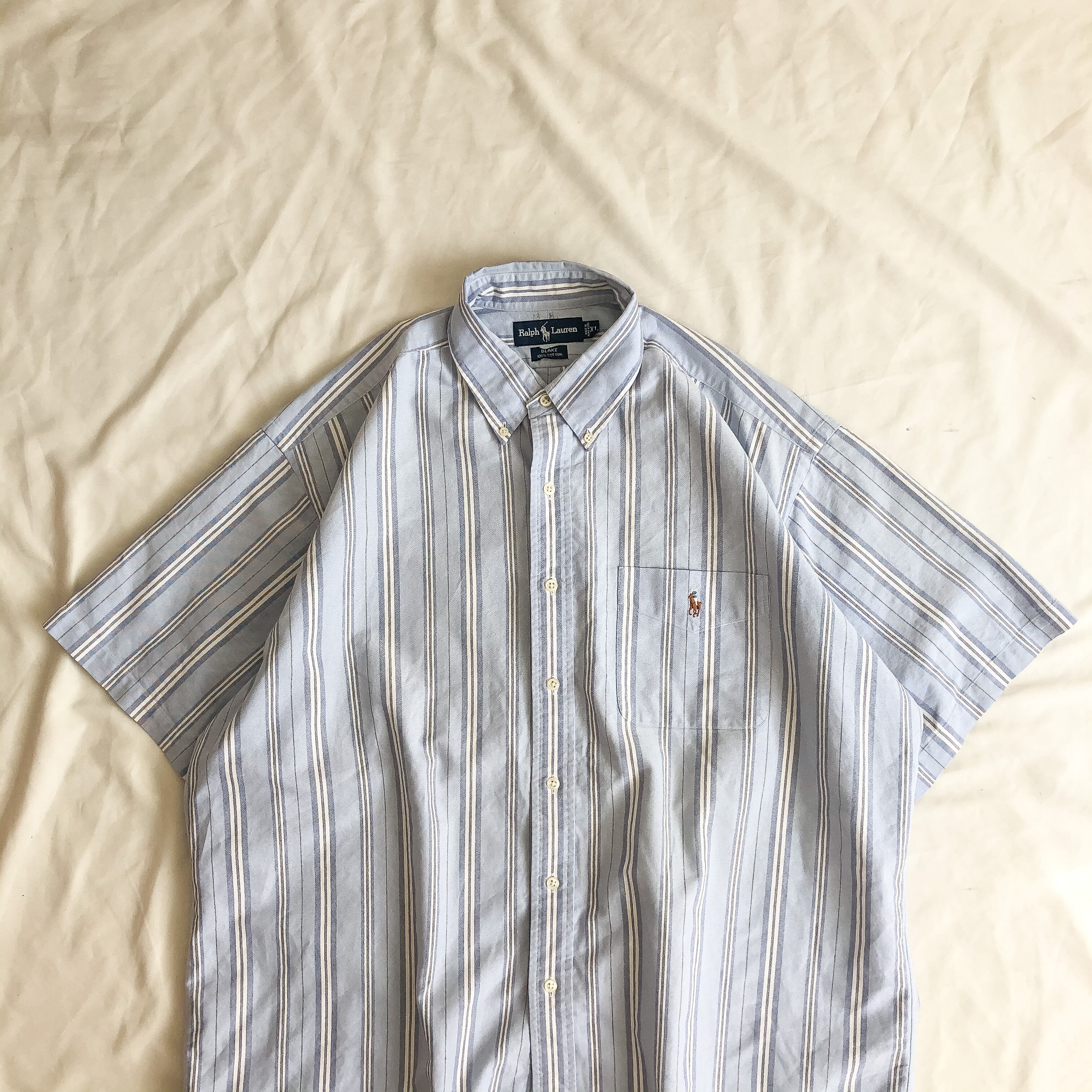 特徴 :ブルー系×ホワイトのカラーリングのストライプ柄が爽やかなラルフローレンのコットンシャツ。