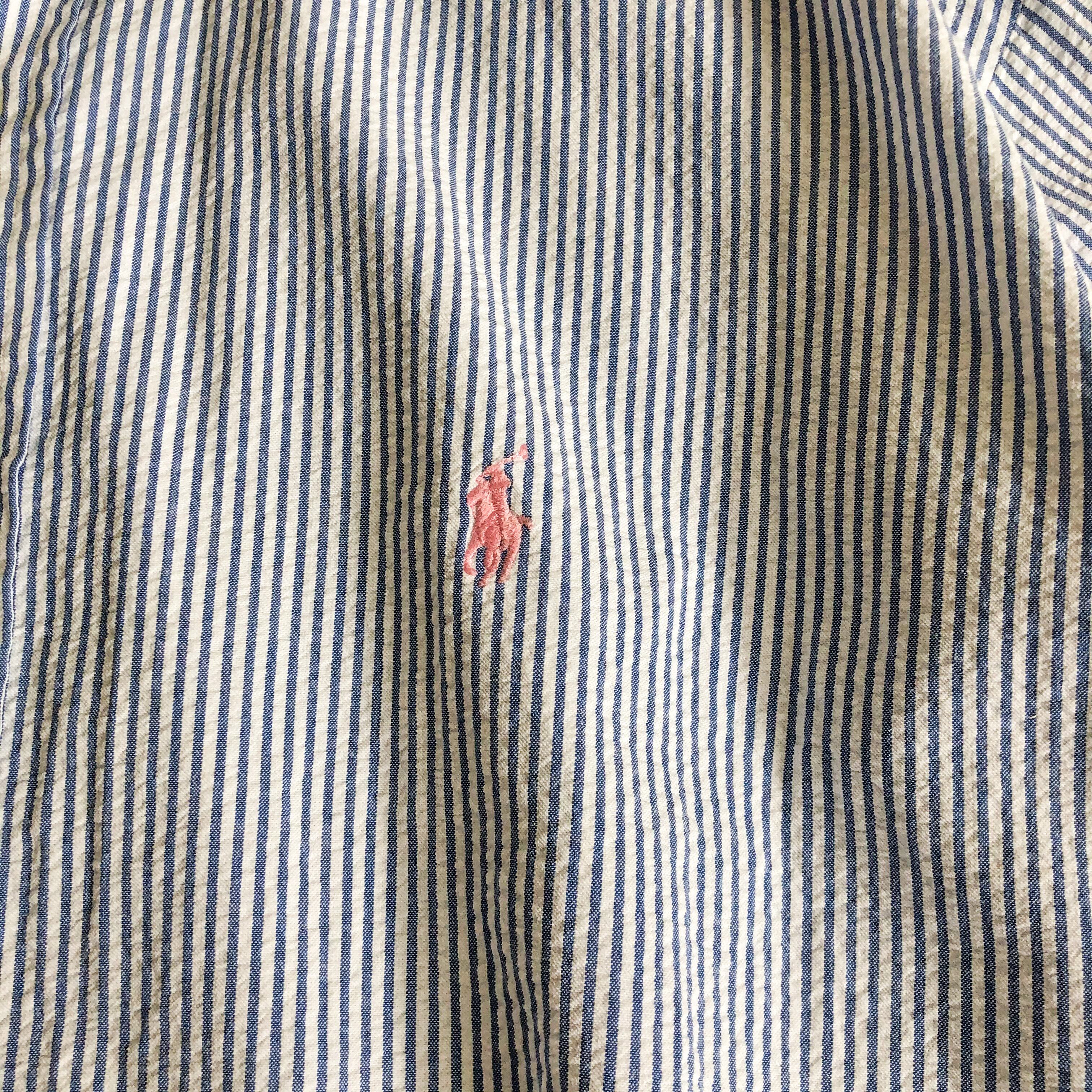 特徴 :ブルー系×ホワイトのカラーリングのストライプ柄が爽やかなラルフローレンのコットンシャツ。