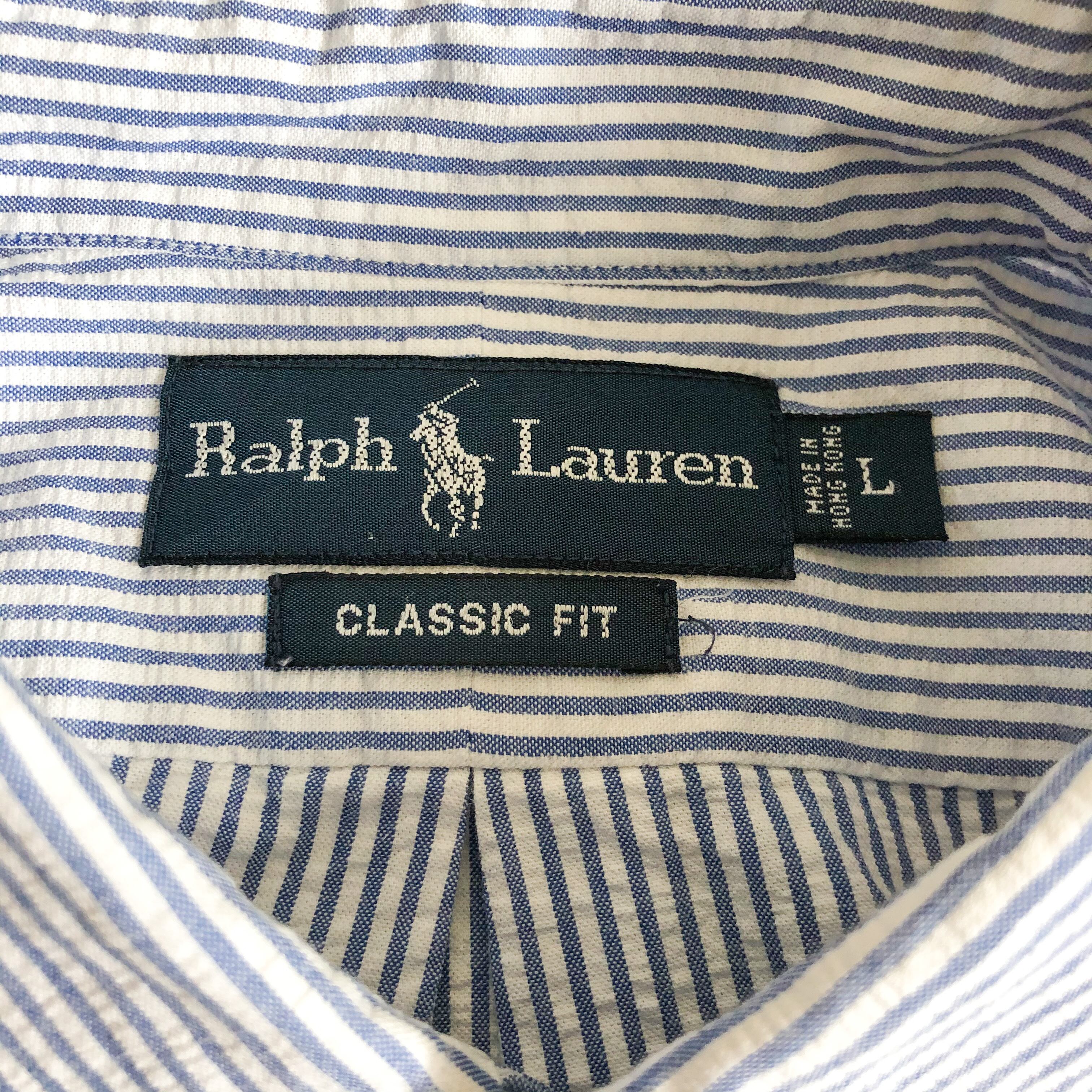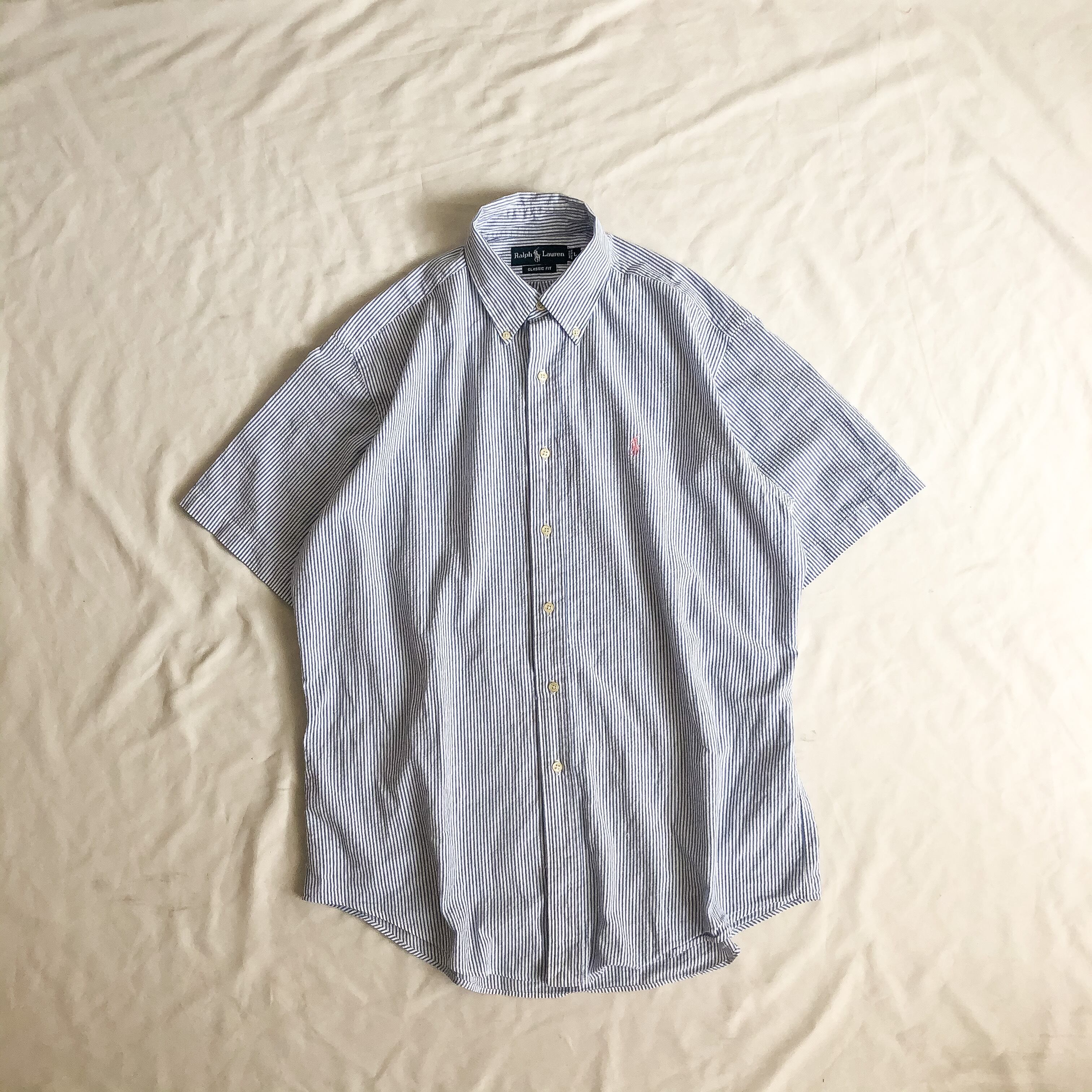 1980's~1990's "Ralph Lauren" B/D seersucker stripe pattern cotton shirt