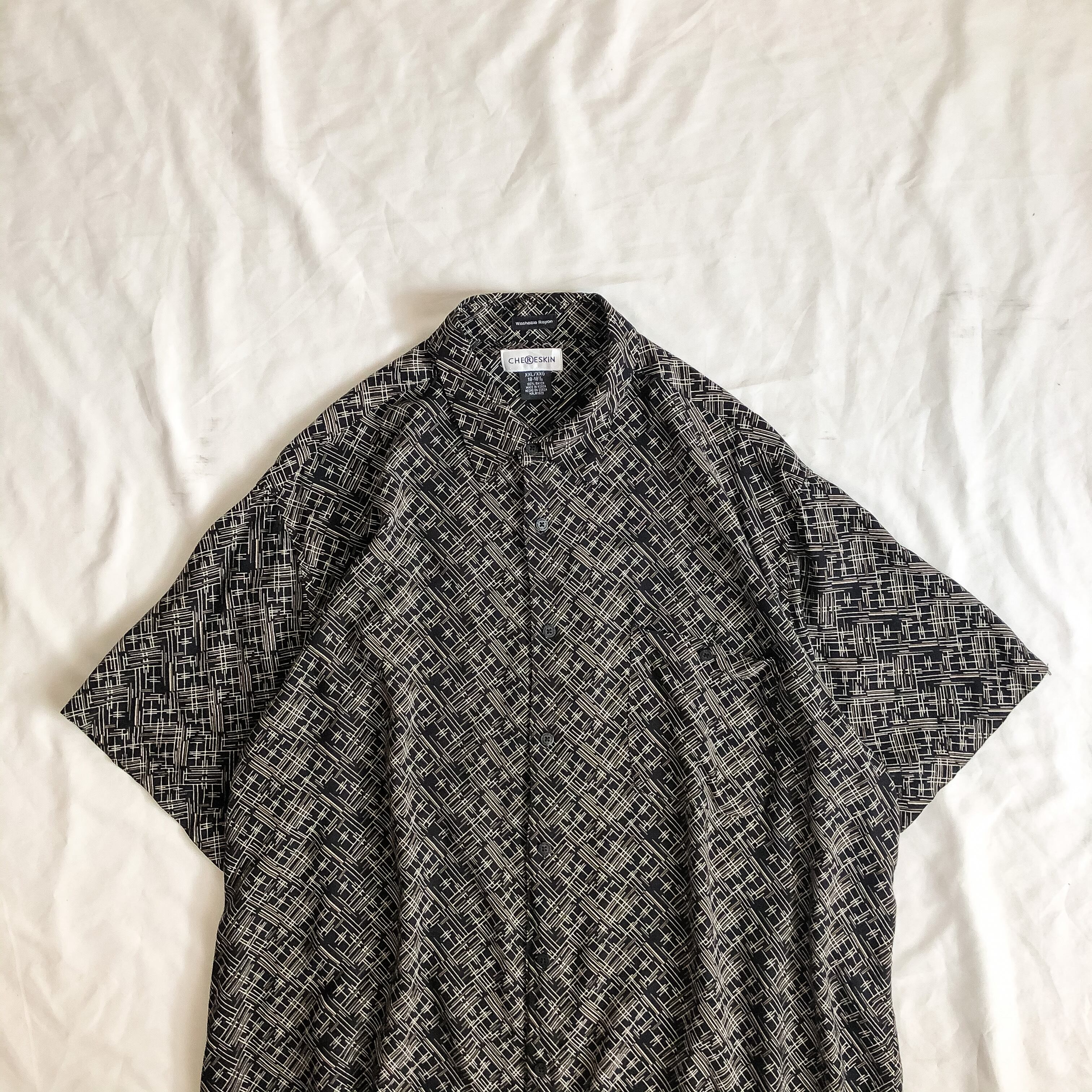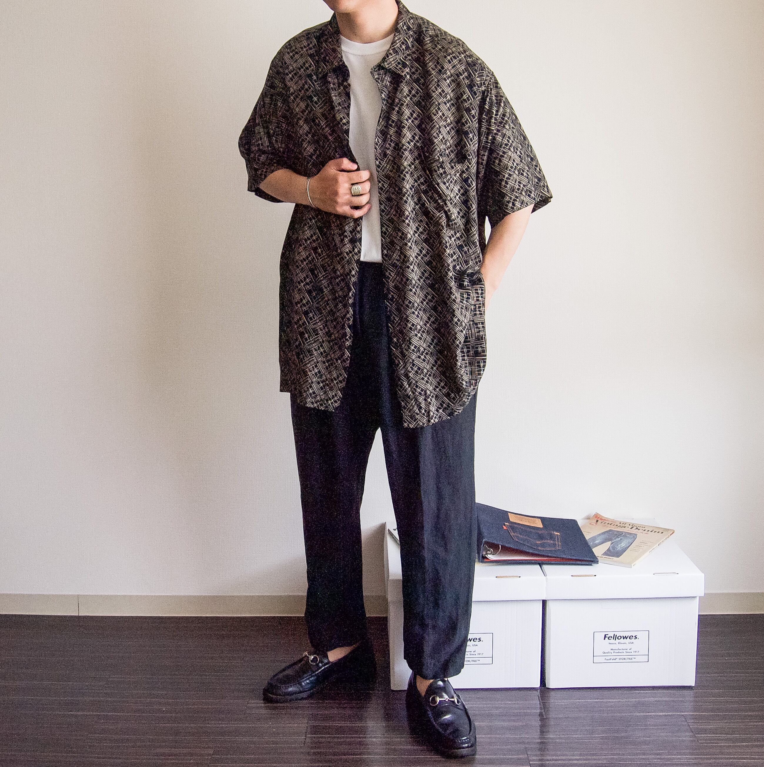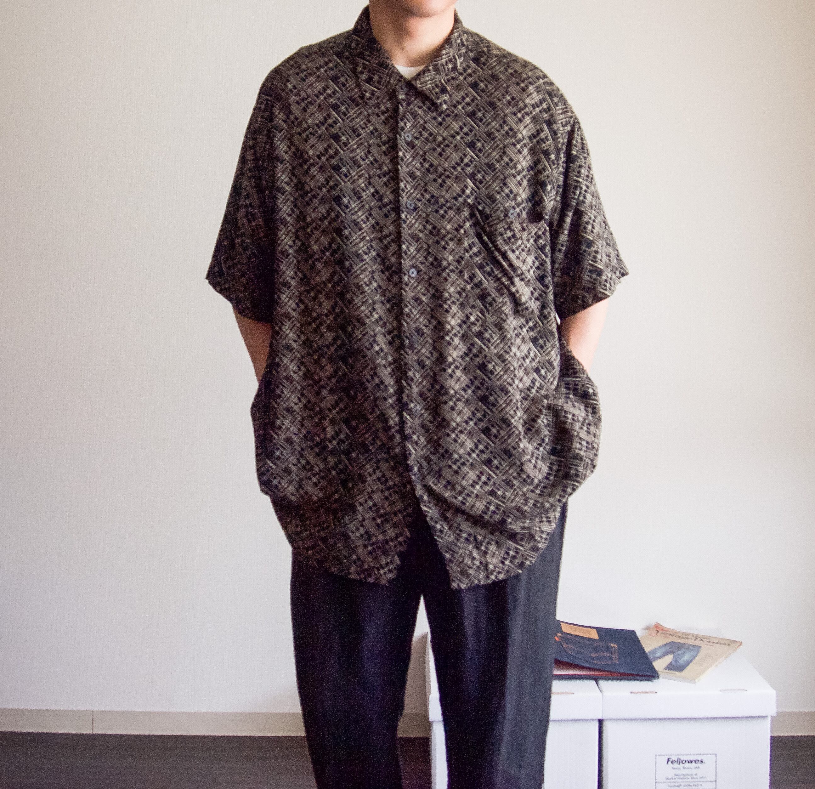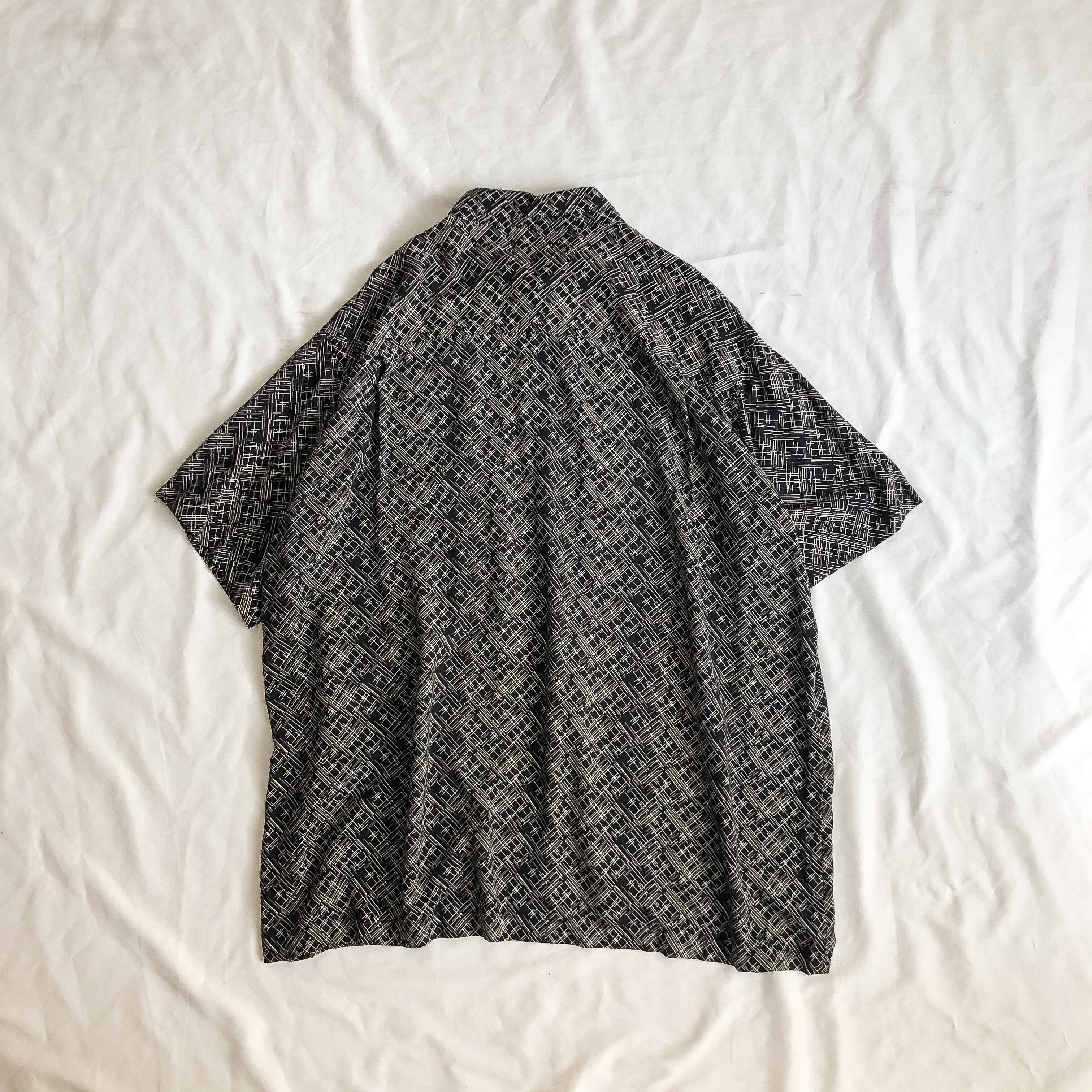 特徴 :全面にかすり柄のような洒落たテキスタイルが入る1990s頃のレーヨンシャツ。