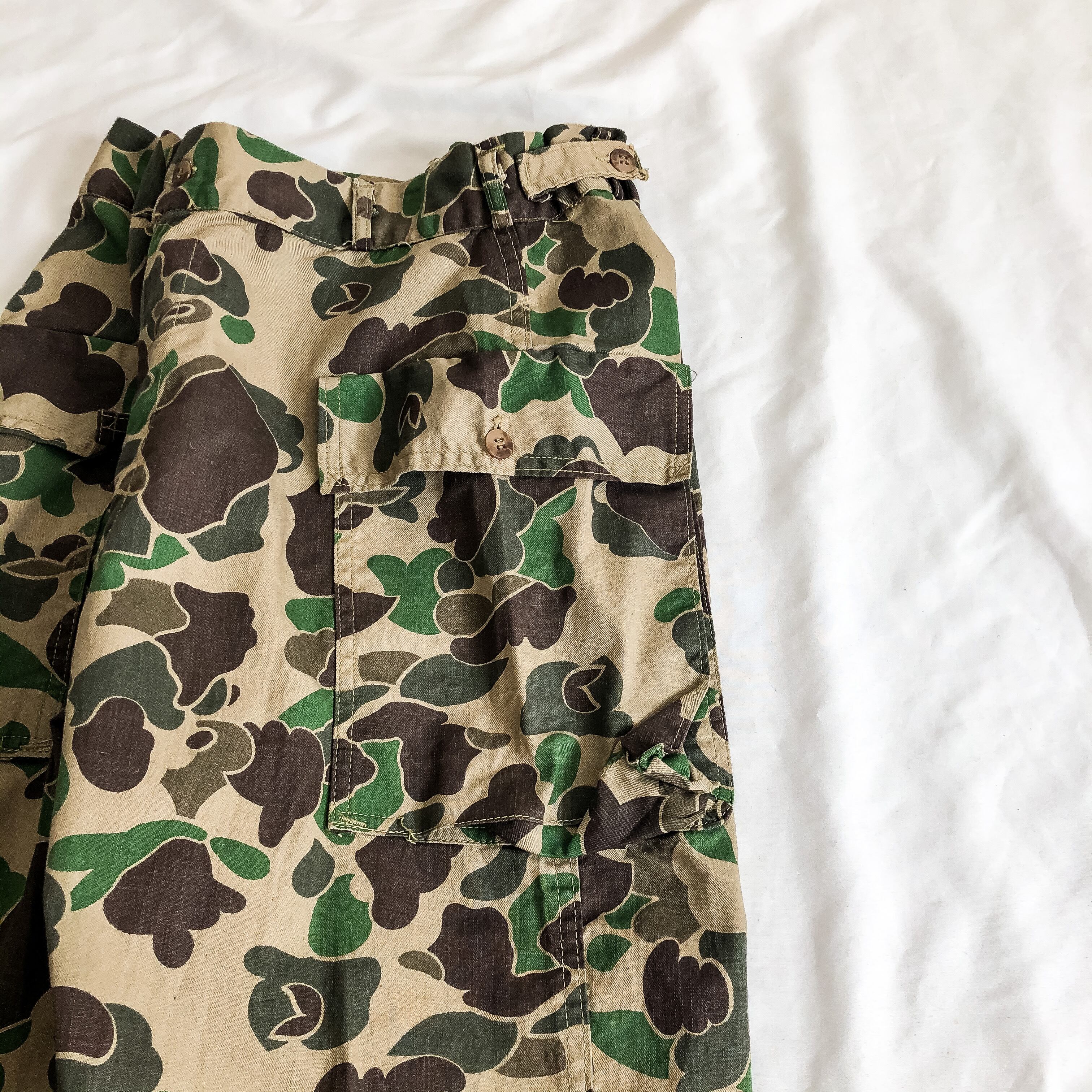 Vintage 1950's M-43 type duck hunter camouflage side cargo pants