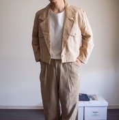 特徴 :ワンボタンにボックスシルエットで、ショート丈が洒落たリネンコットンのテーラードジャケット。